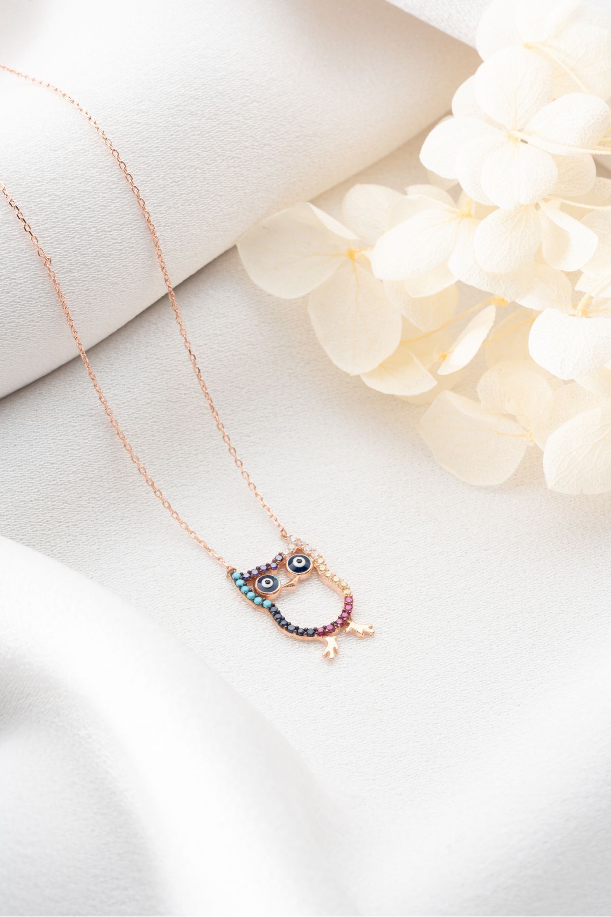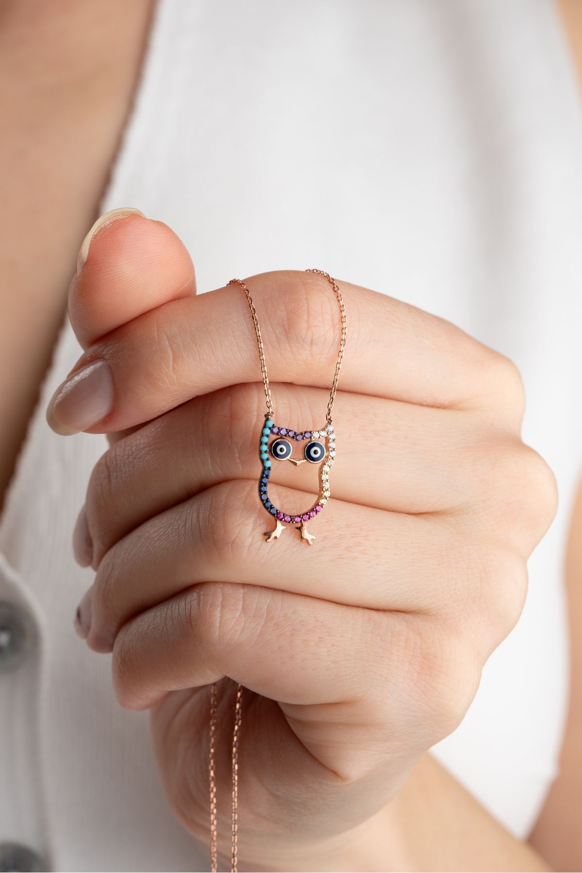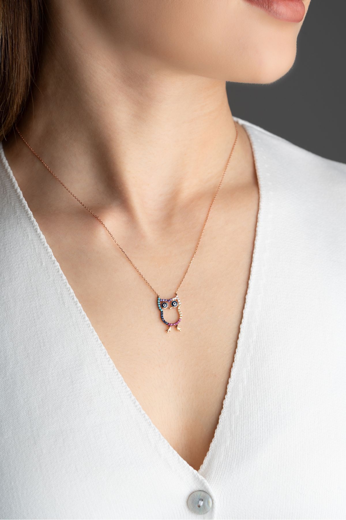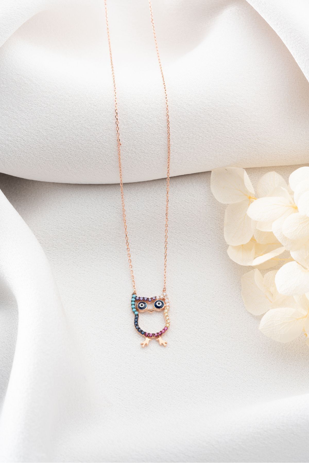 925 Ayar Gümüş Renkli Taşlı Baykuş Kolye