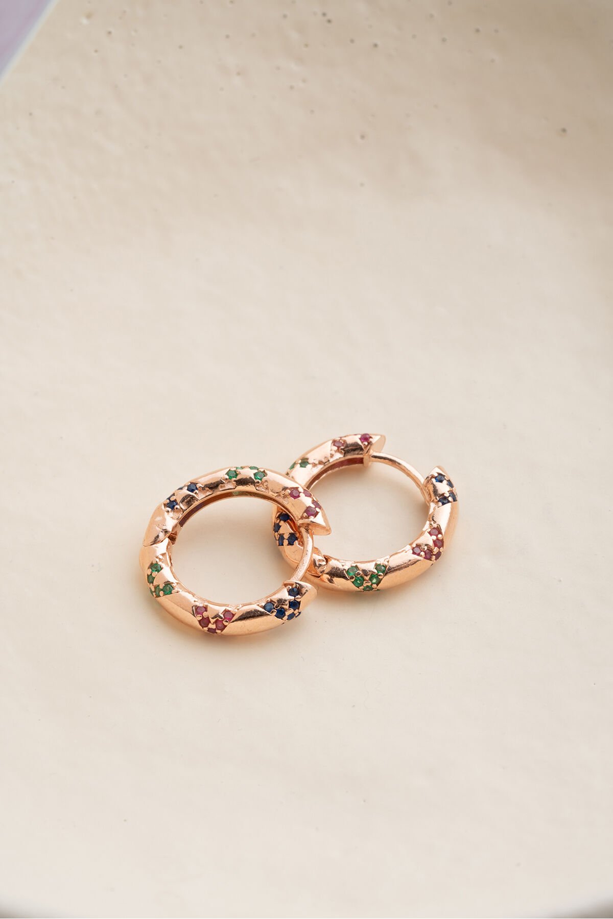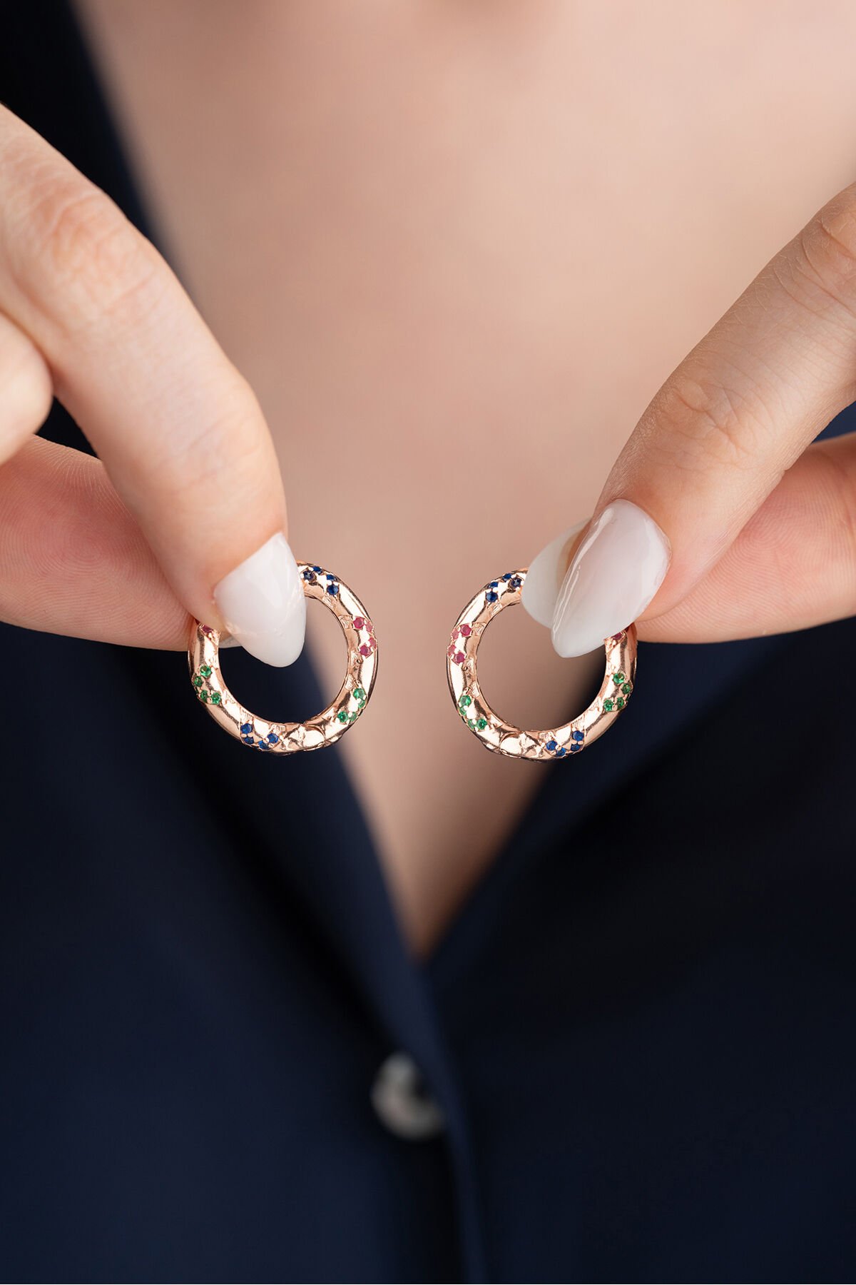 925 Ayar Gümüş Renkli Taşlı Halka Küpe