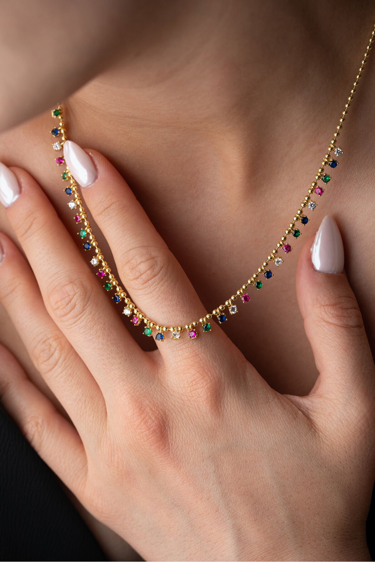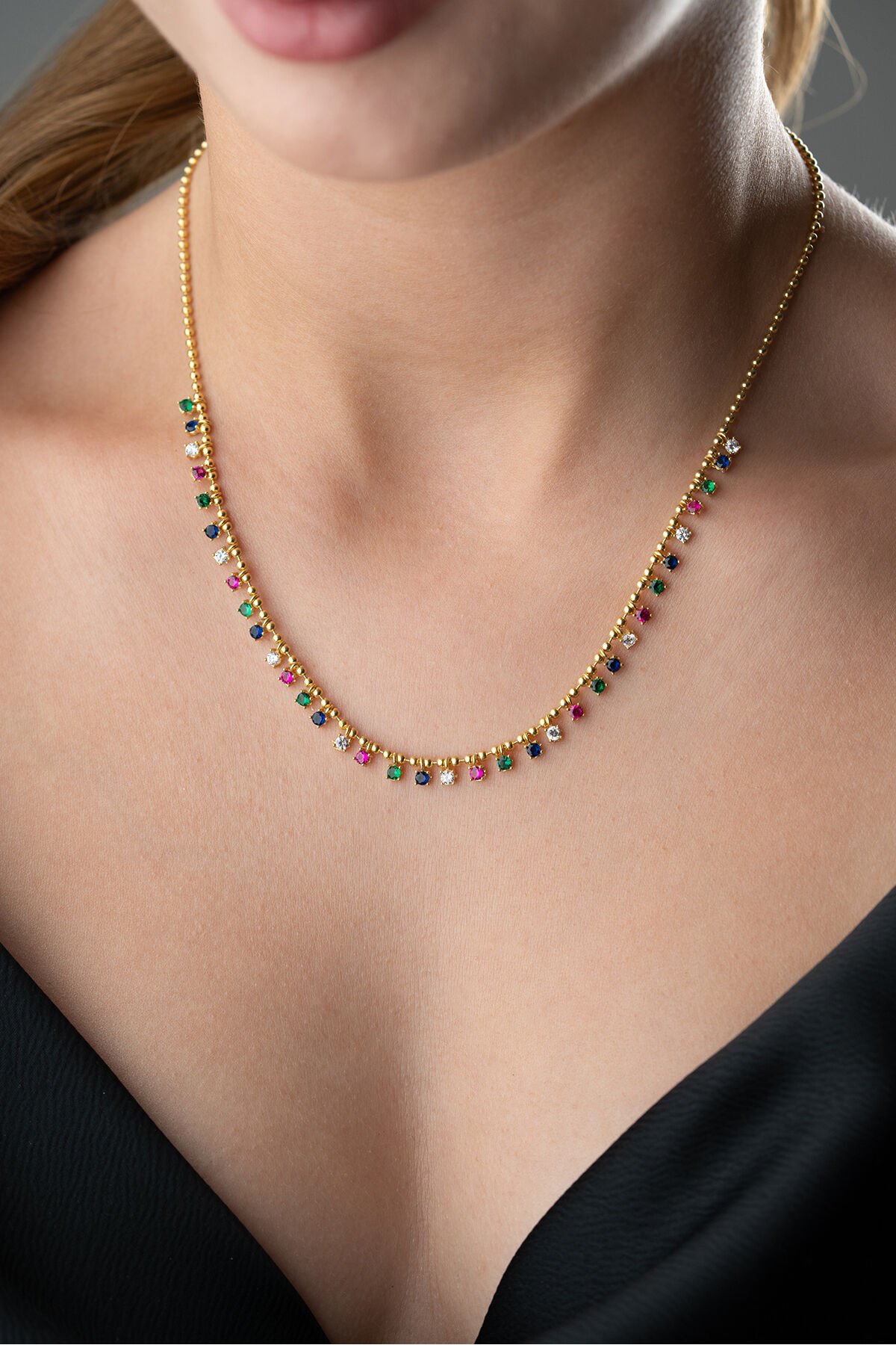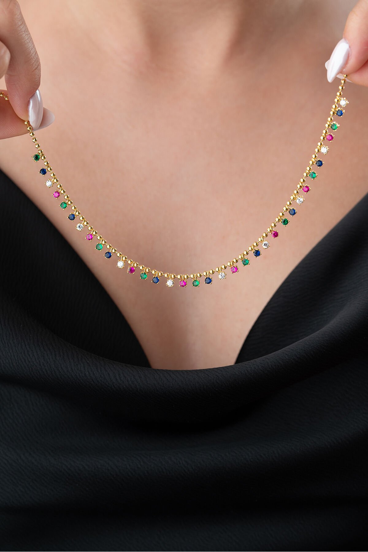 925 Ayar Gümüş Renkli Taşlı Kolye