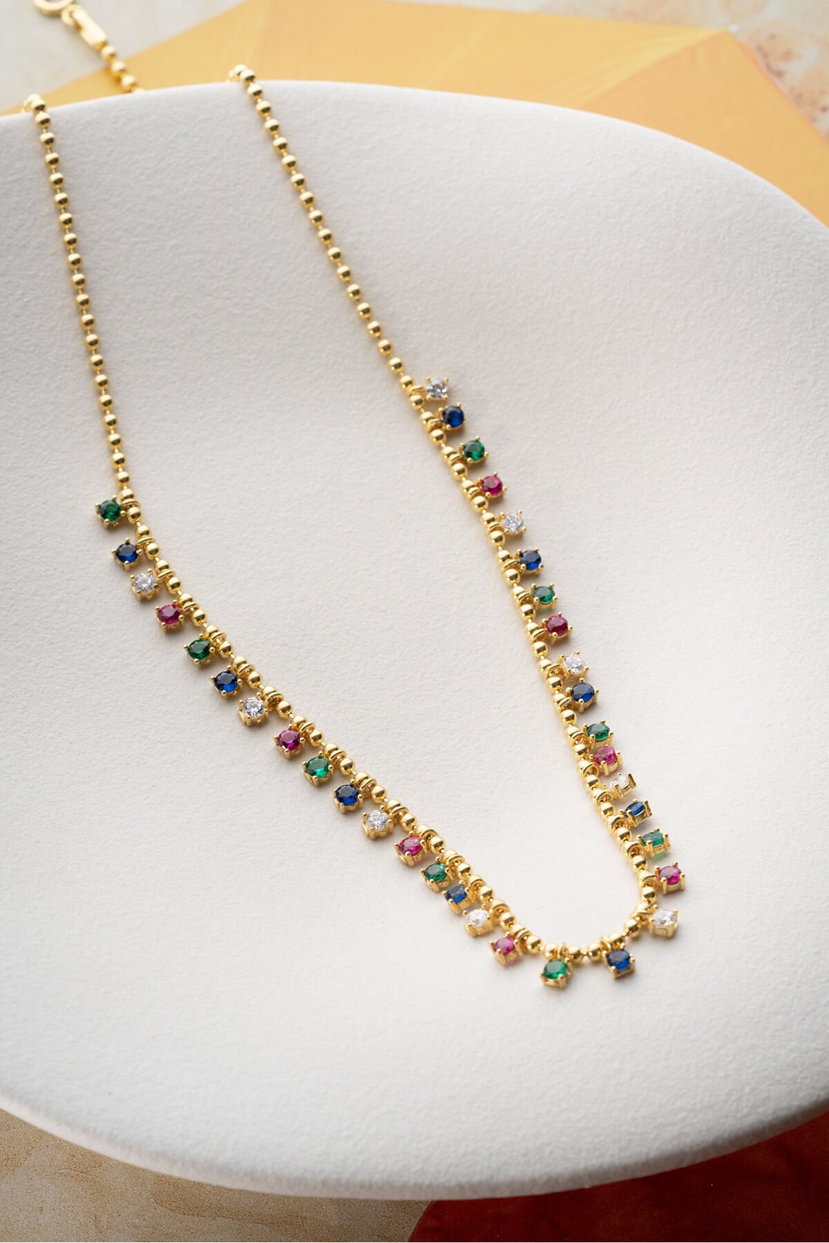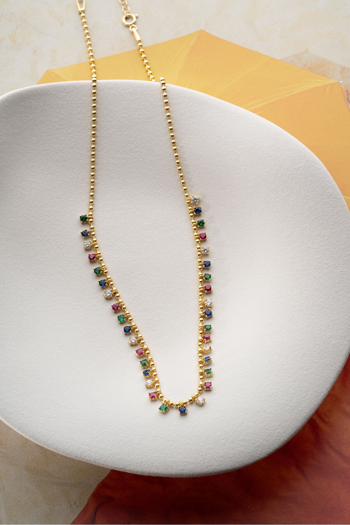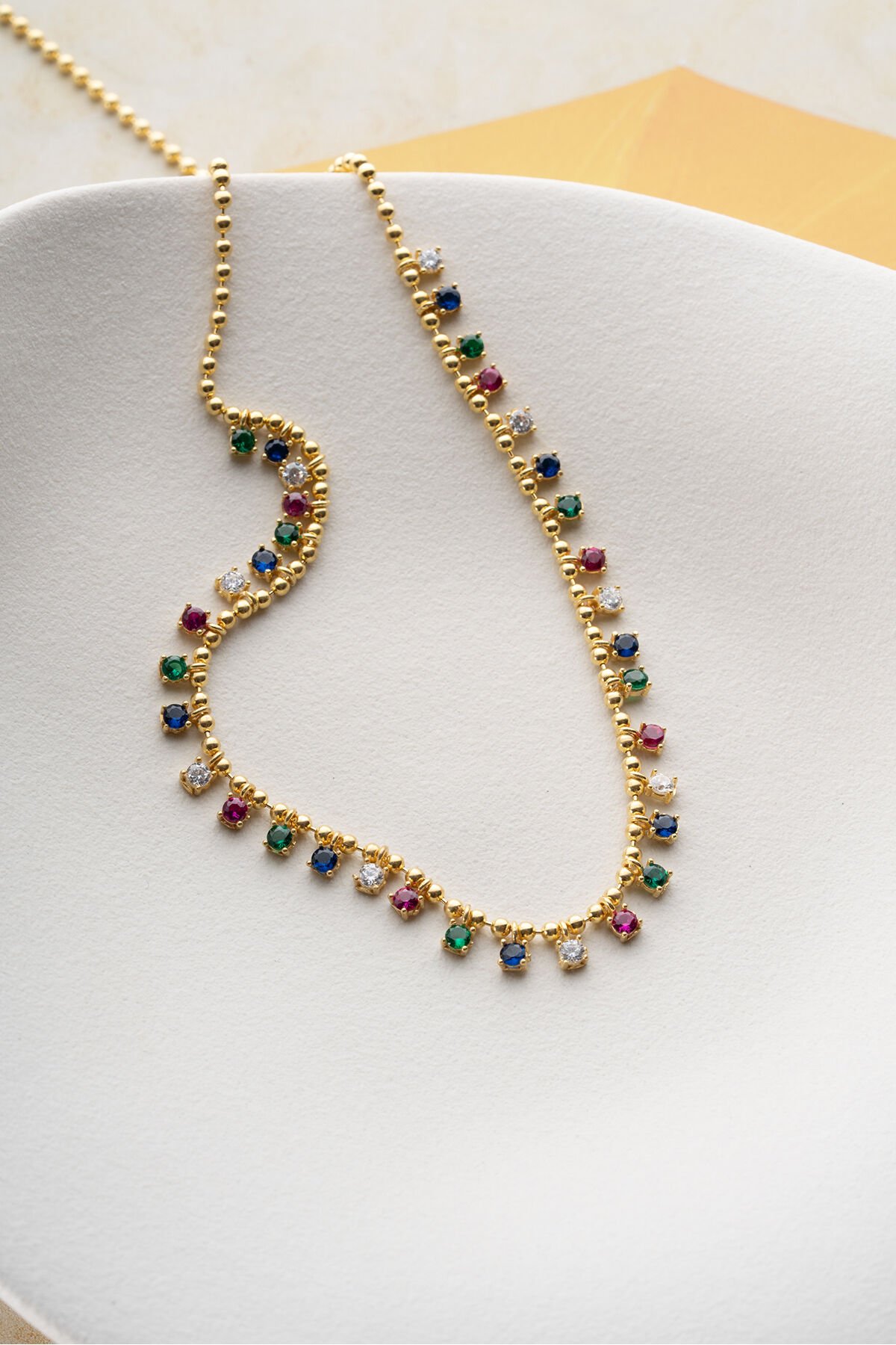 925 Ayar Gümüş Renkli Taşlı Kolye