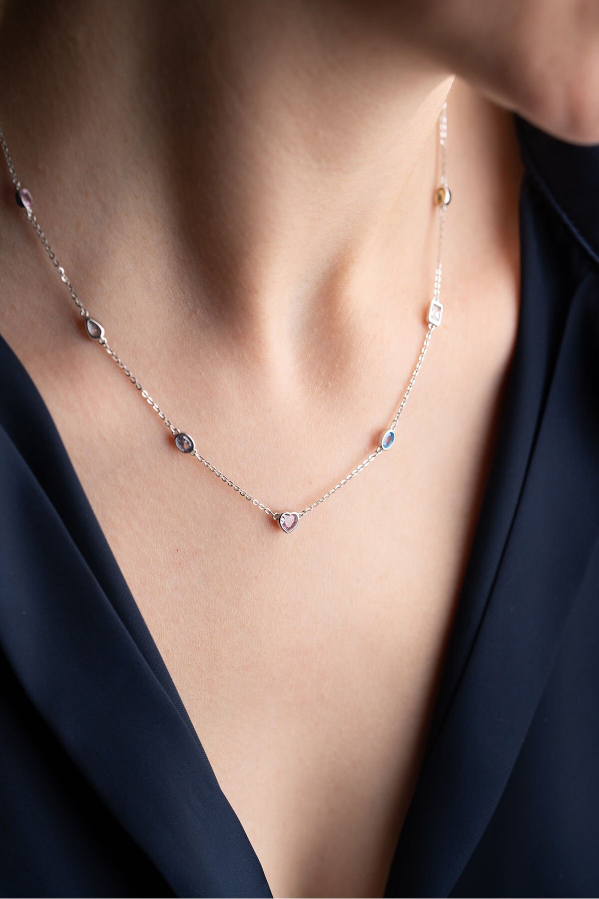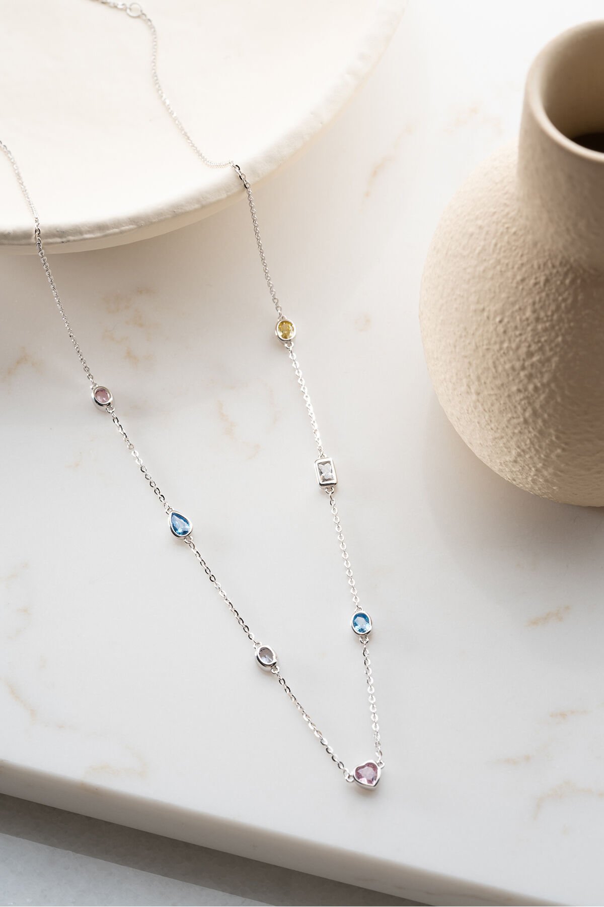 925 Ayar Gümüş Renkli Taşlı Tohum Model Kolye