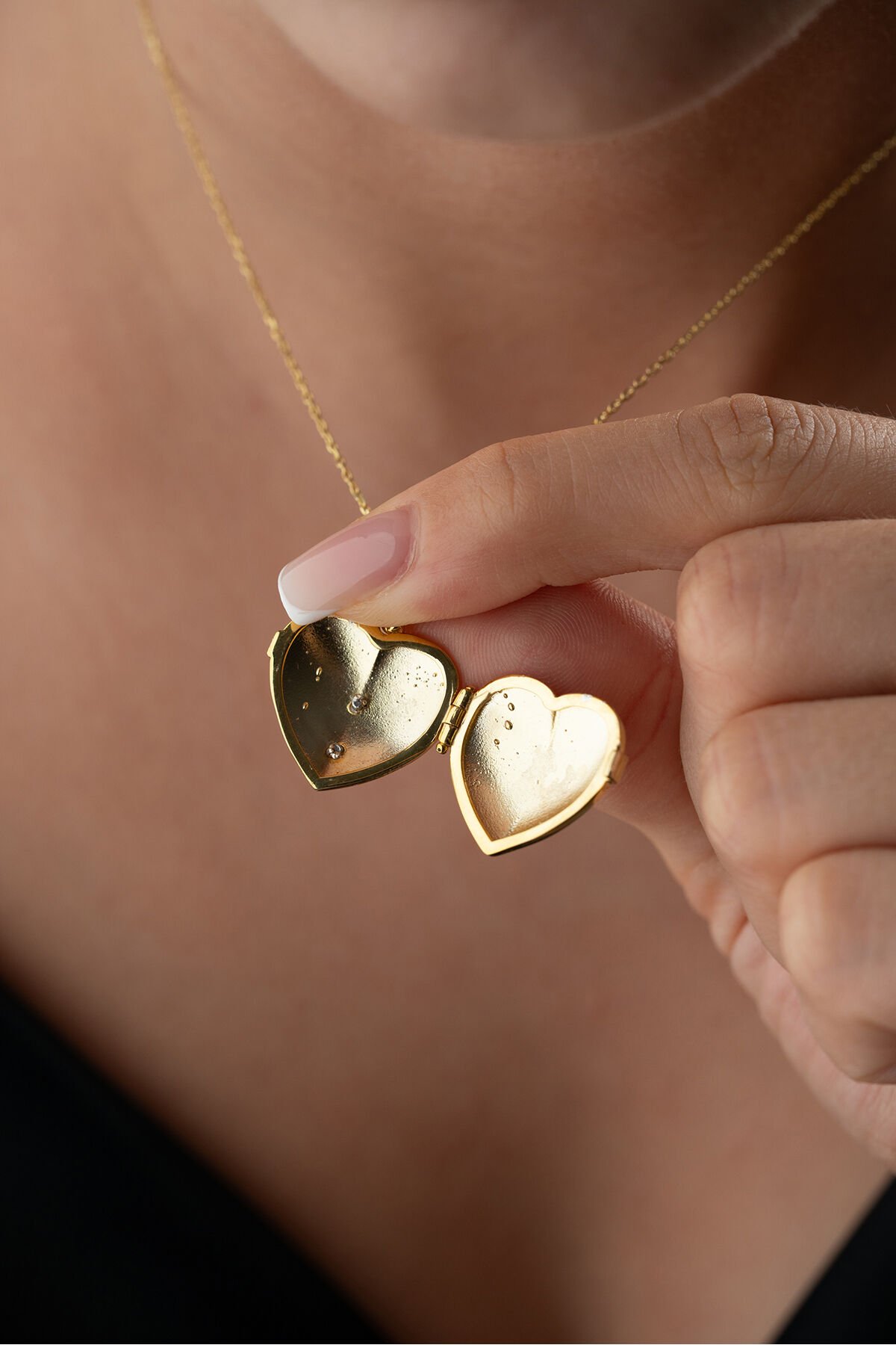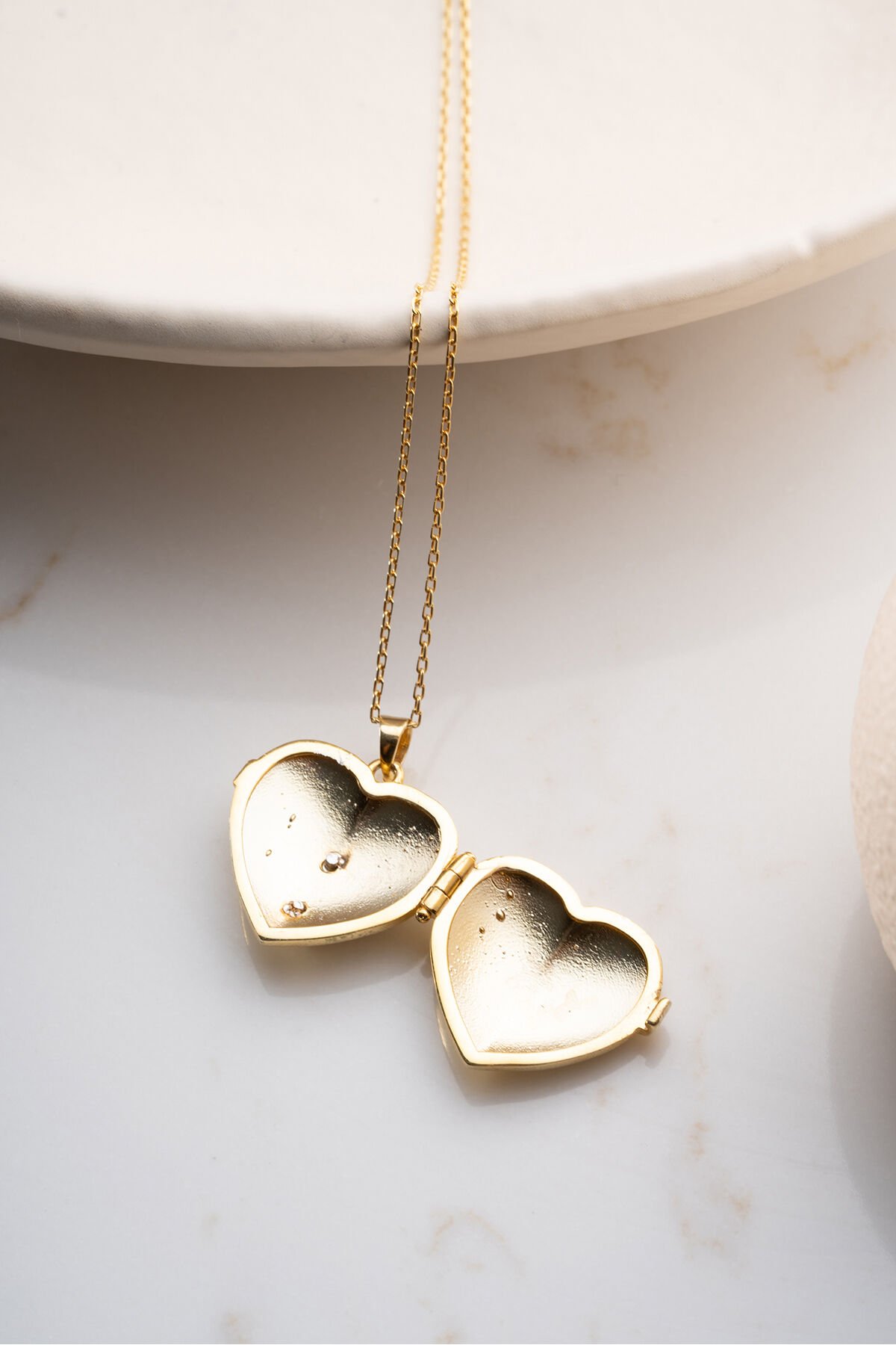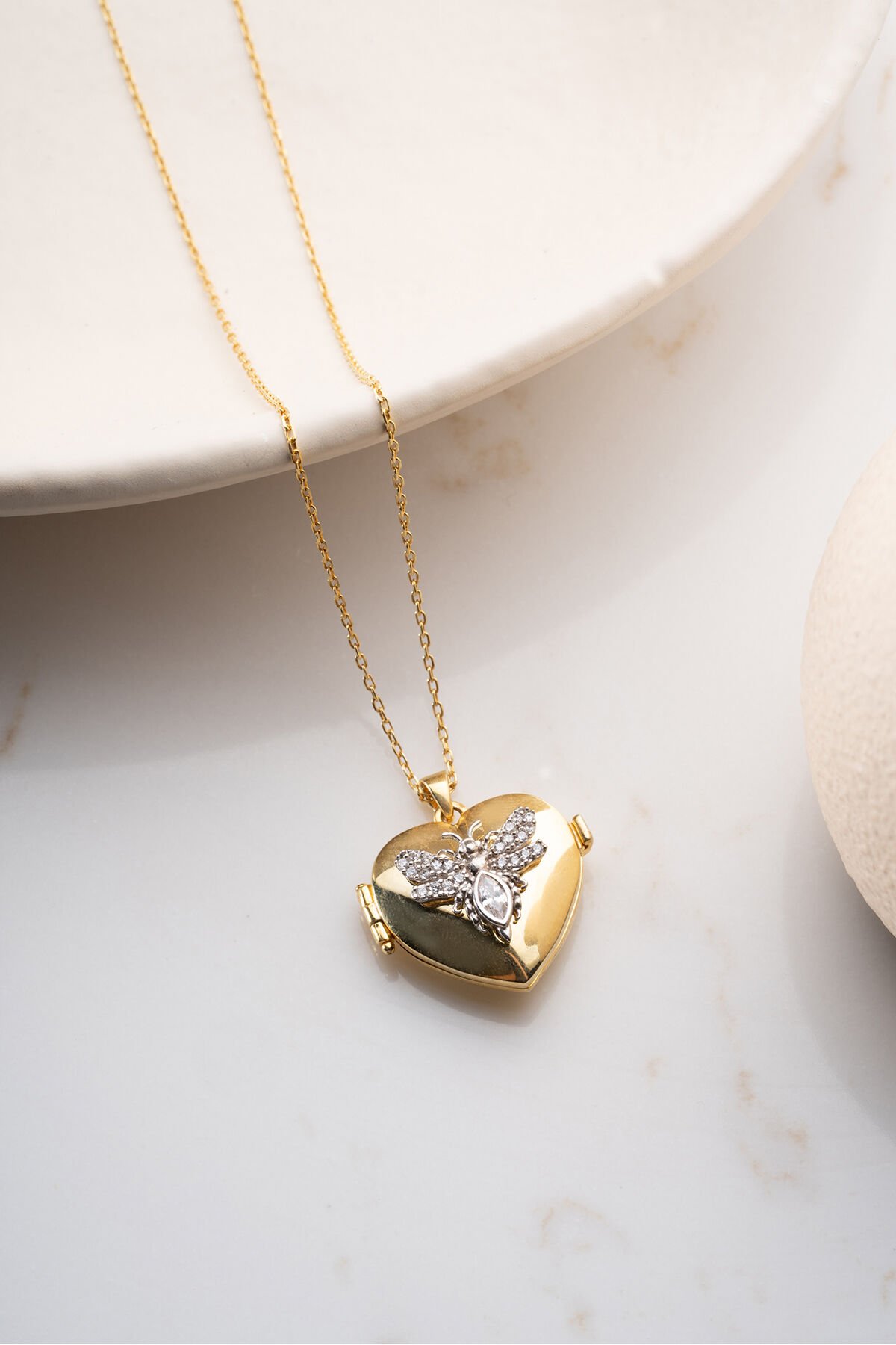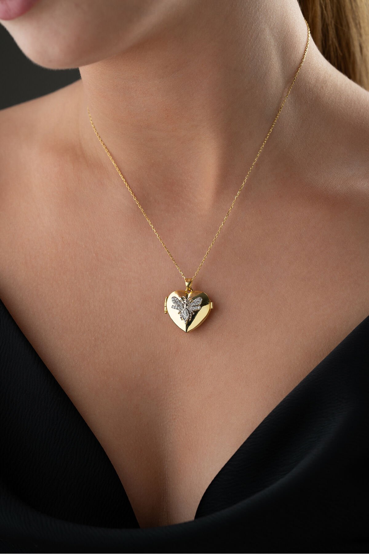 925 Ayar Gümüş Resimlik Kalpli Kelebekli Kolye