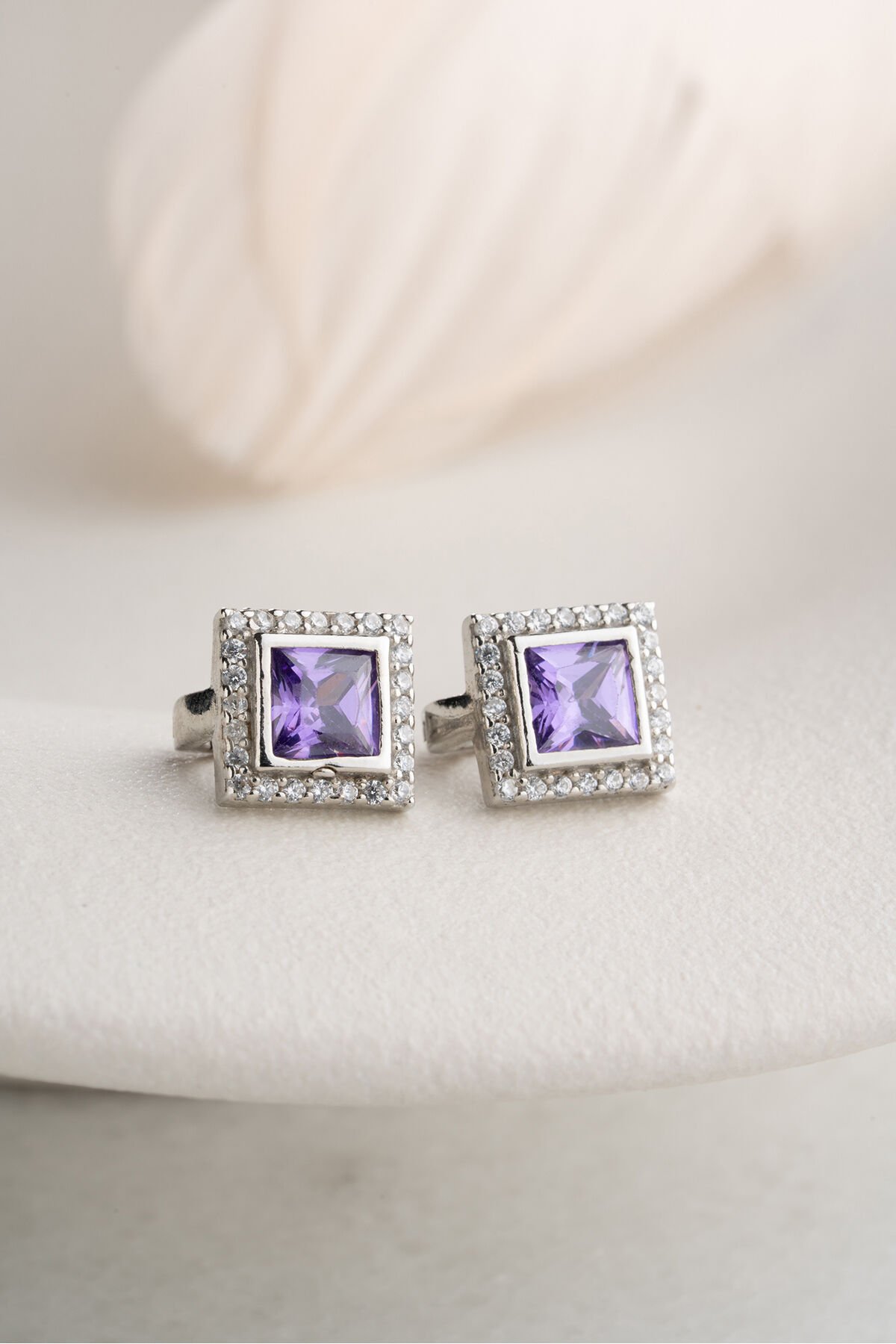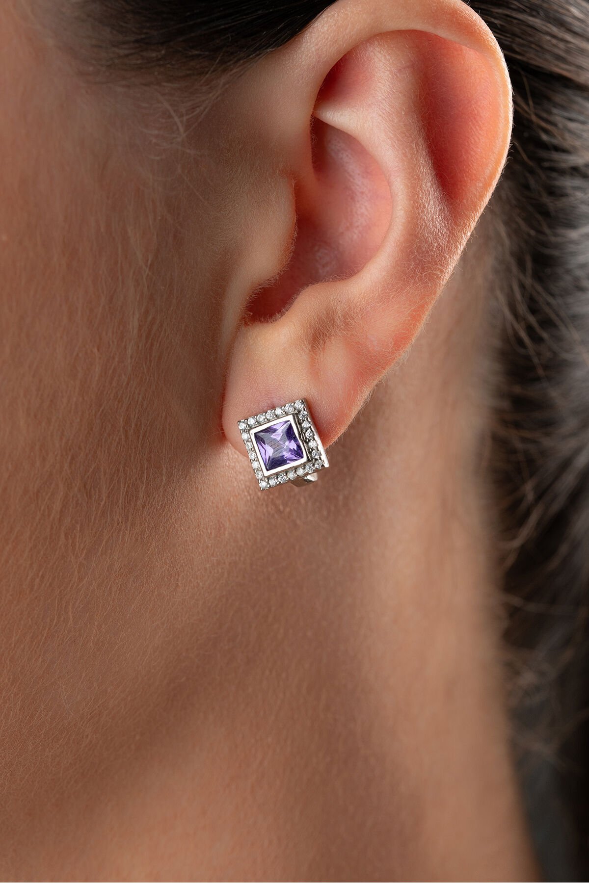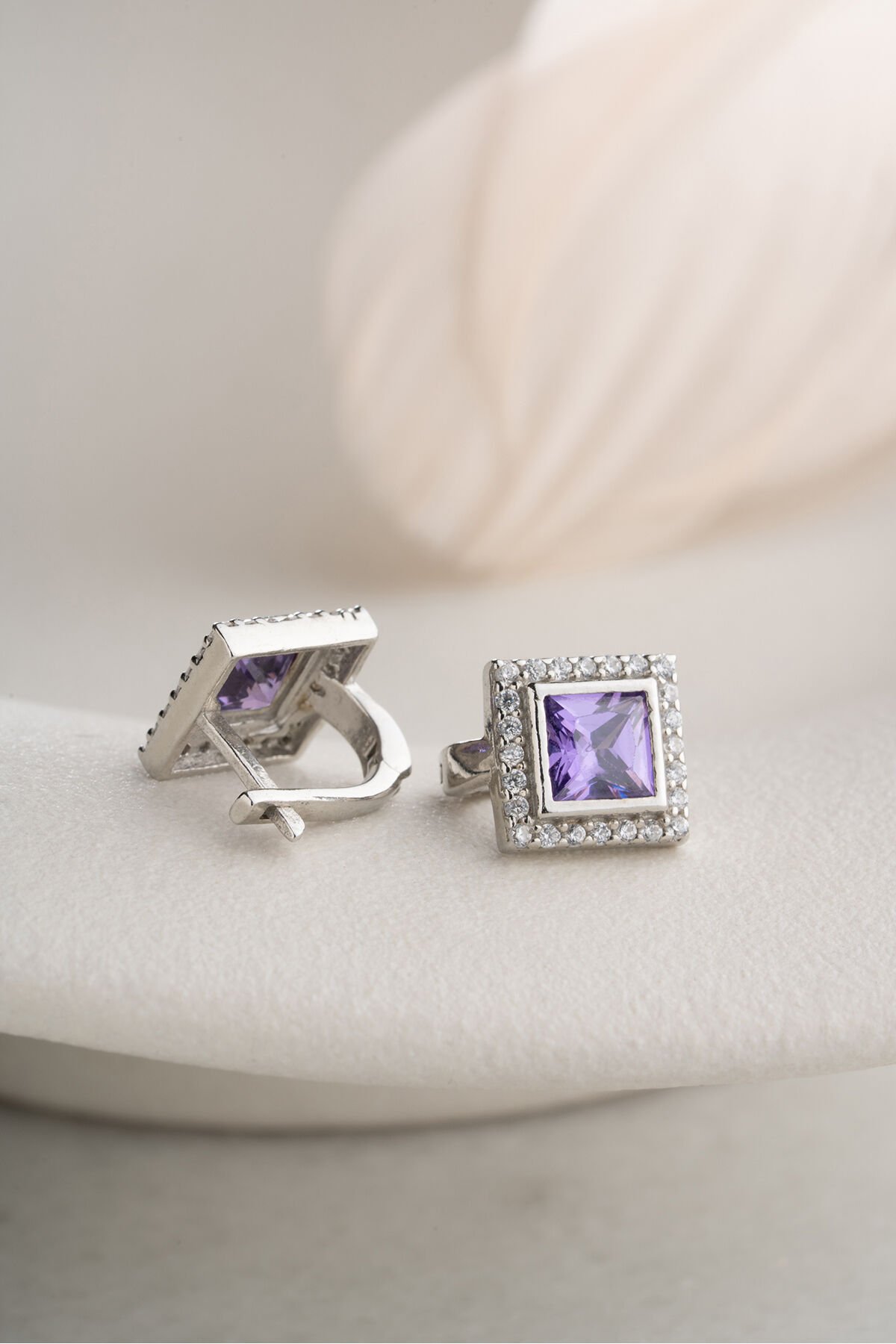925 Ayar Gümüş Rodyum Kaplama Amatist Taşlı Model Küpe