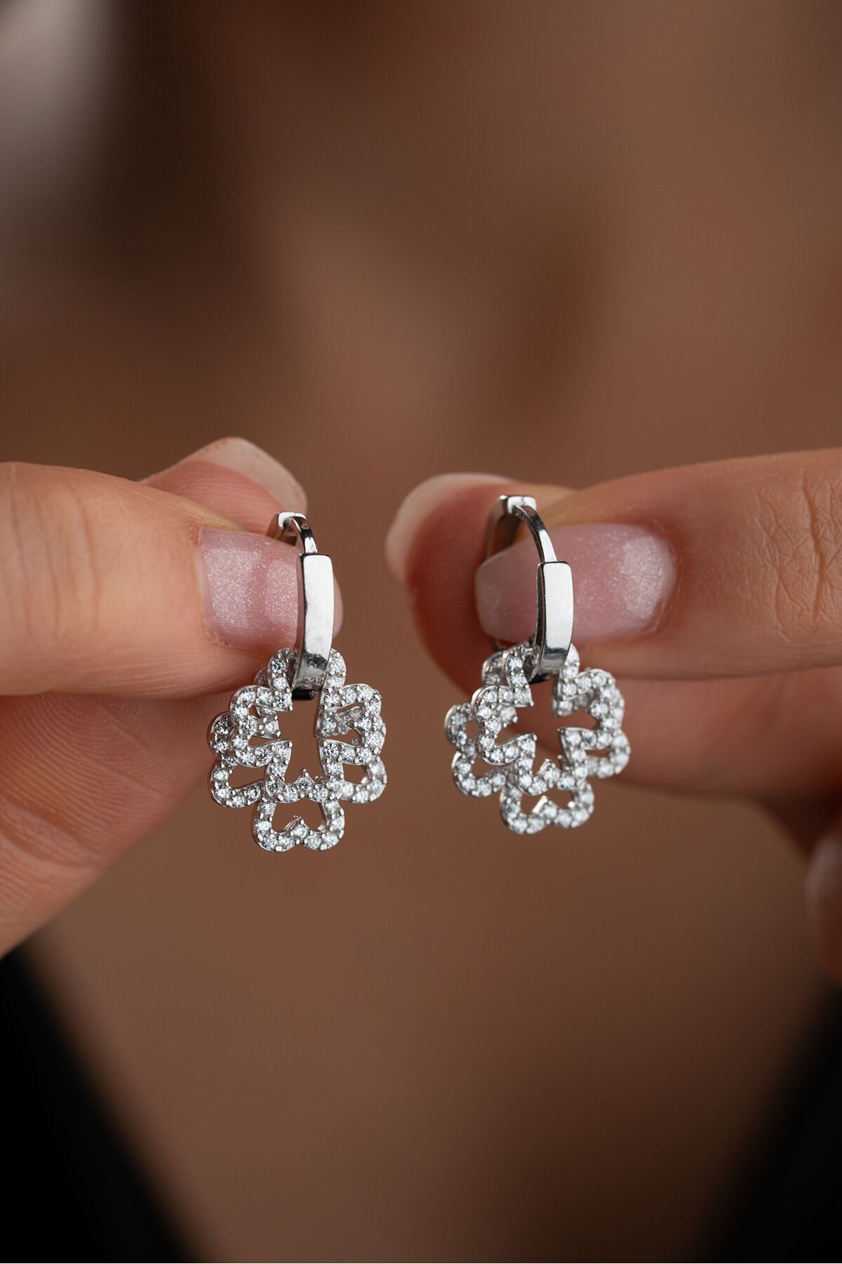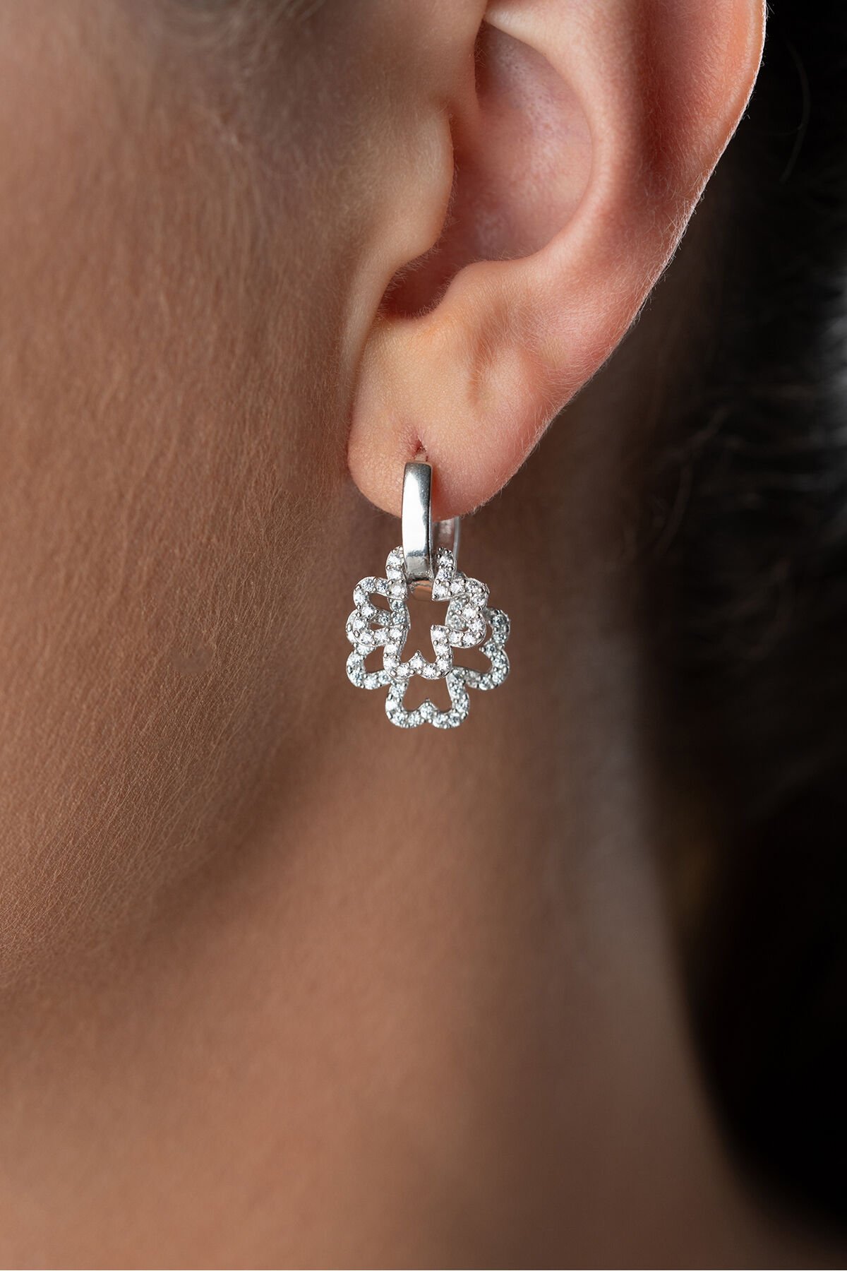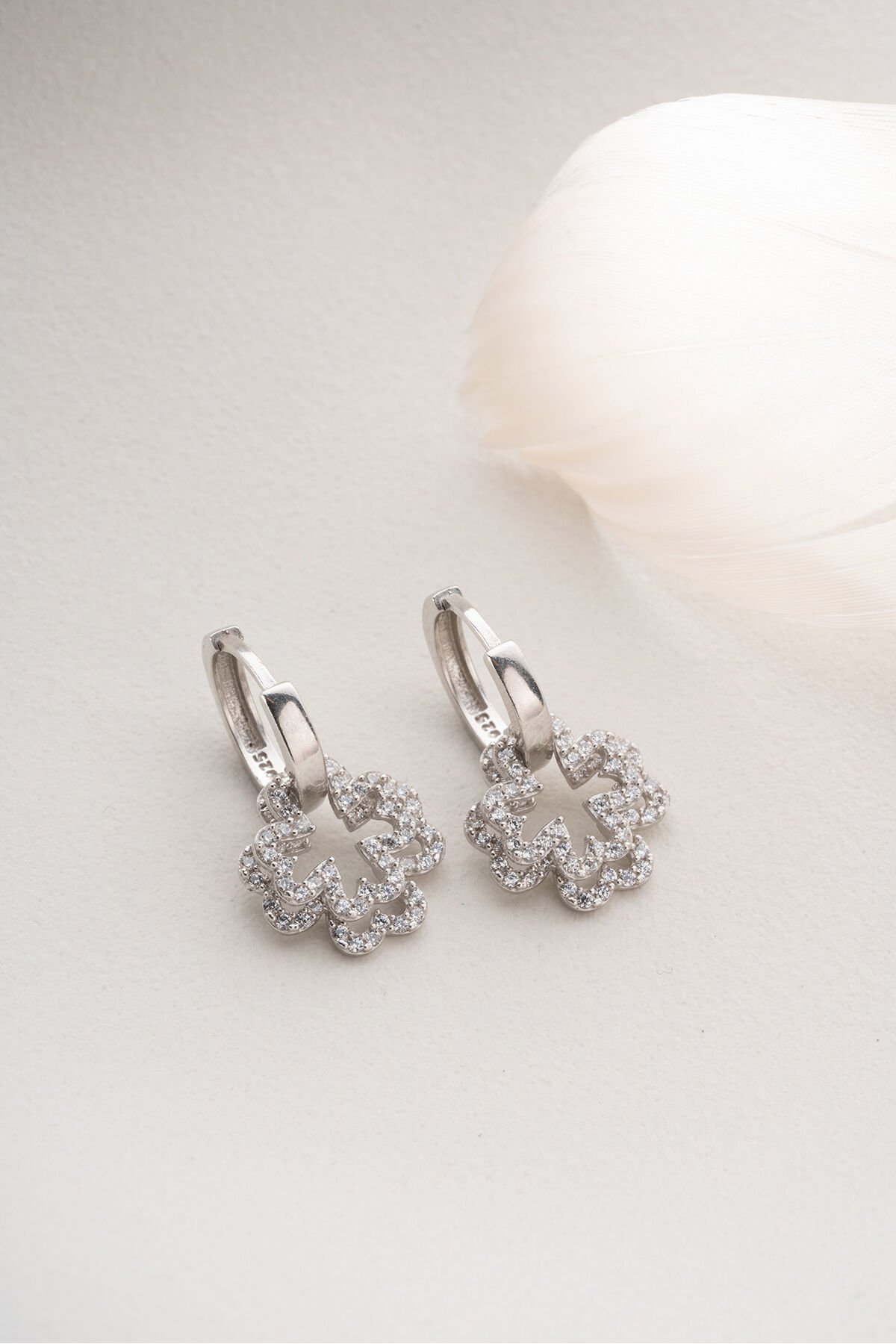 925 Ayar Gümüş Rodyum Kaplama Çiçek Model Küpe