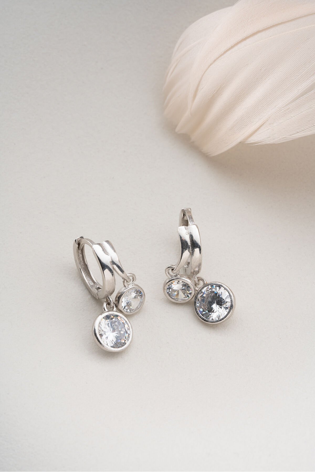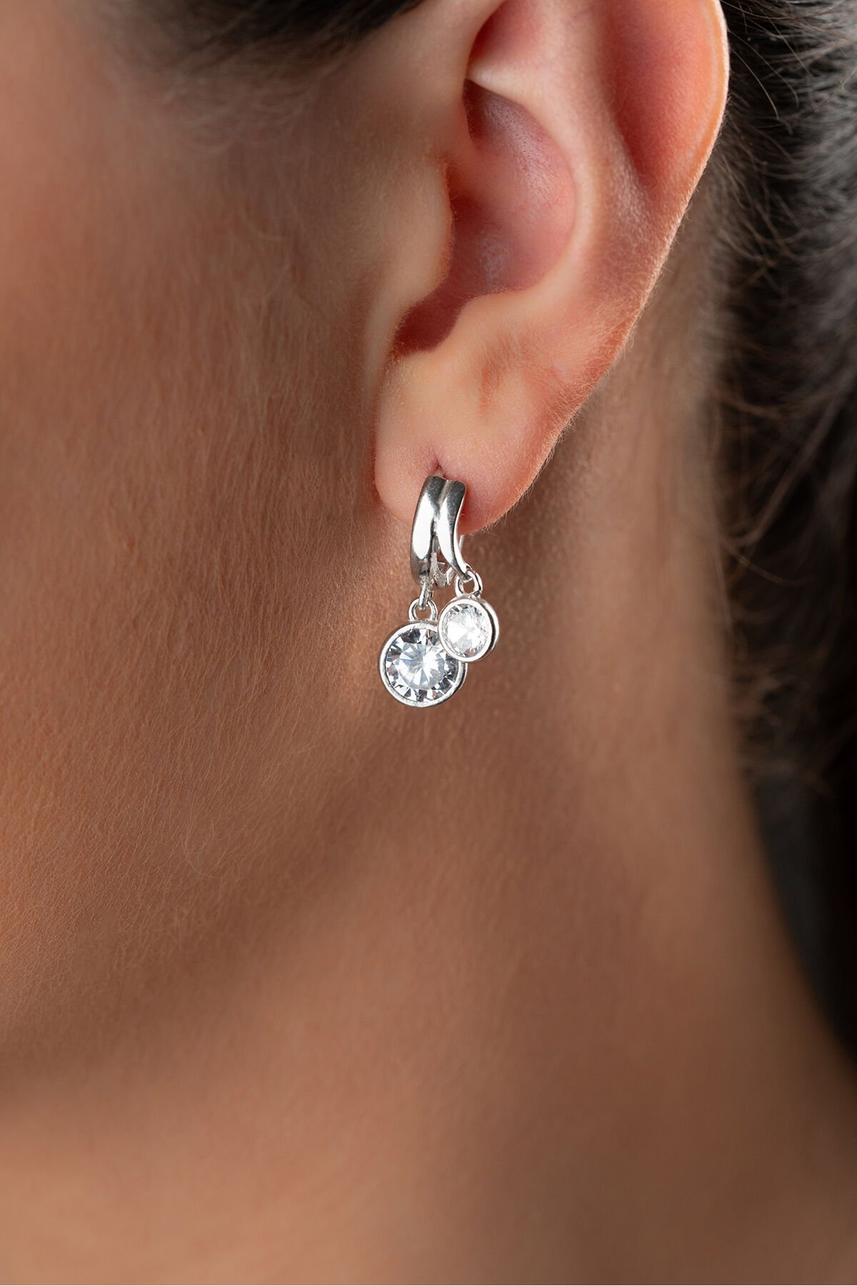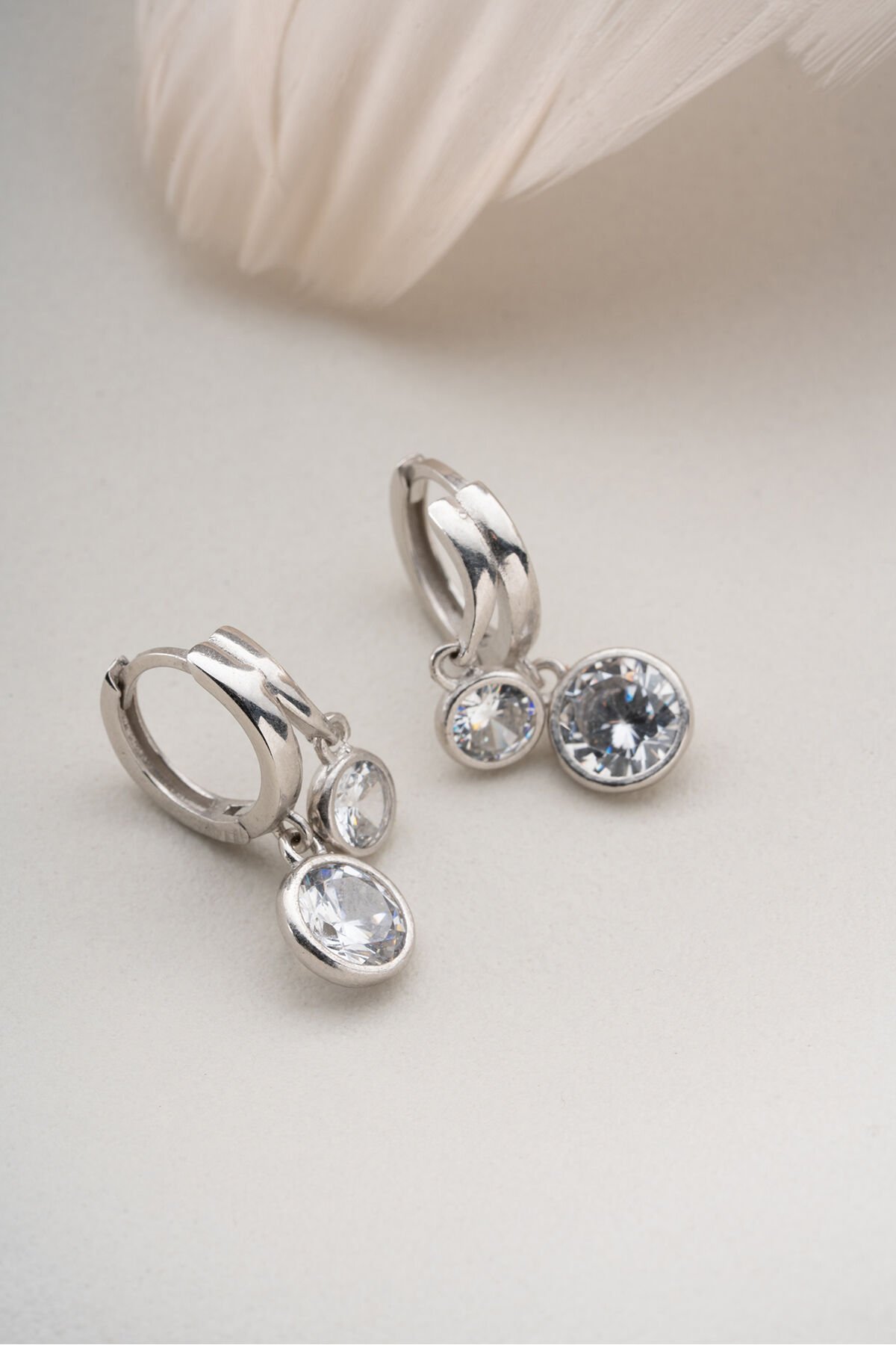 925 Ayar Gümüş Rodyum Kaplama Çift Taşlı Küpe