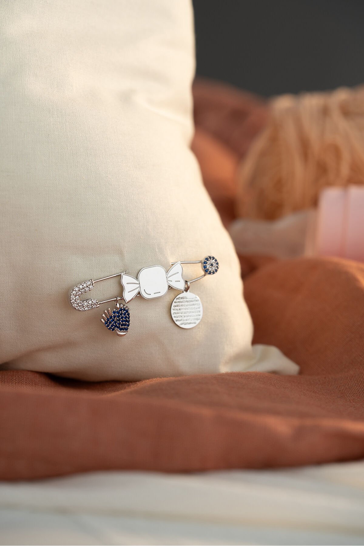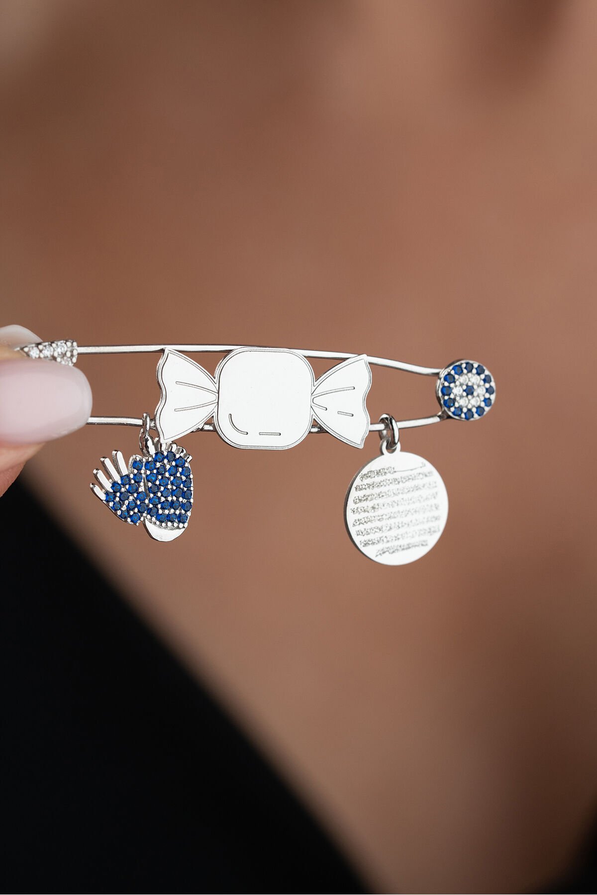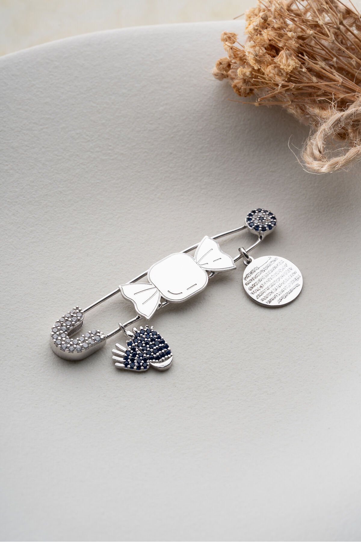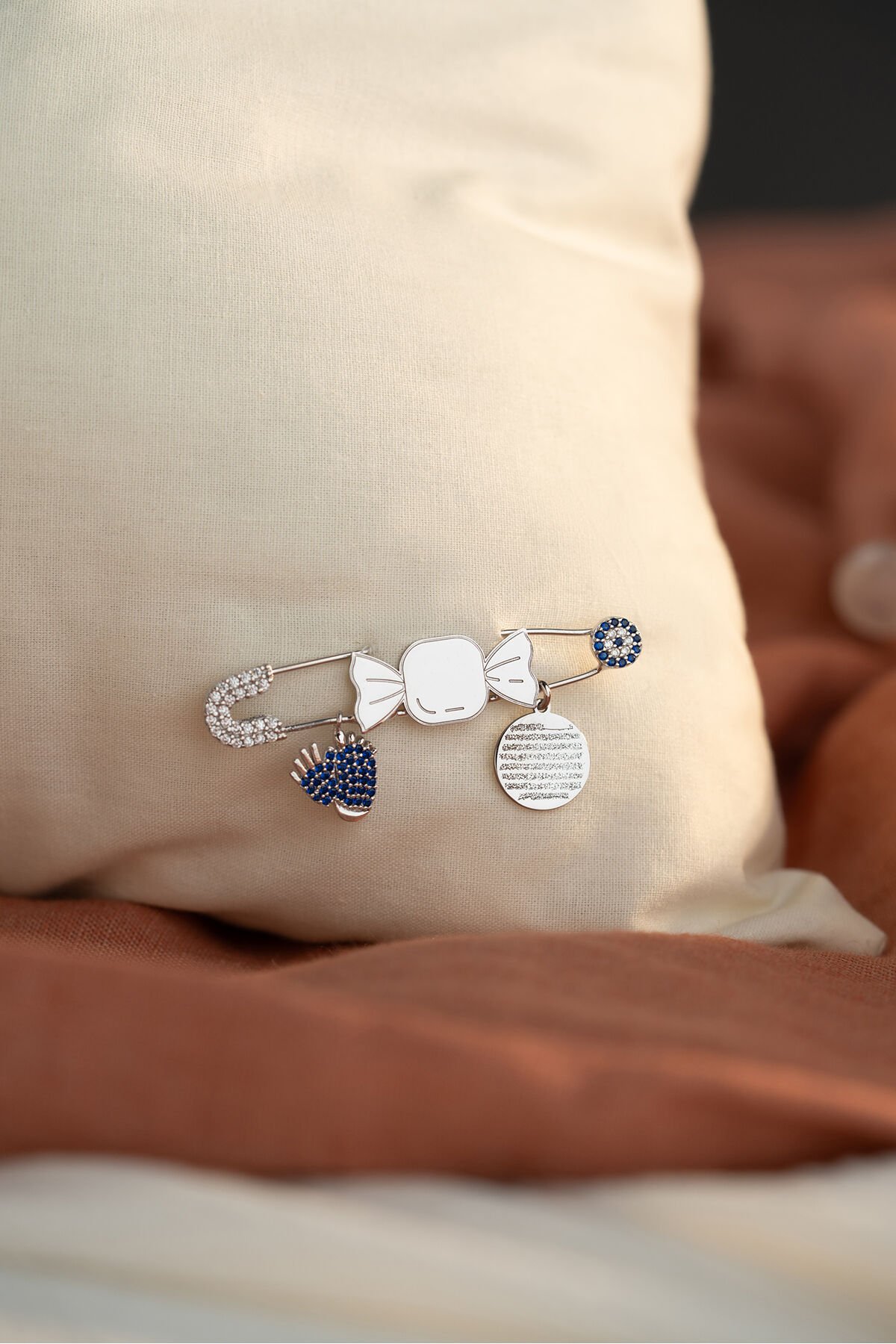 925 Ayar Gümüş Rodyum Kaplama Dualı Bebek İğnesi