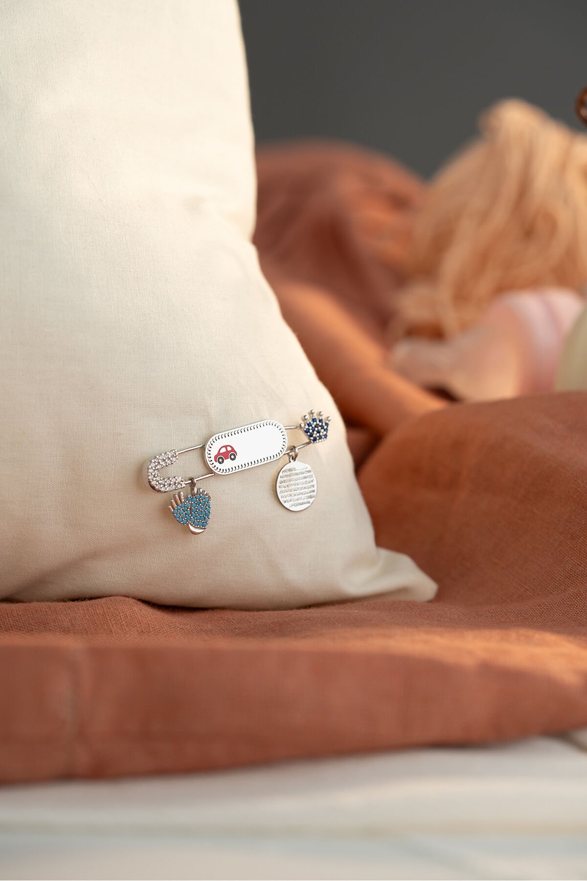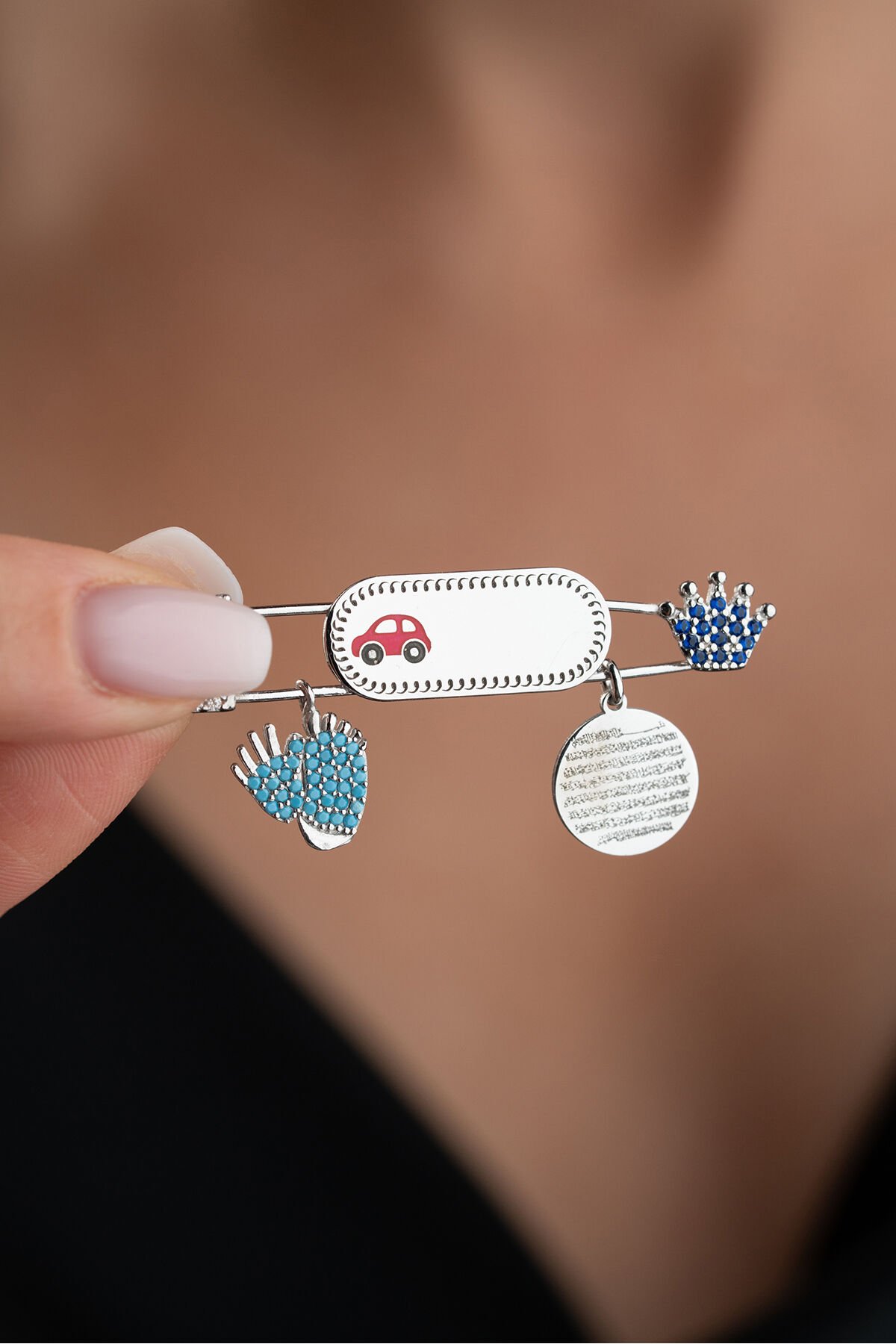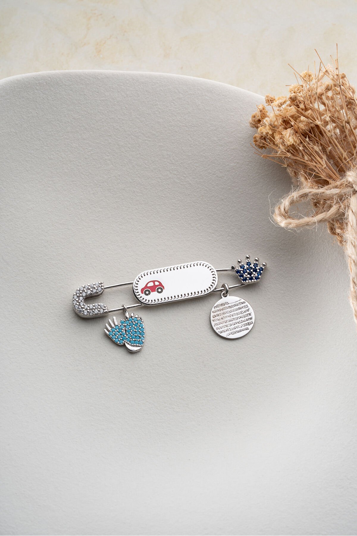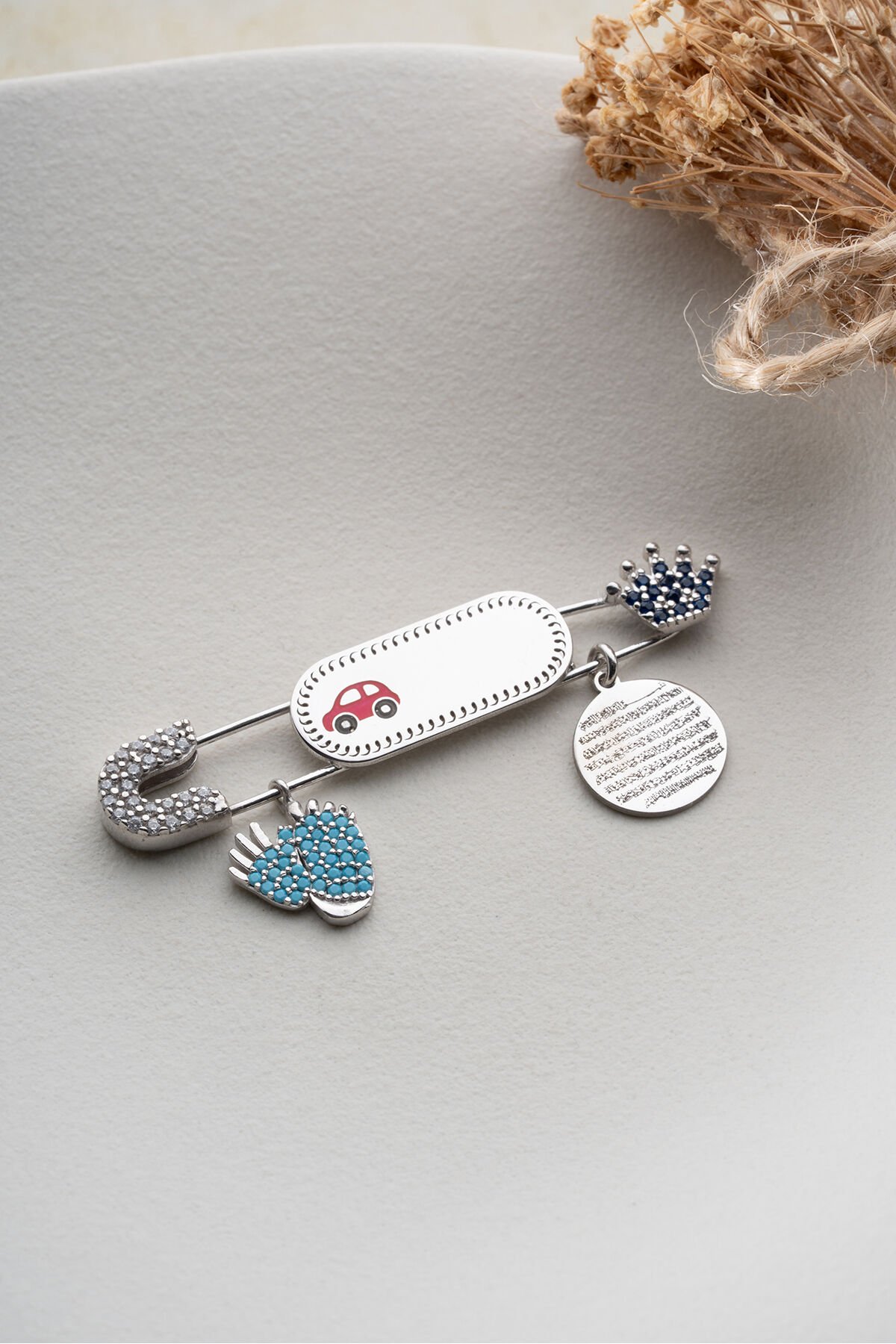 925 Ayar Gümüş Rodyum Kaplama Dualı Erkek Çocuk Bebek İğnesi
