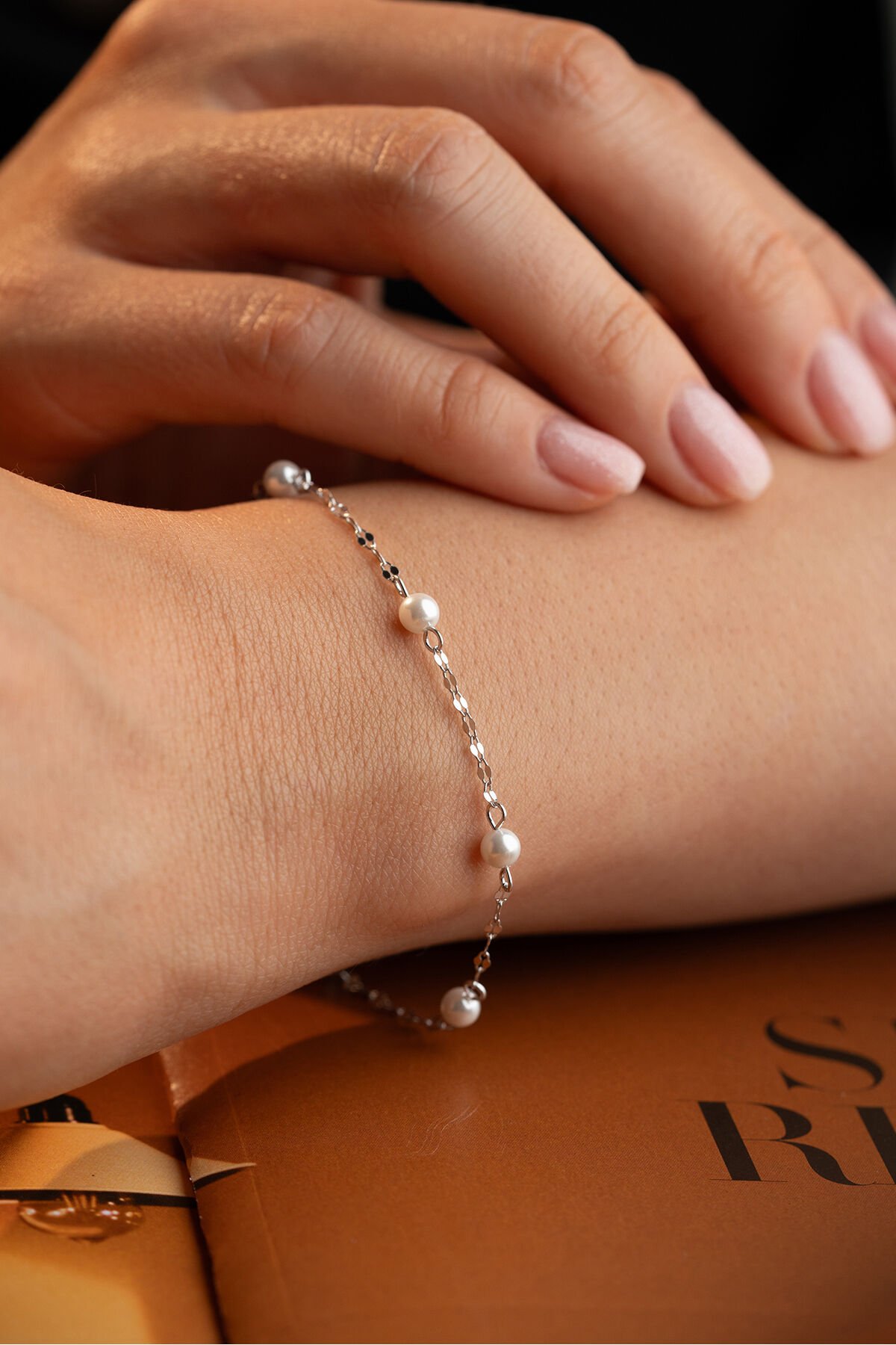 925 Ayar Gümüş Rodyum Kaplama İnci Model Bileklik