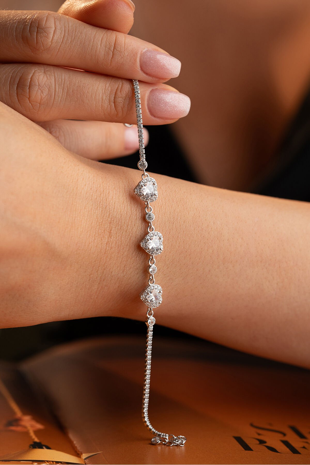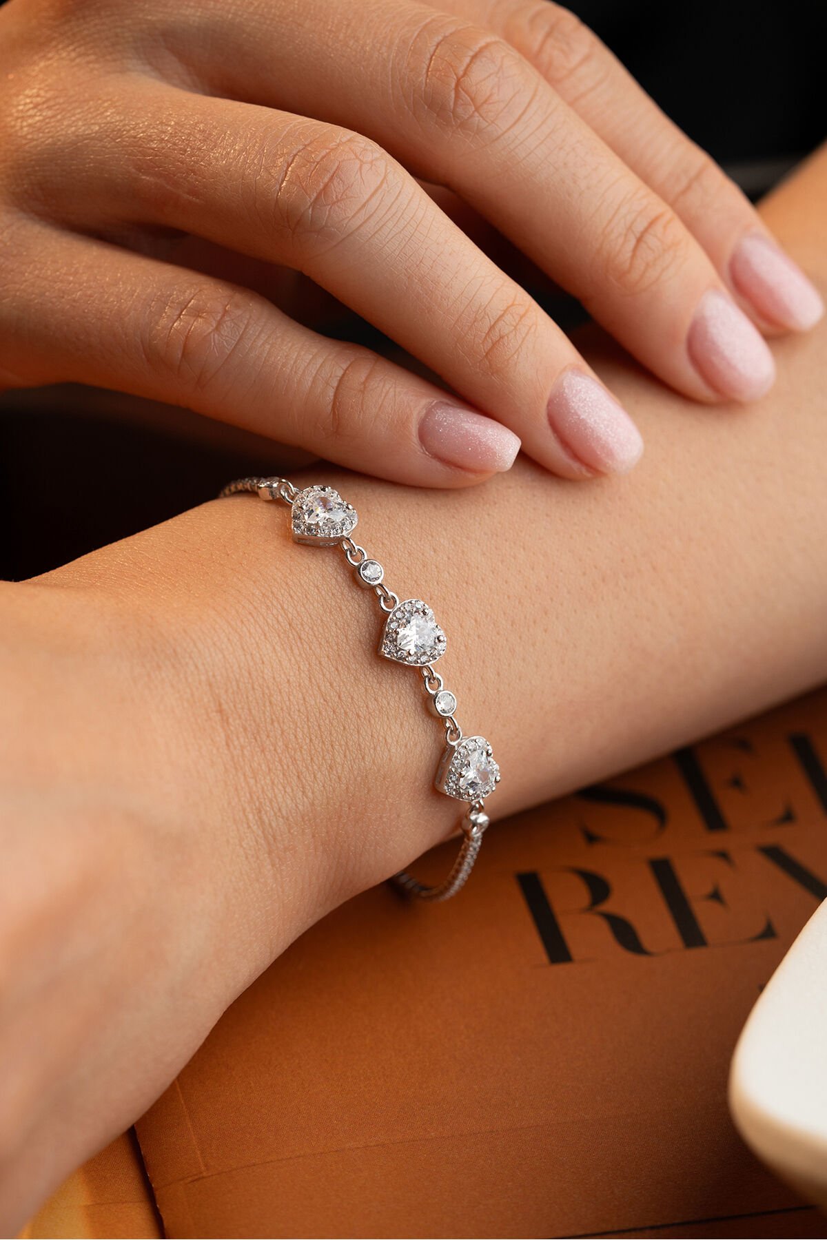925 Ayar Gümüş Rodyum Kaplama Kalpli Suyolu Bileklik