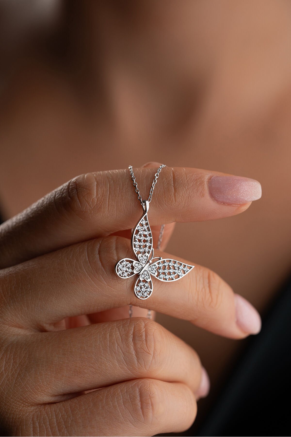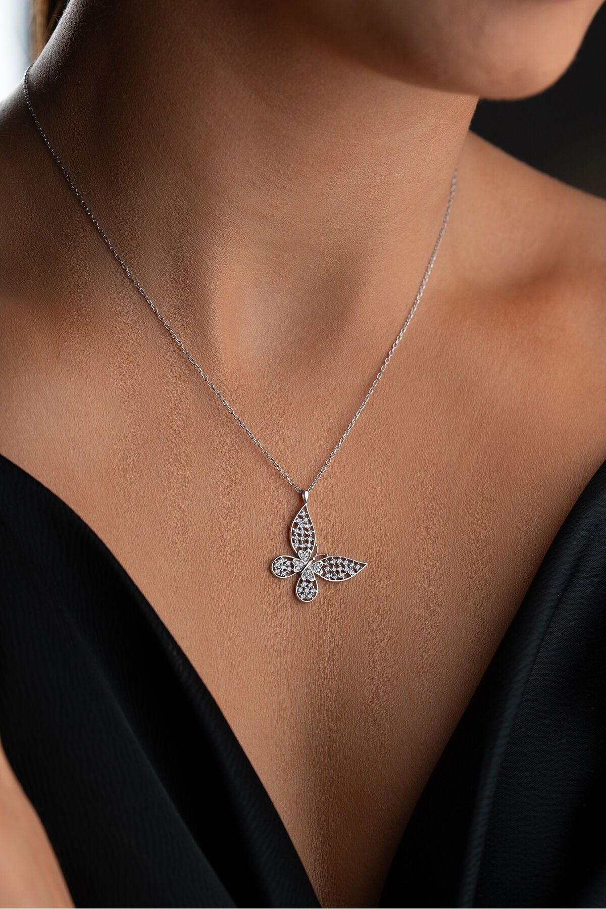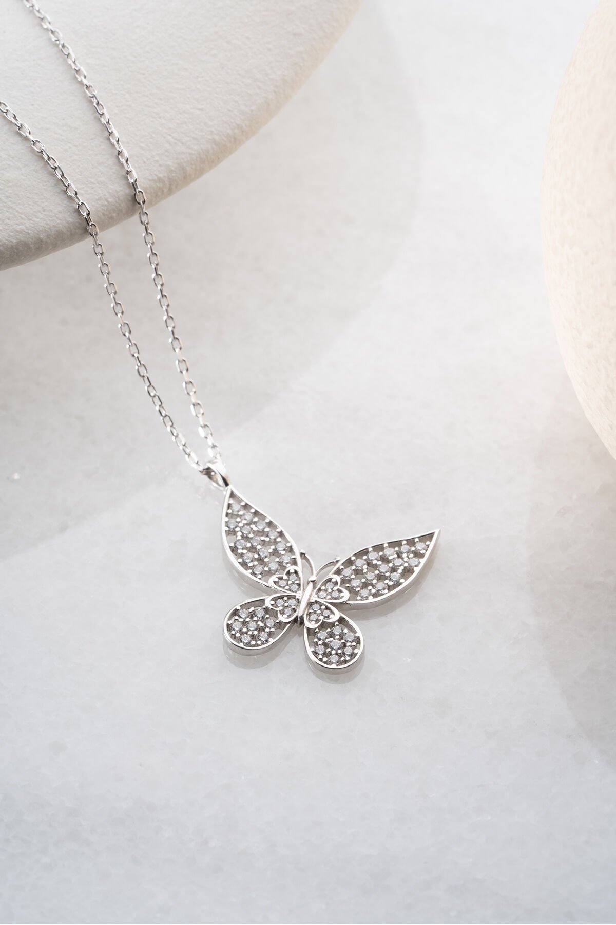 925 Ayar Gümüş Rodyum Kaplama Kelebek Kolye