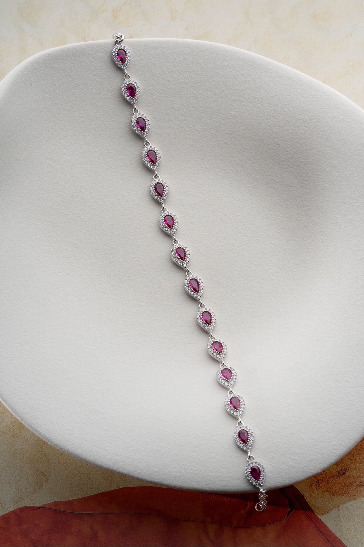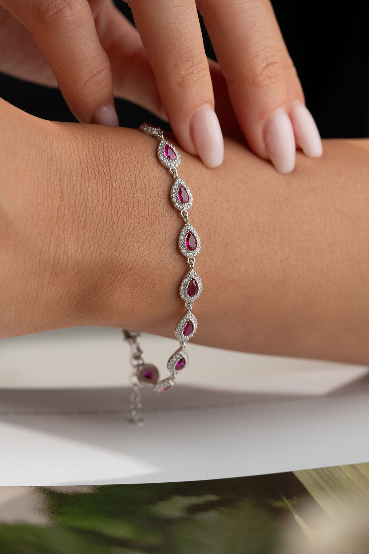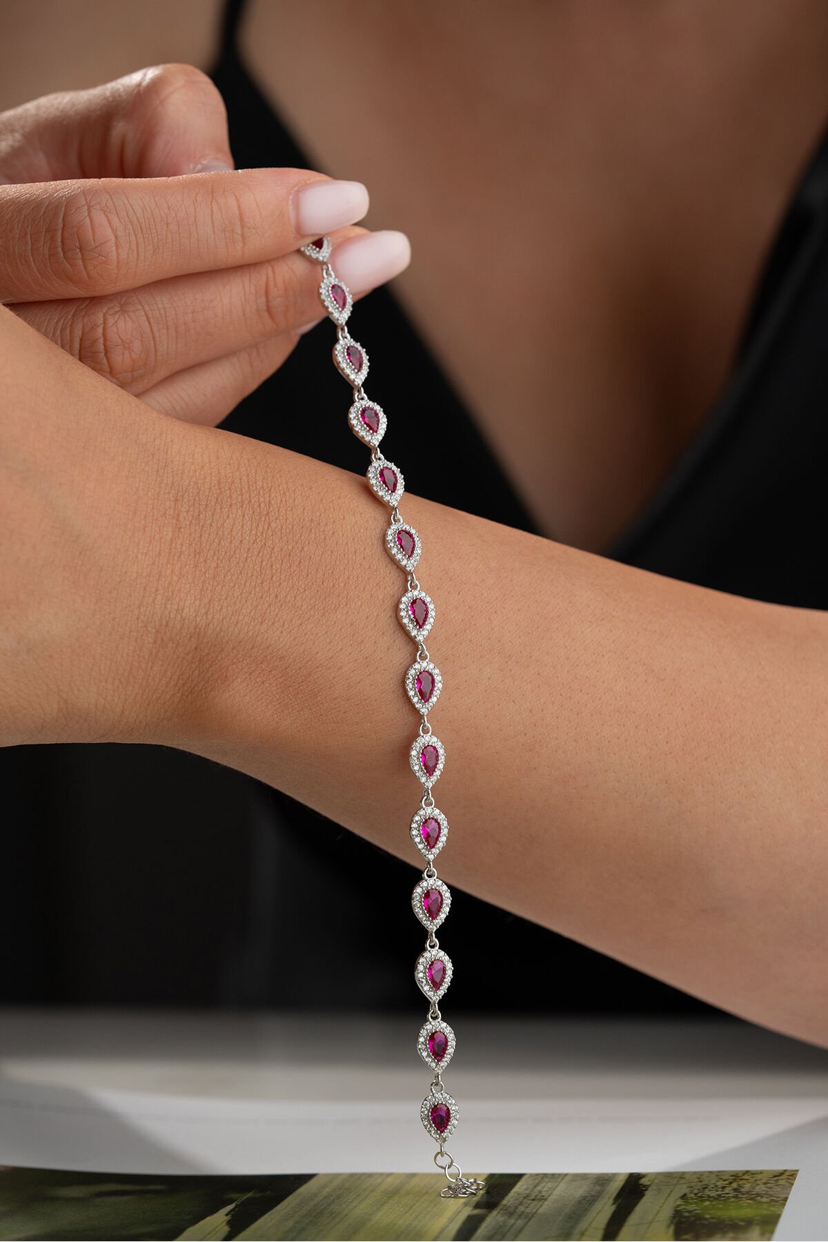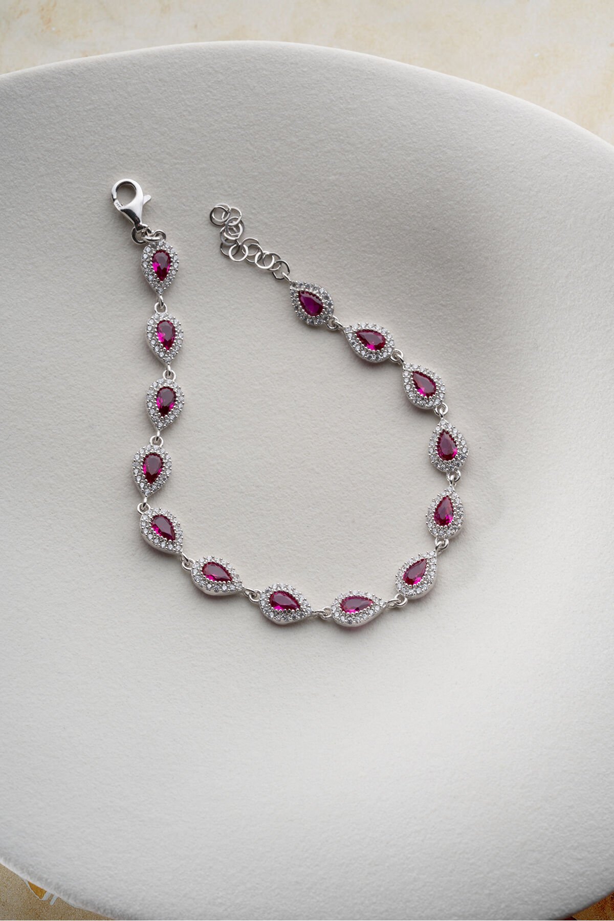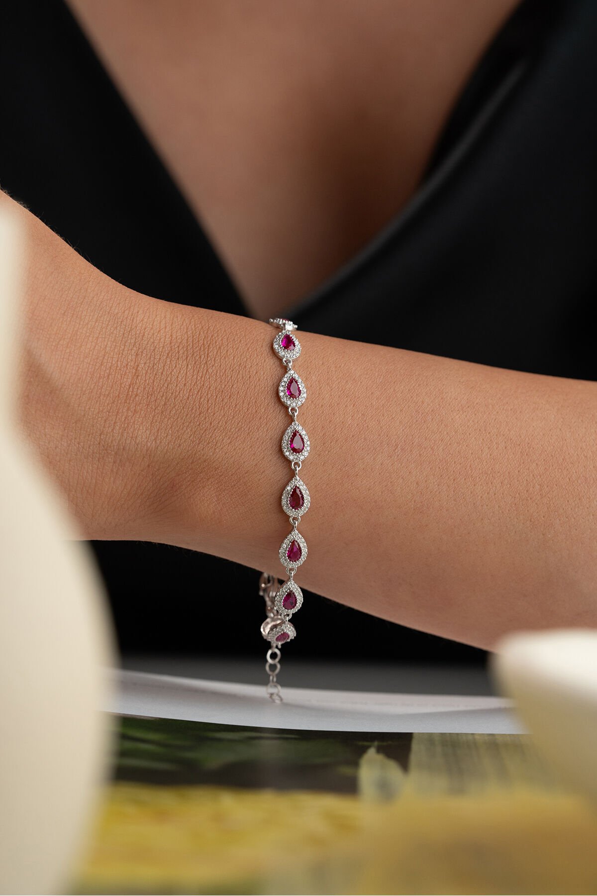 925 Ayar Gümüş Rodyum Kaplama Kırmızı Taşlı Suyolu Bileklik