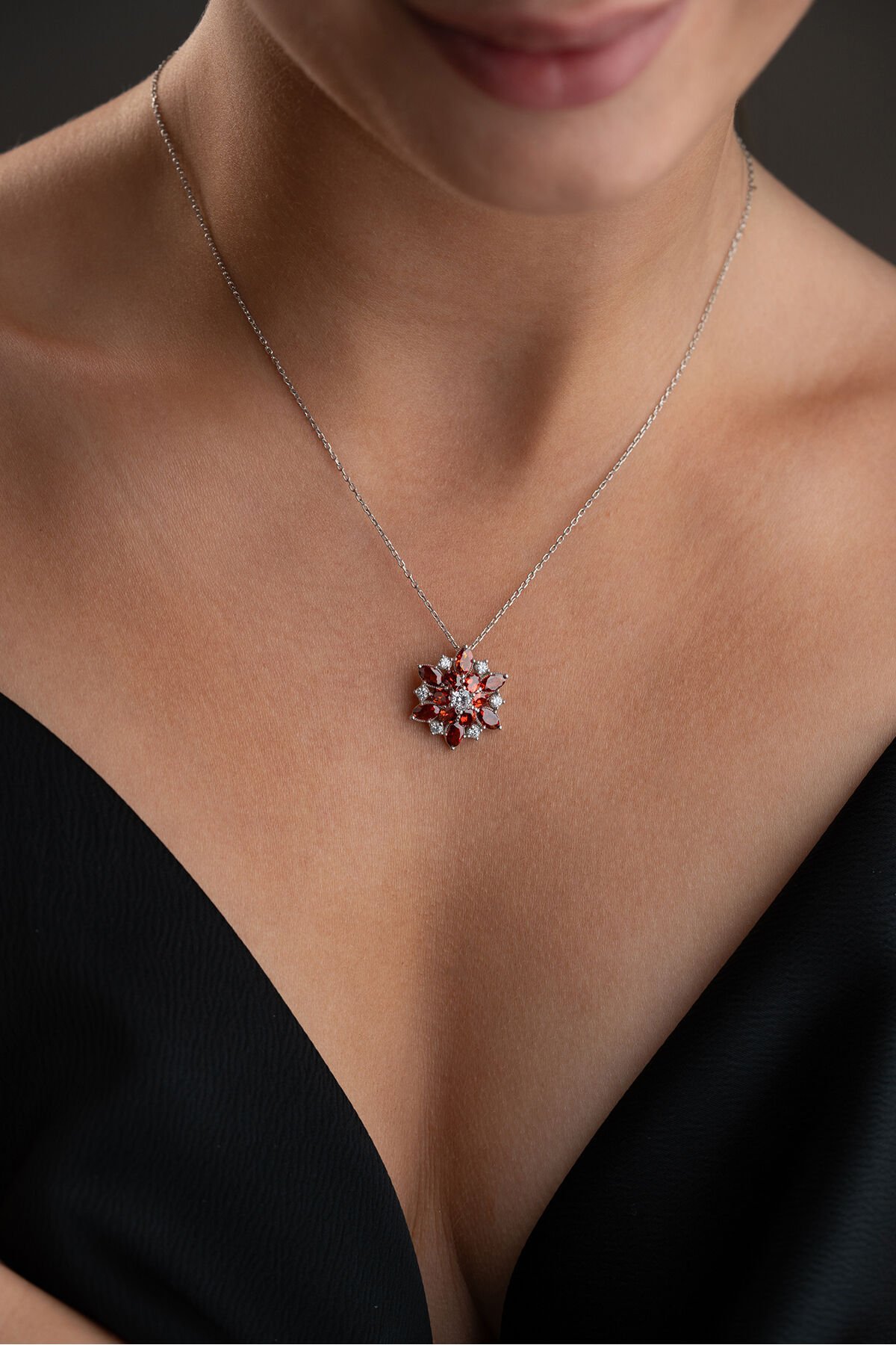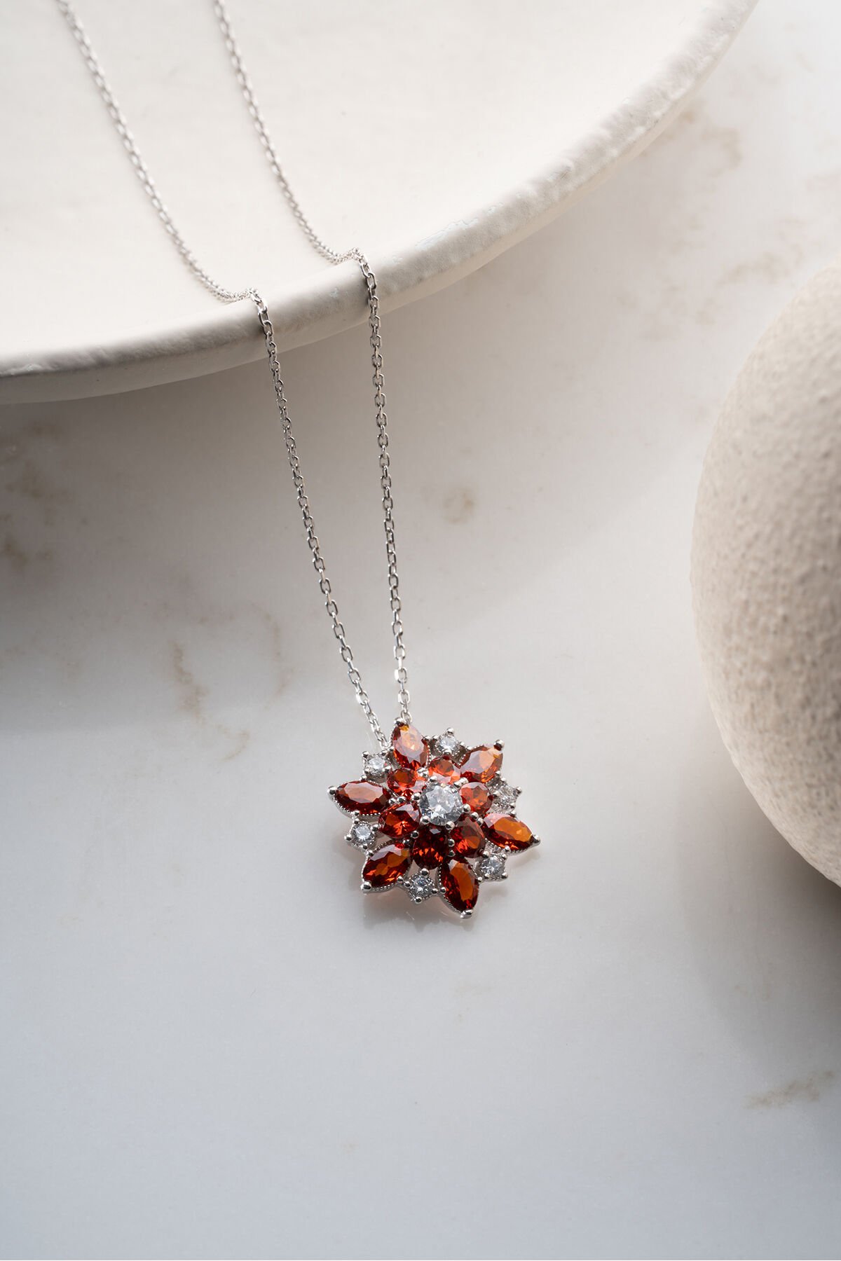 925 Ayar Gümüş Rodyum Kaplama Lotus Çiçeği Kolye