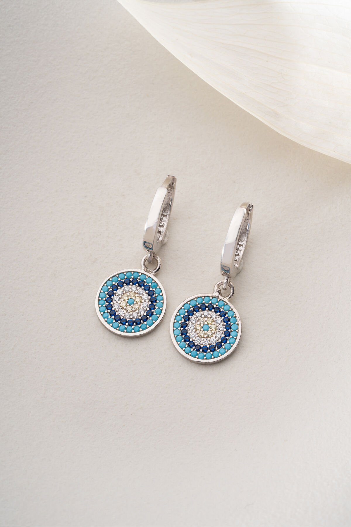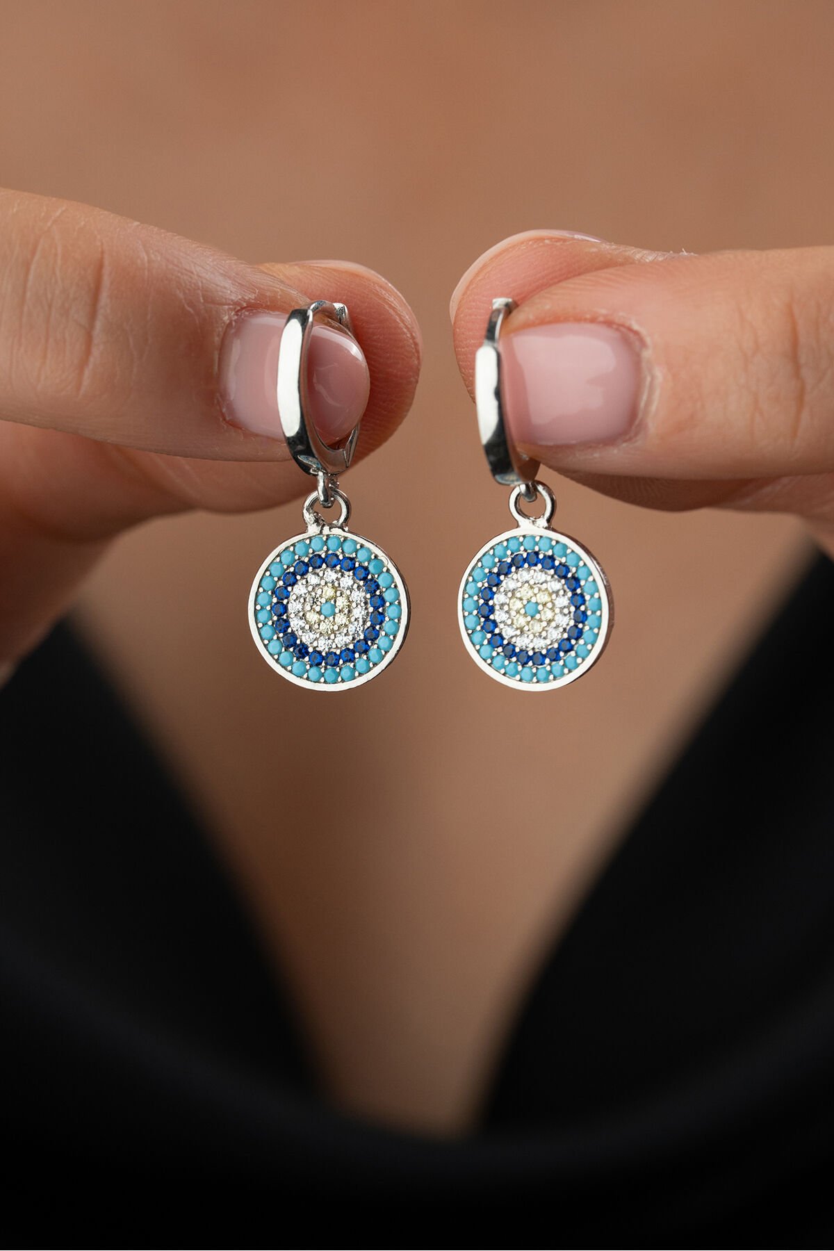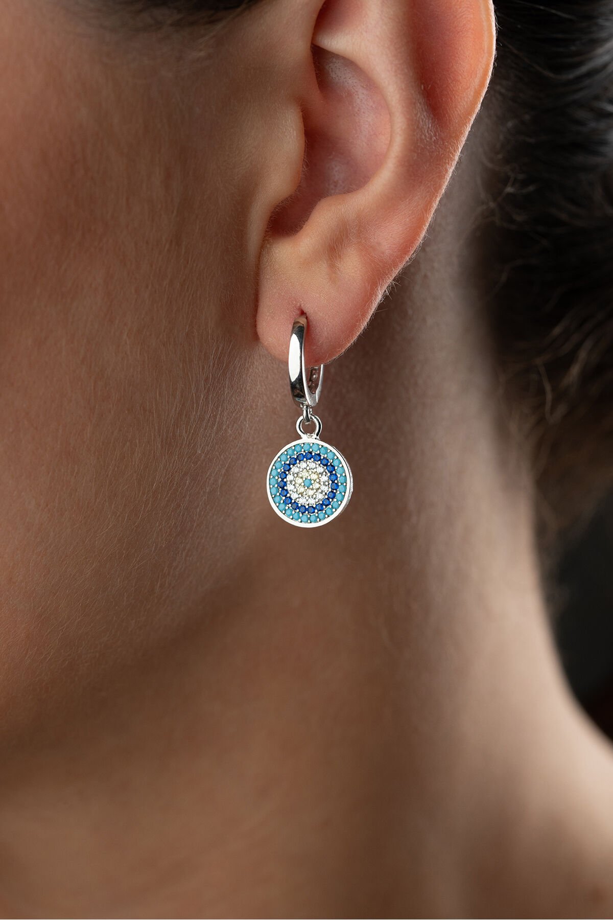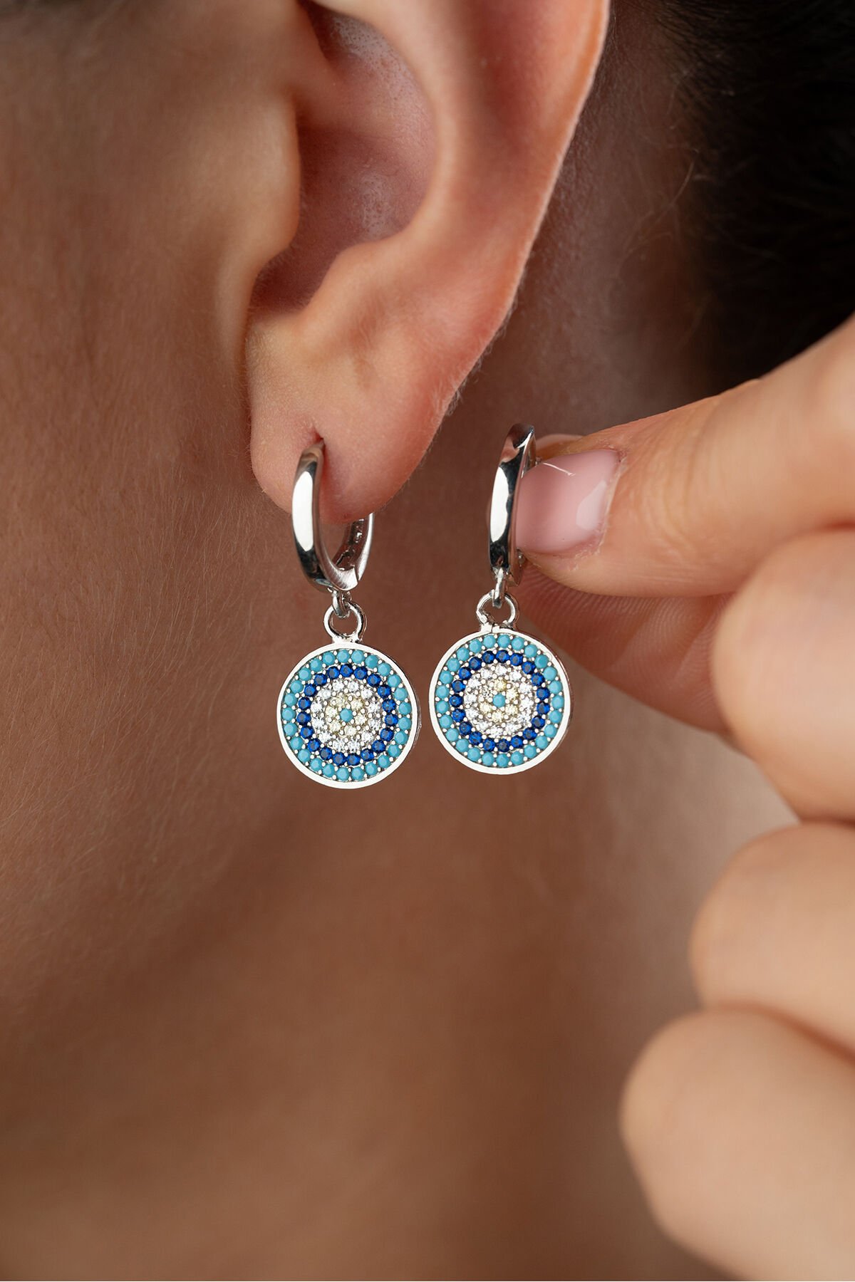 925 Ayar Gümüş Rodyum Kaplama Nazarlı Küpe