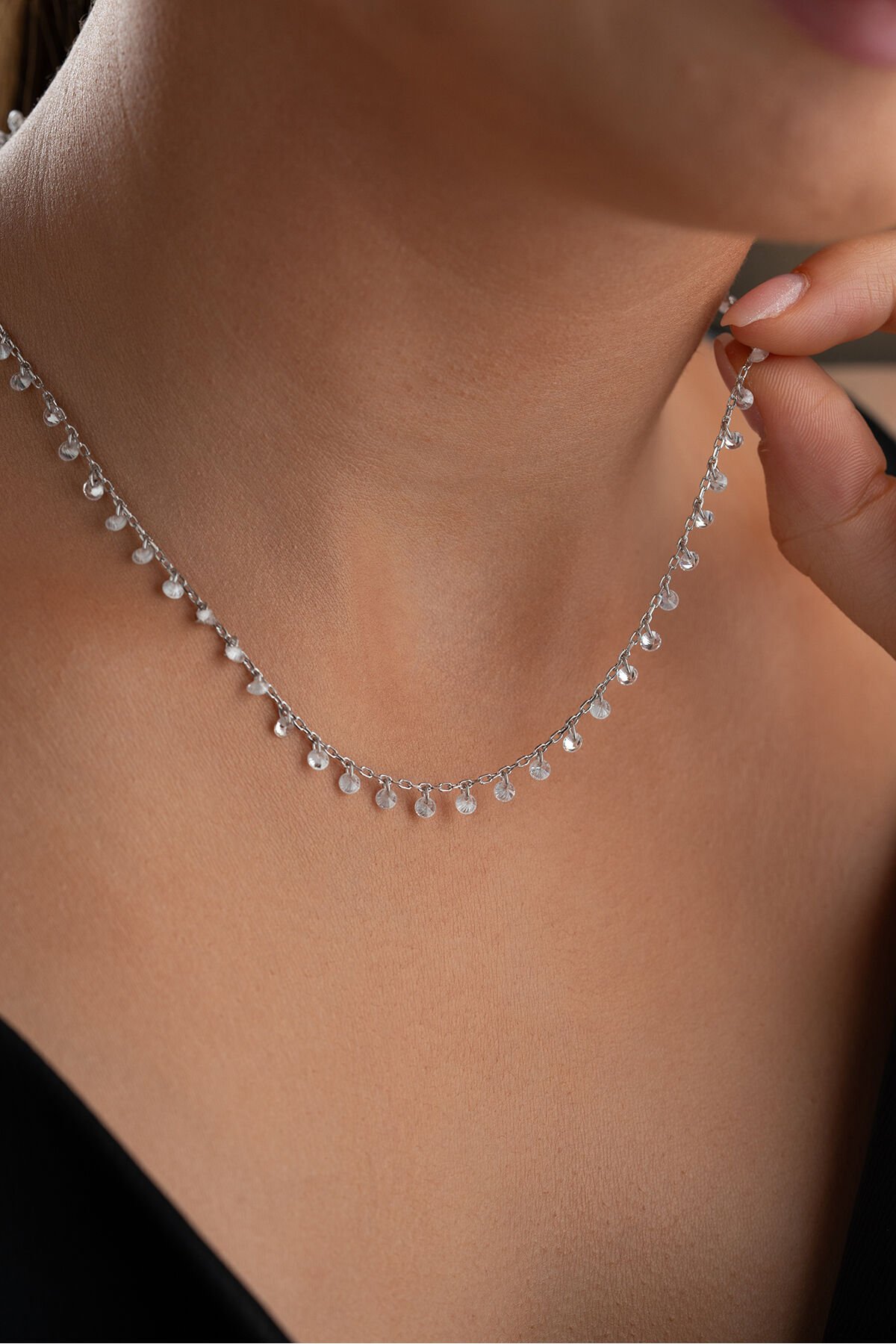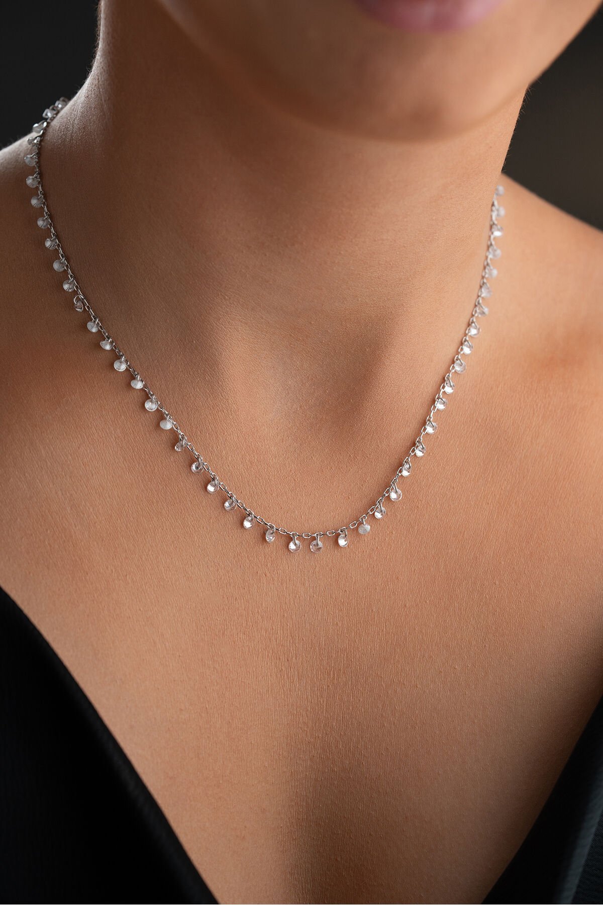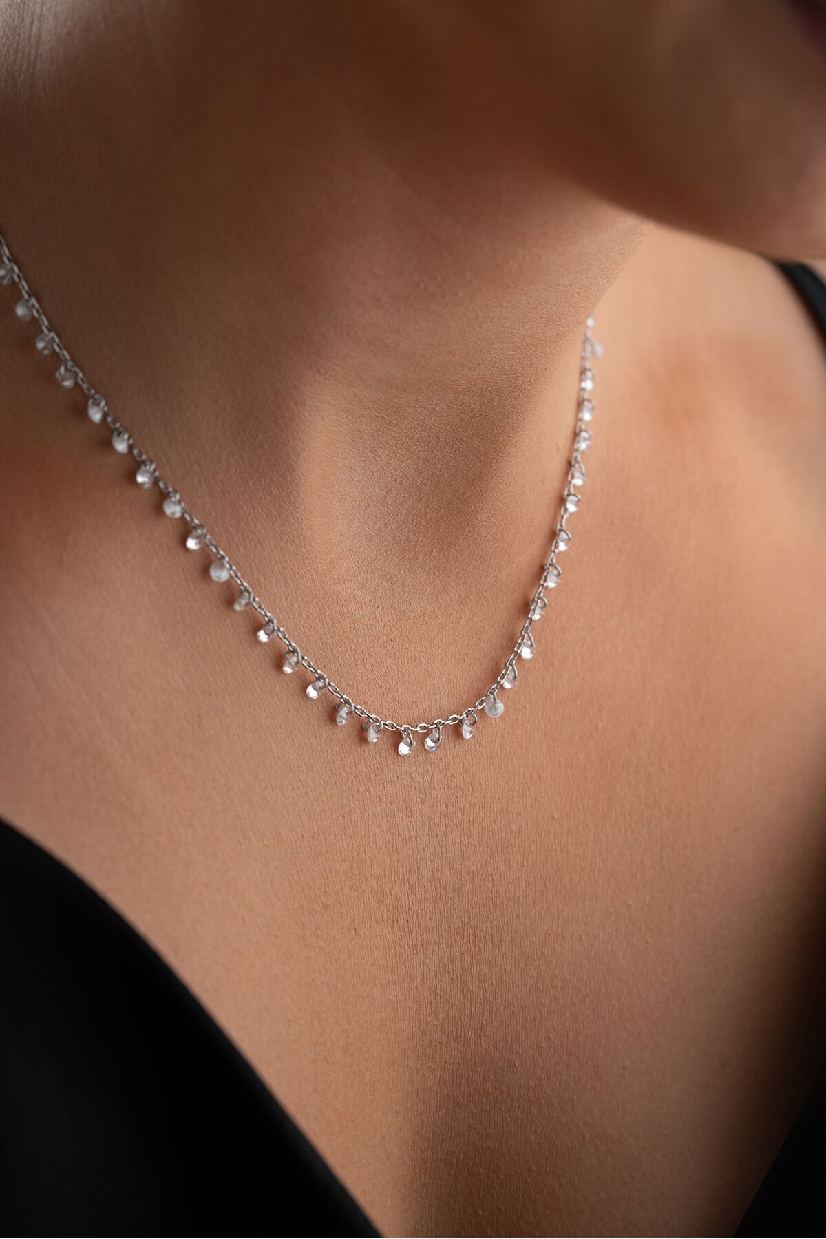925 Ayar Gümüş Rodyum Kaplama Özel Tasarım Taşlı Kolye