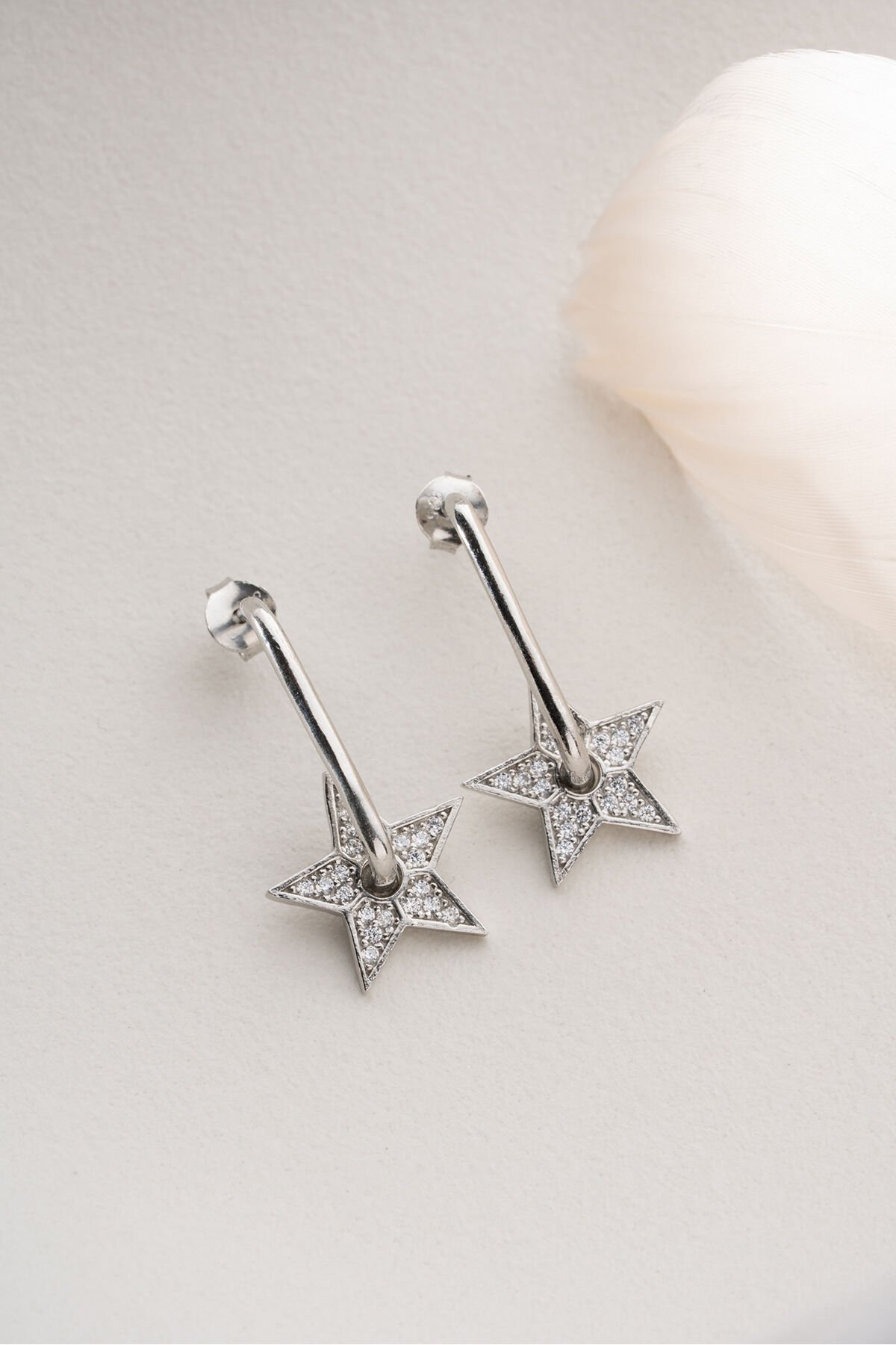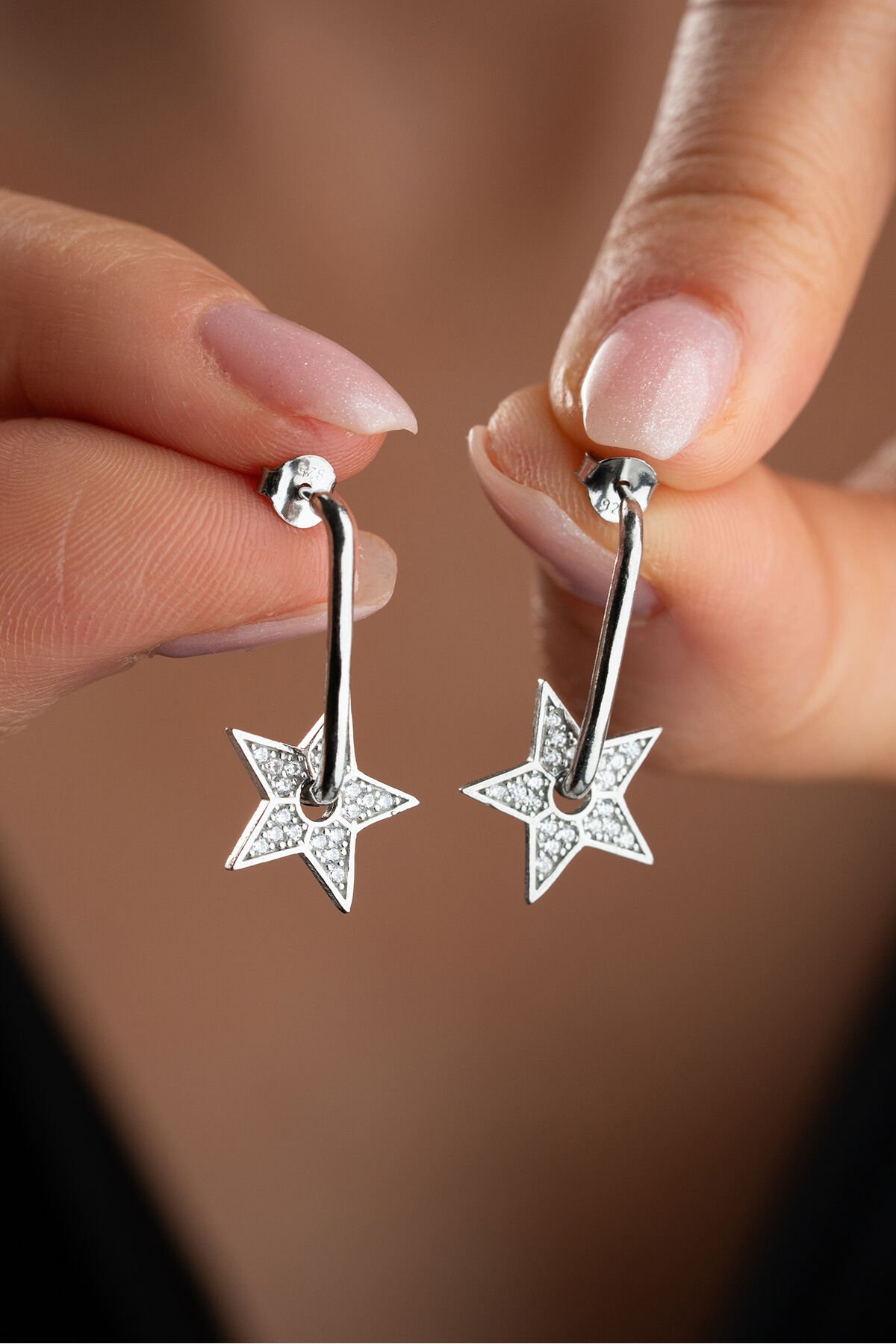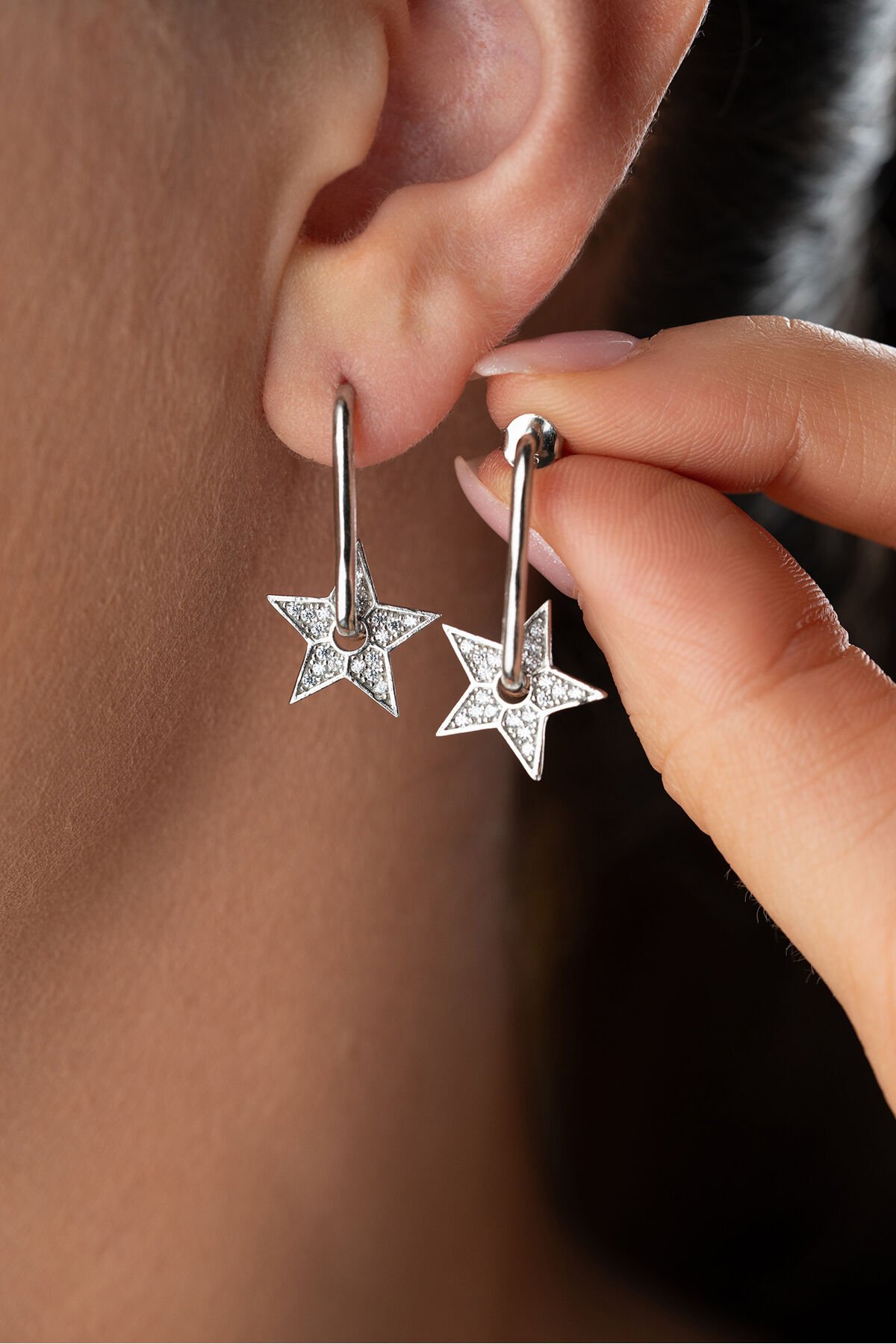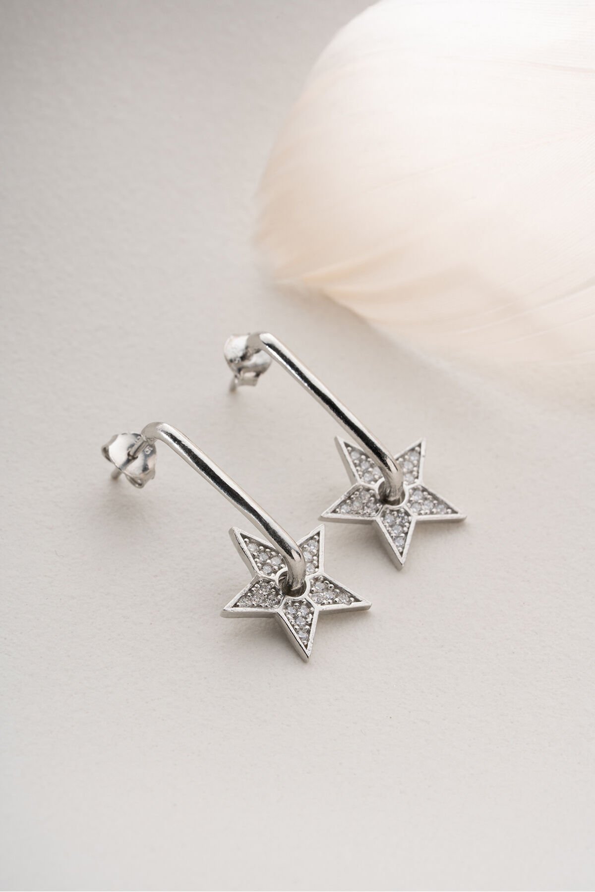 925 Ayar Gümüş Rodyum Kaplama Yıldız Küpe