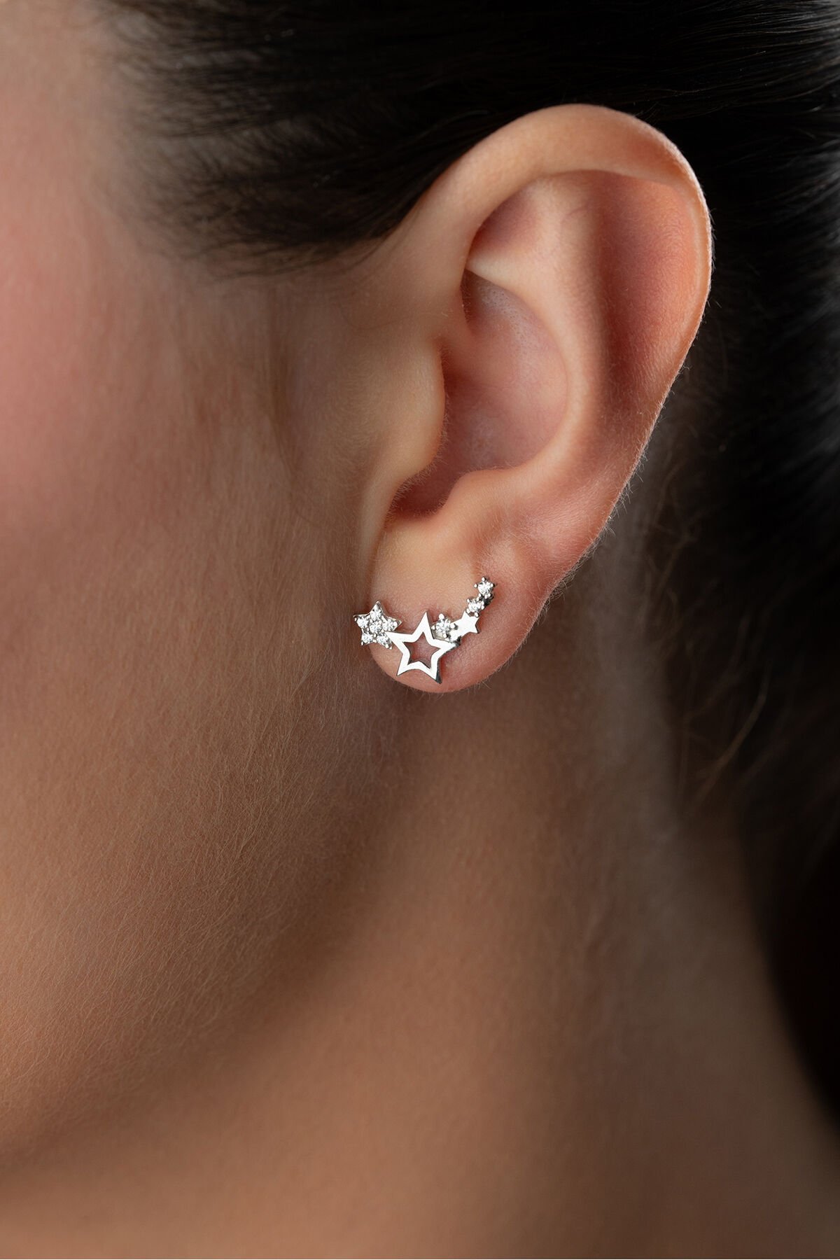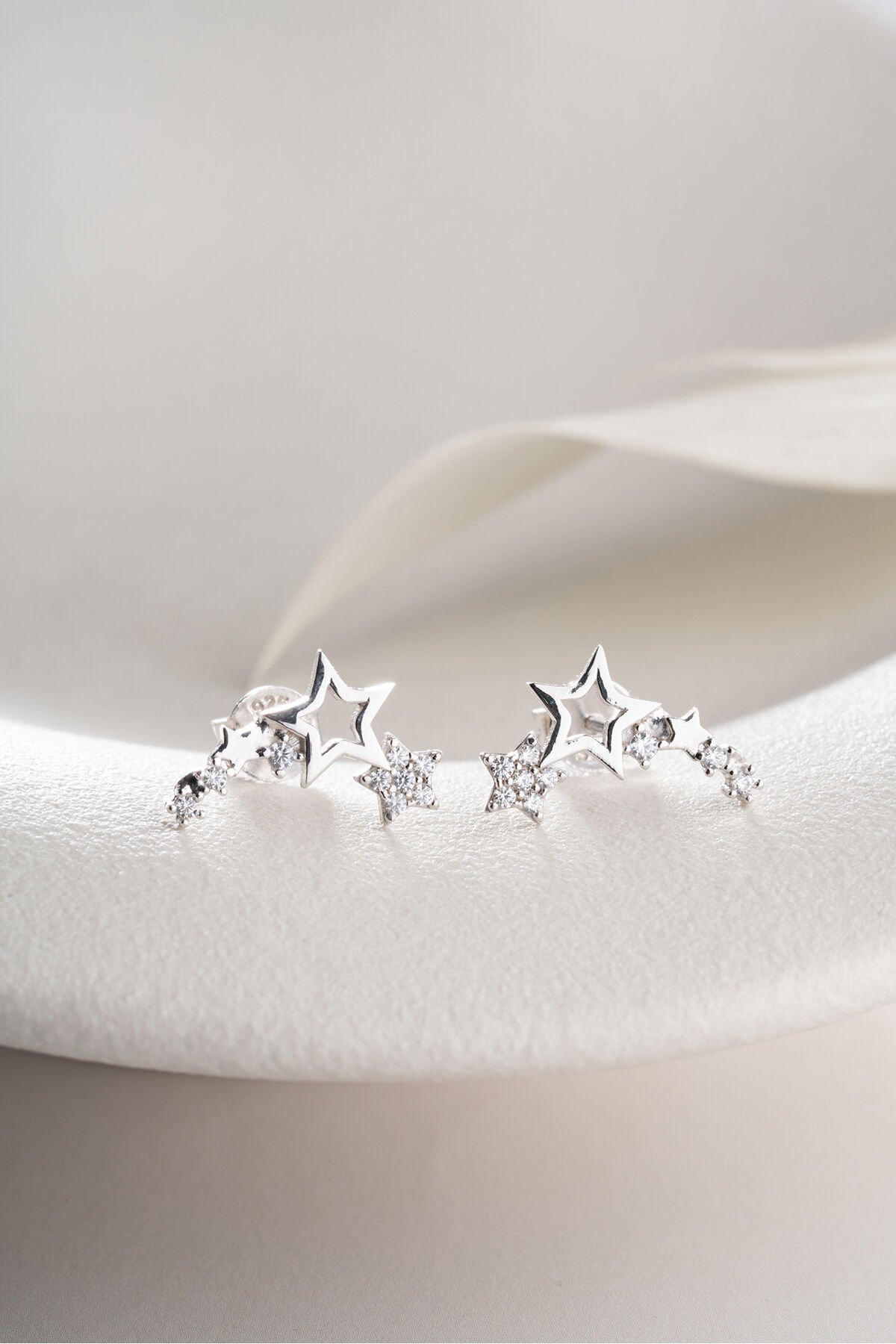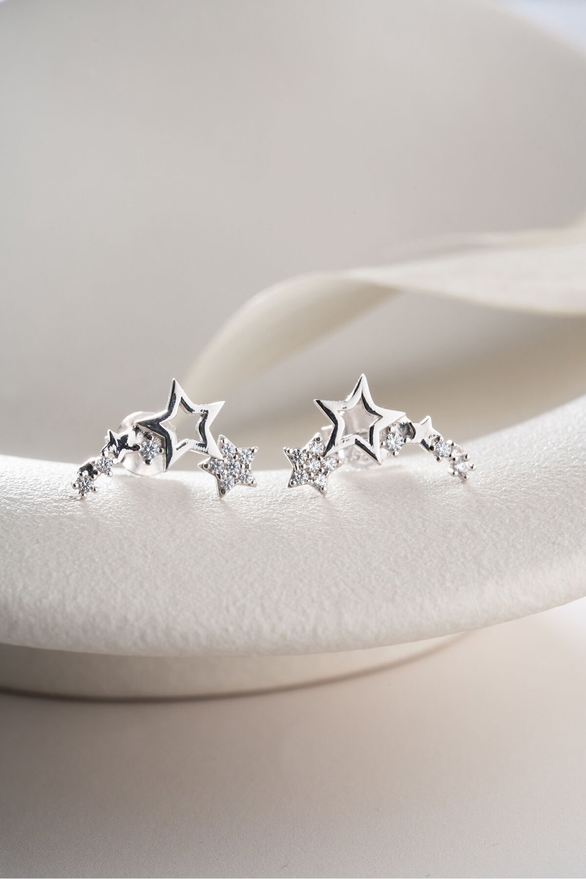 925 Ayar Gümüş Rodyumlu Zirkon Taşlı Kayan Yıldızlar Küpe