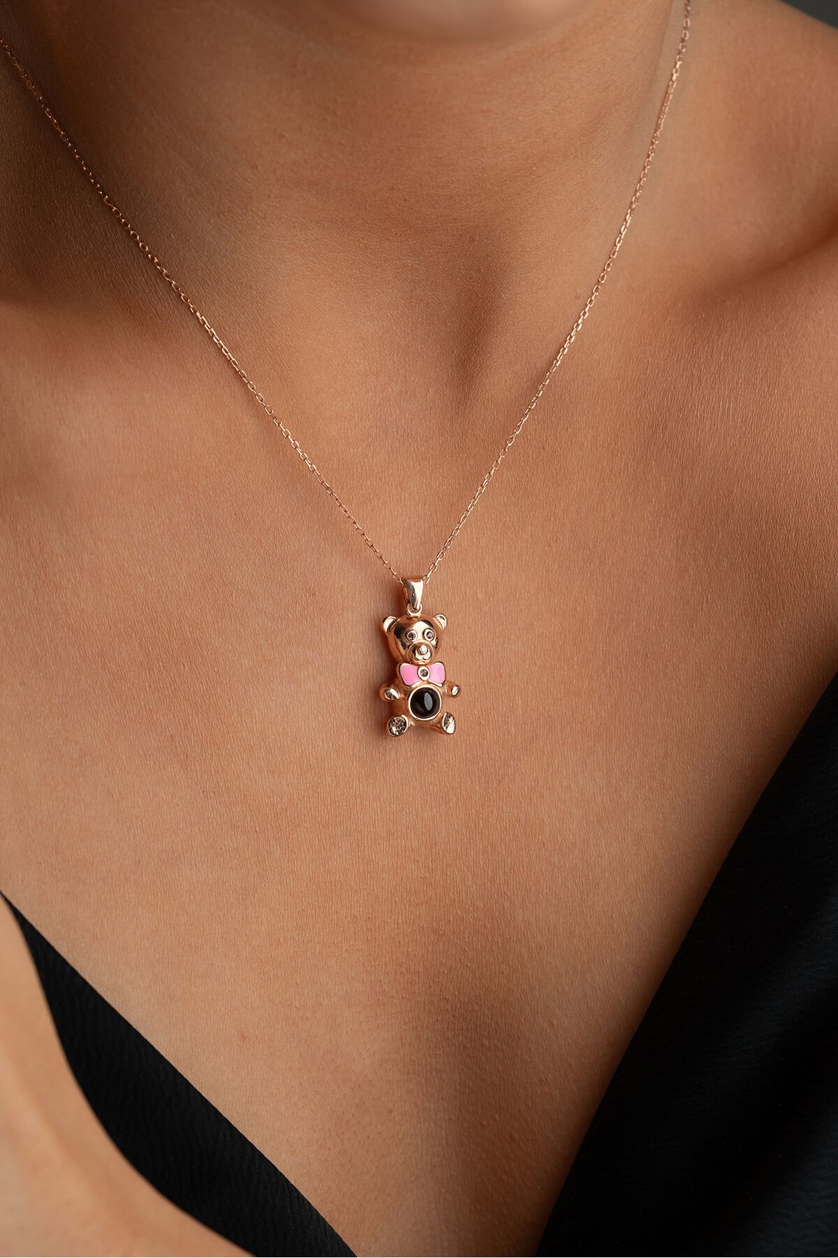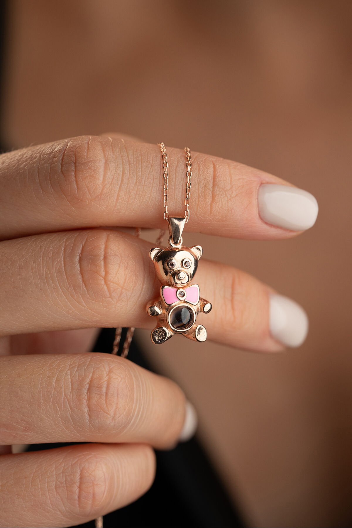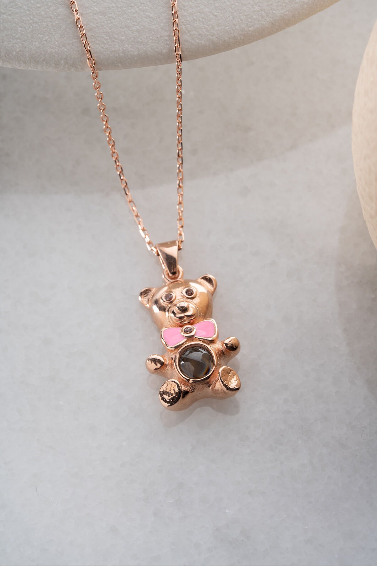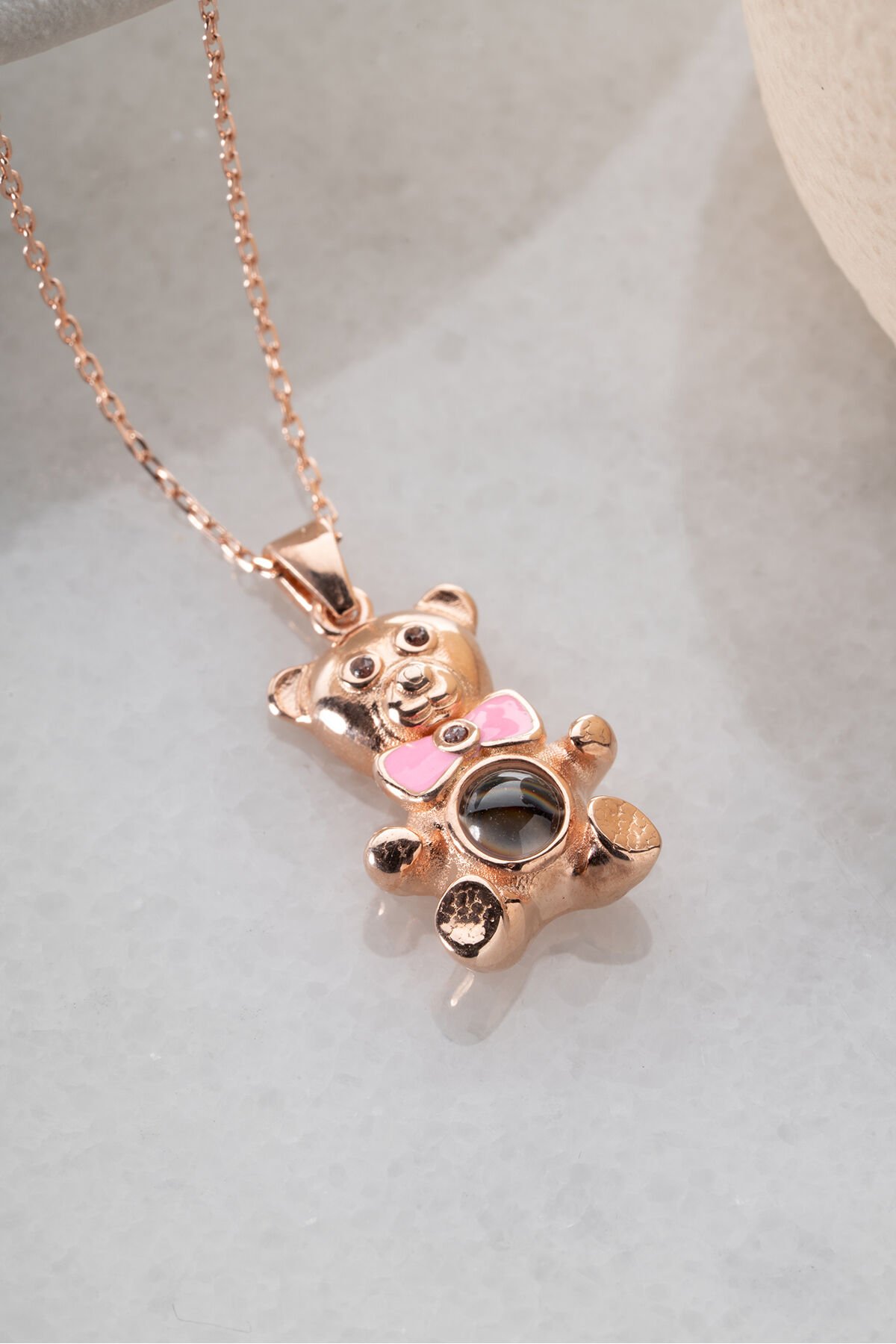 925 Ayar Gümüş Rose 100 Dilde Seni Seviyorum Ayıcık Kolye