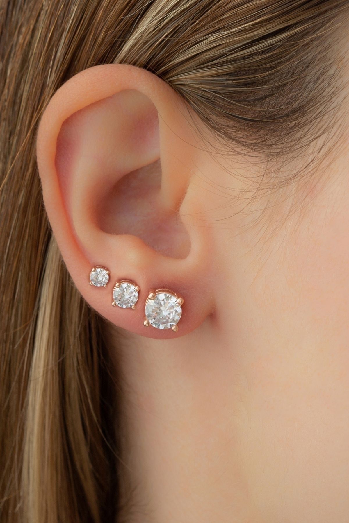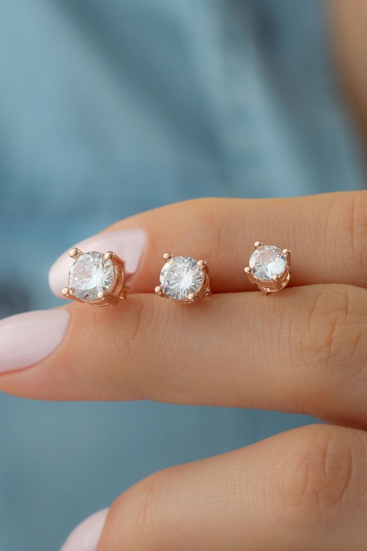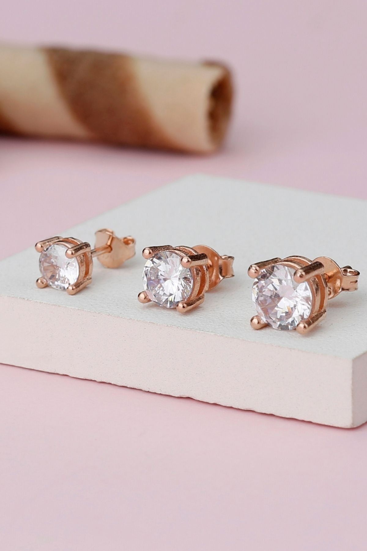 925 Ayar Gümüş Rose 3'lü Tektaş Set Küpe