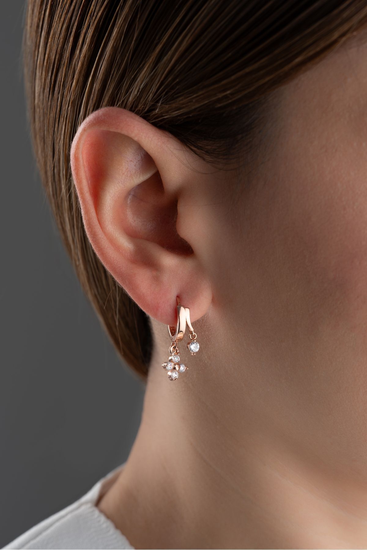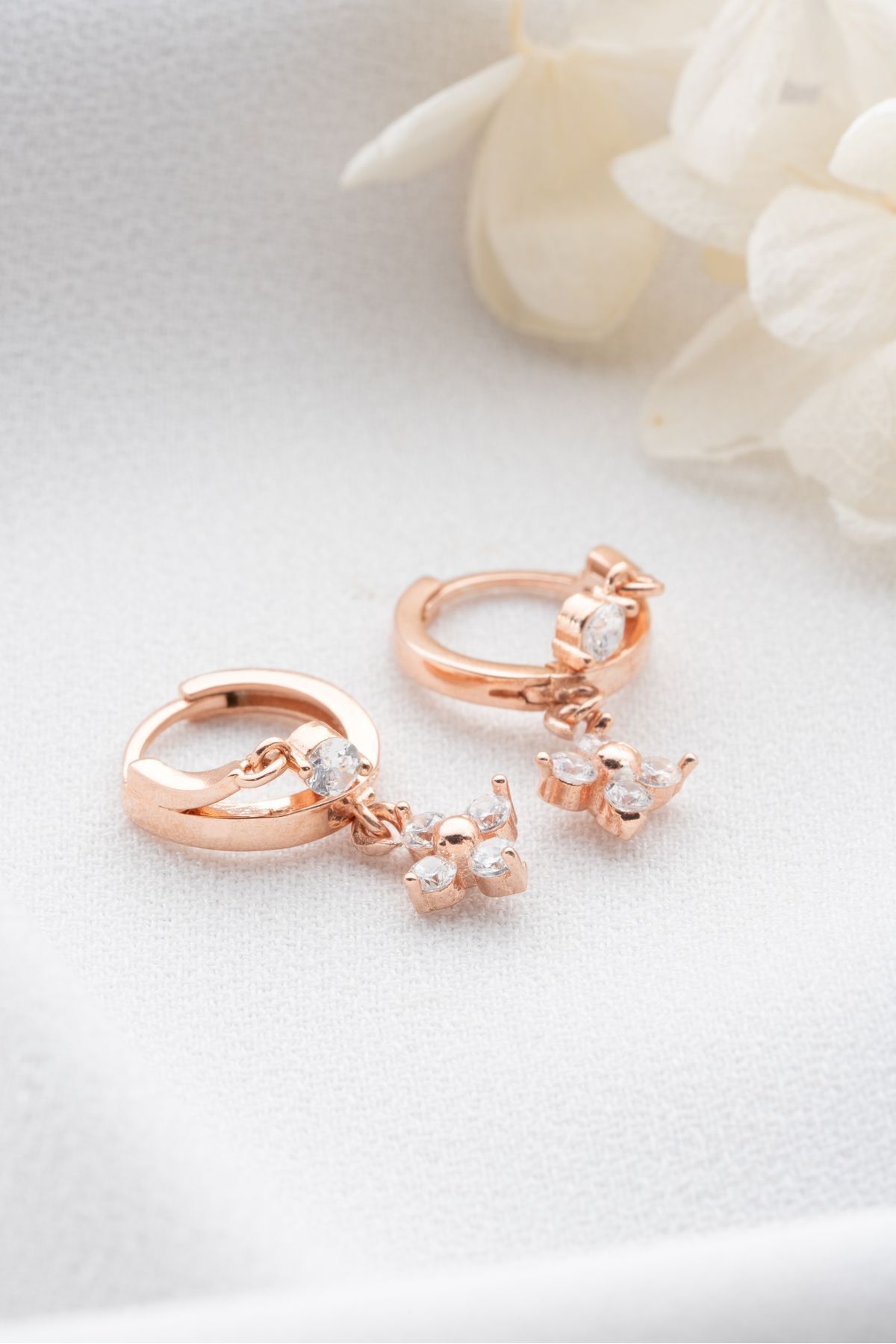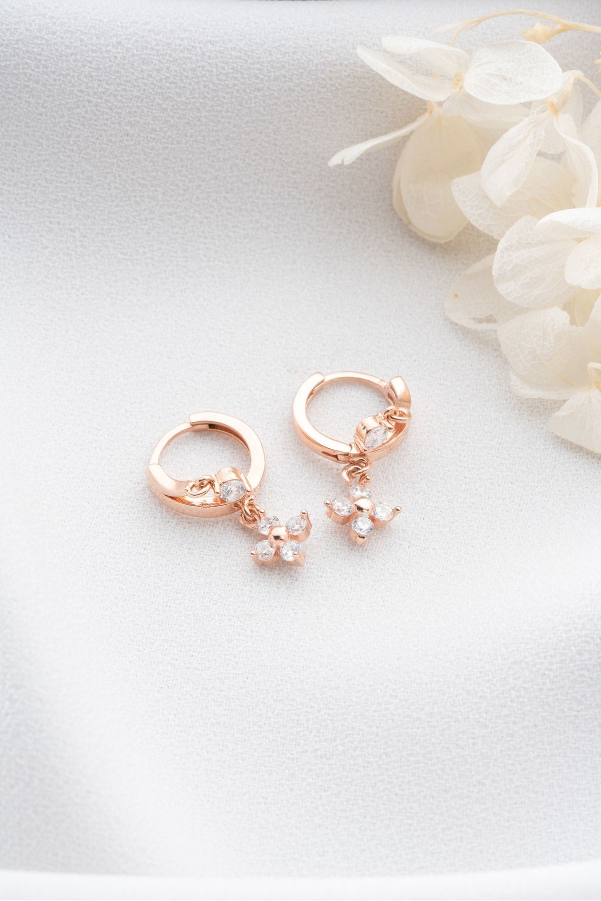 925 Ayar Gümüş Rose Çift Çiçek Küpe