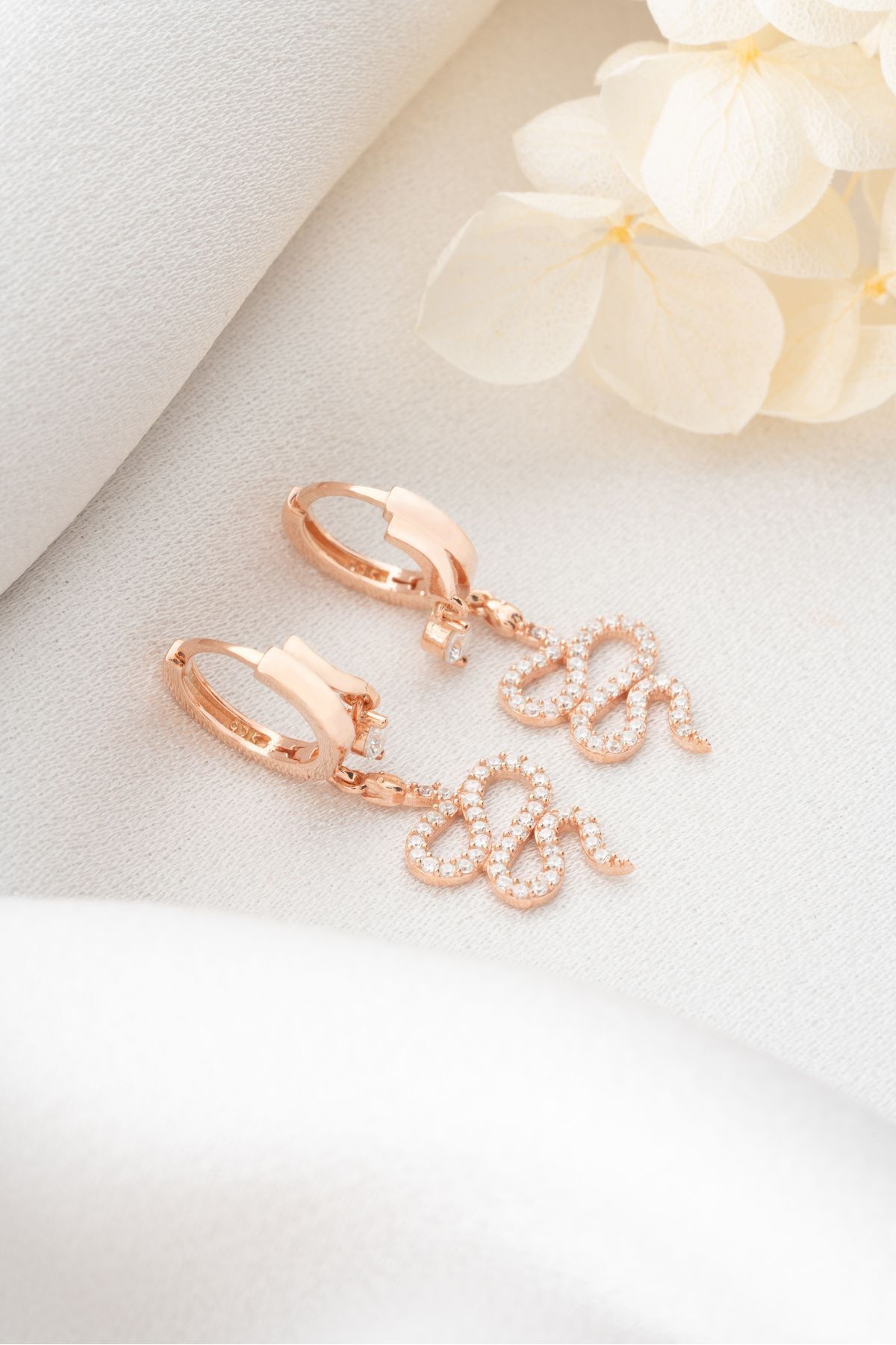 925 Ayar Gümüş Rose Çift Taşlı Yılan Küpe
