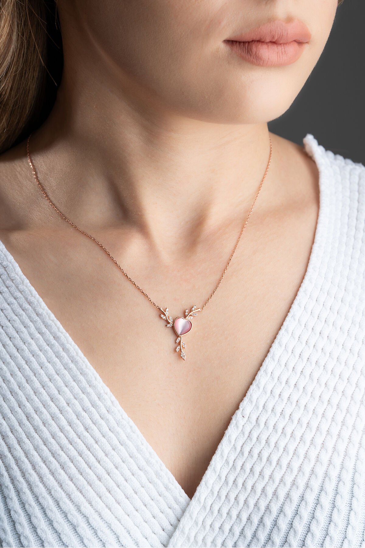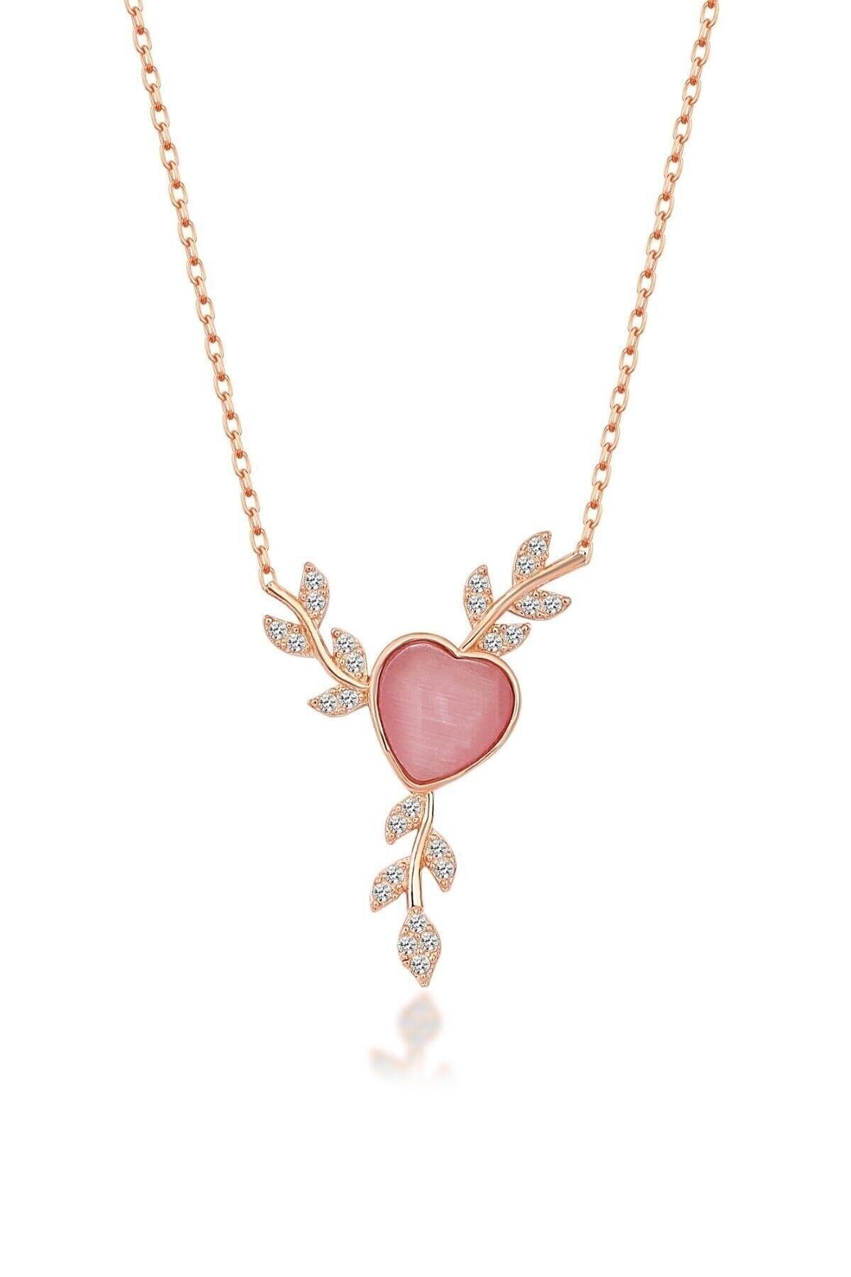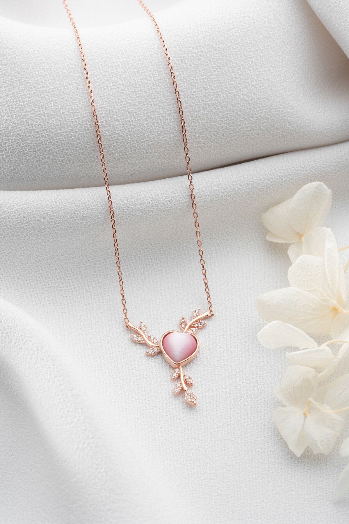 925 Ayar Gümüş Rose Daldaki Kalp Kolye