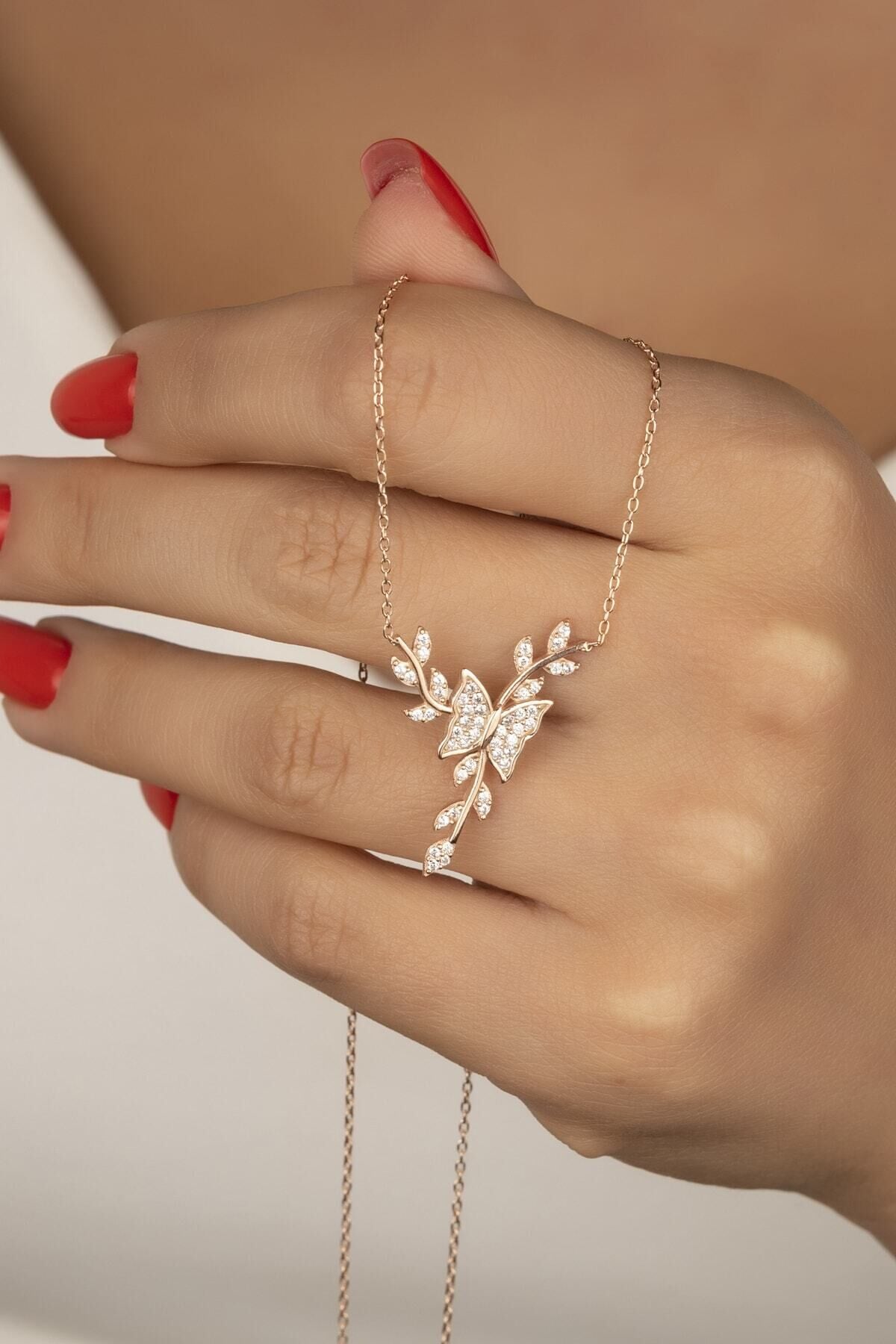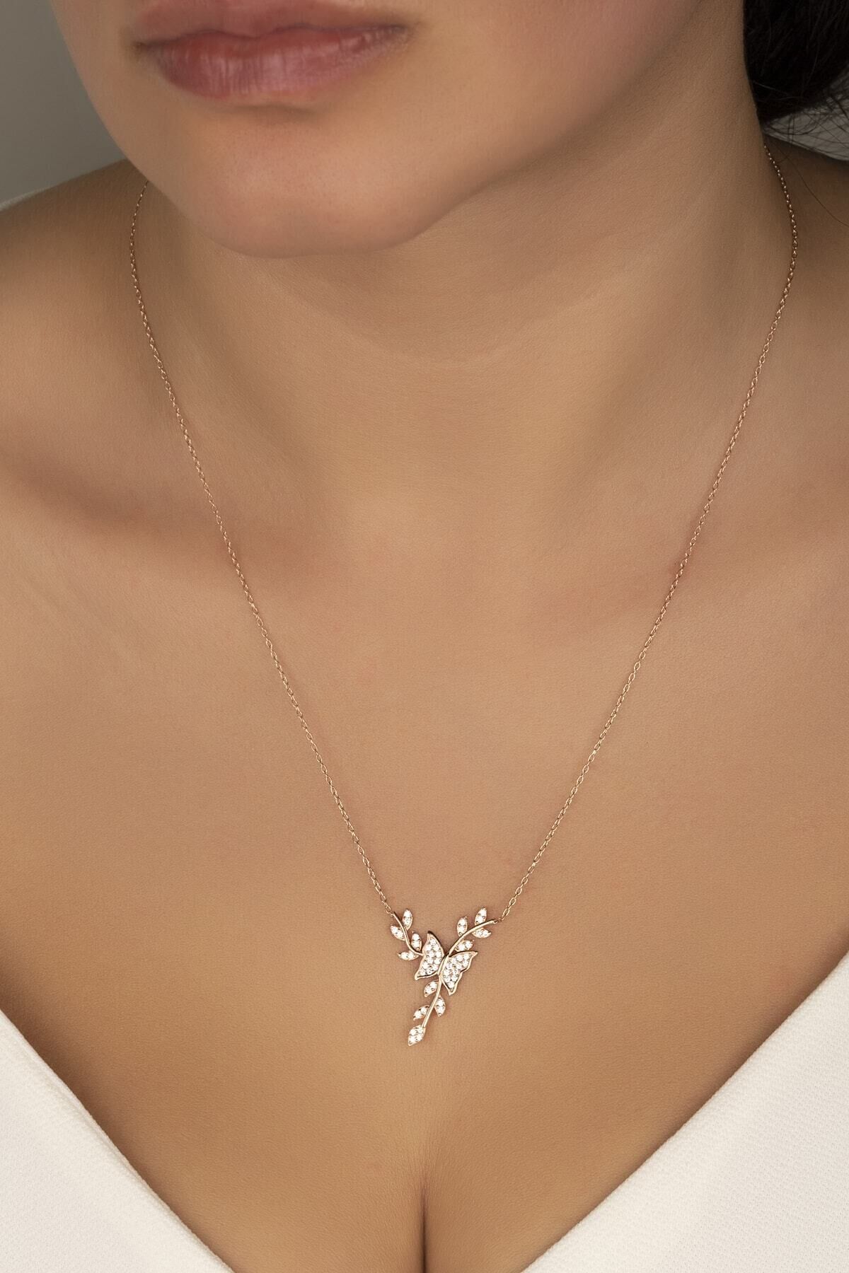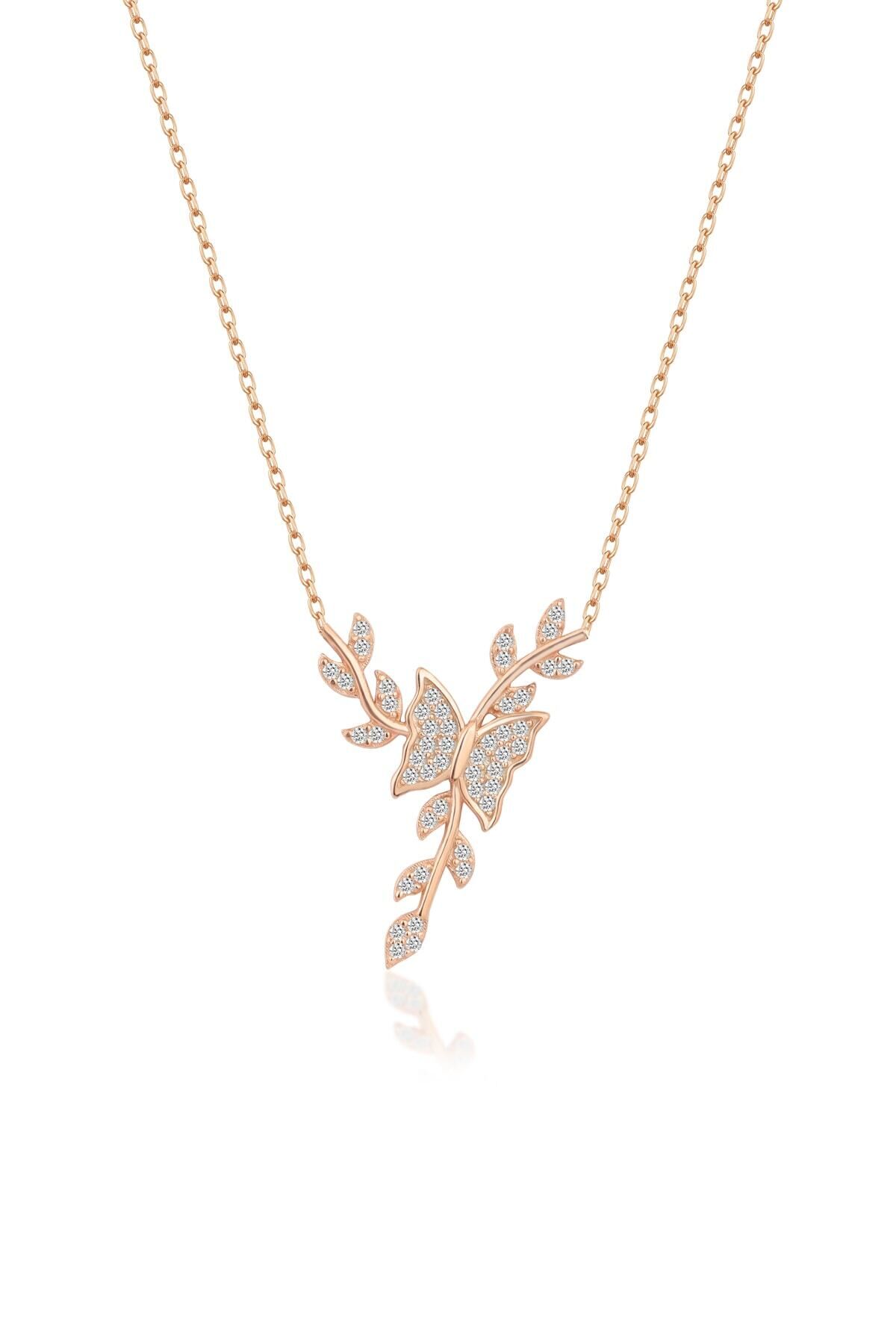 925 Ayar Gümüş Rose Daldaki Kelebek Kolye