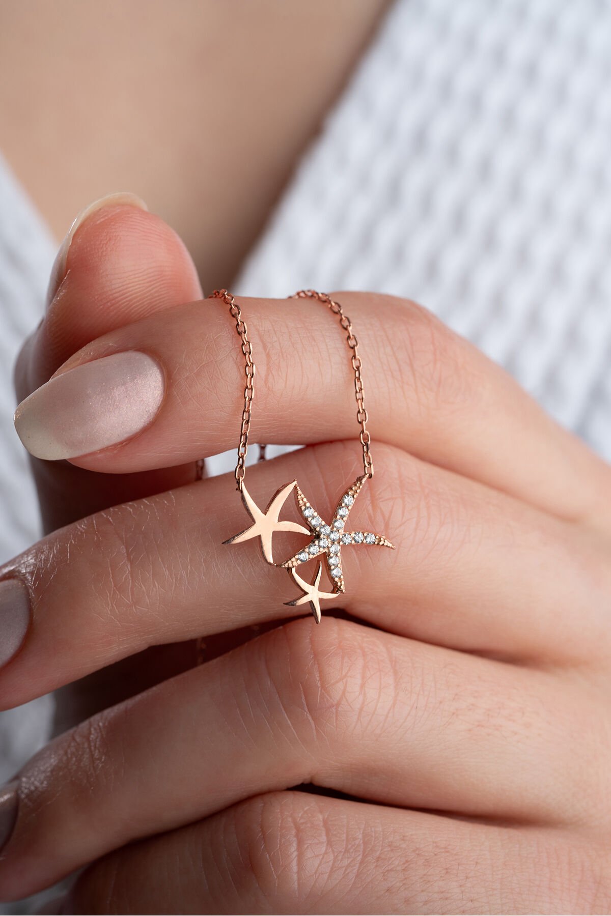 925 Ayar Gümüş Rose Deniz Yıldızı Kolye