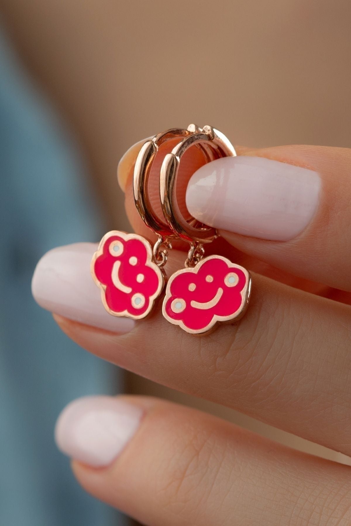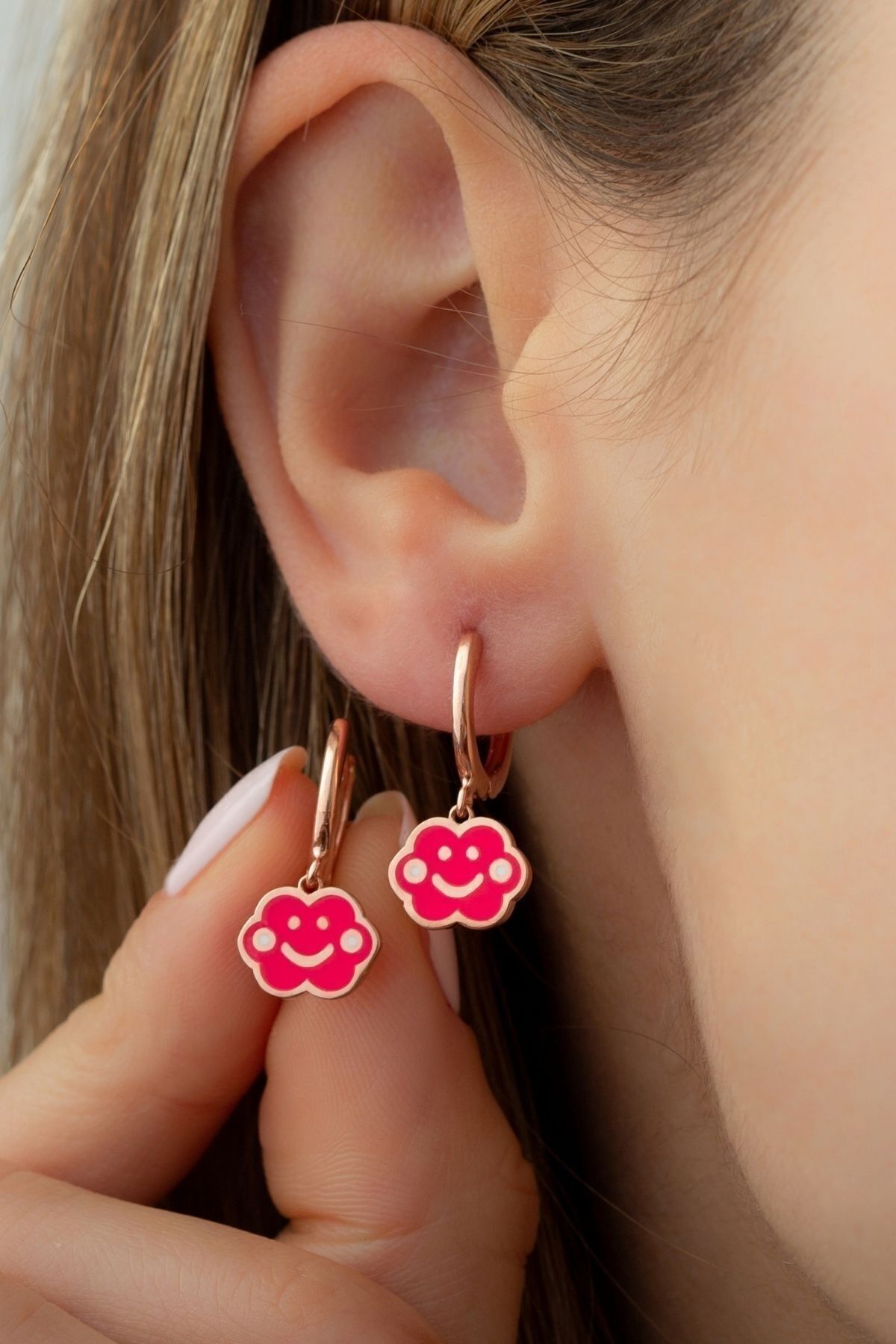 925 Ayar Gümüş Rose Fuşya Bulut Küpe