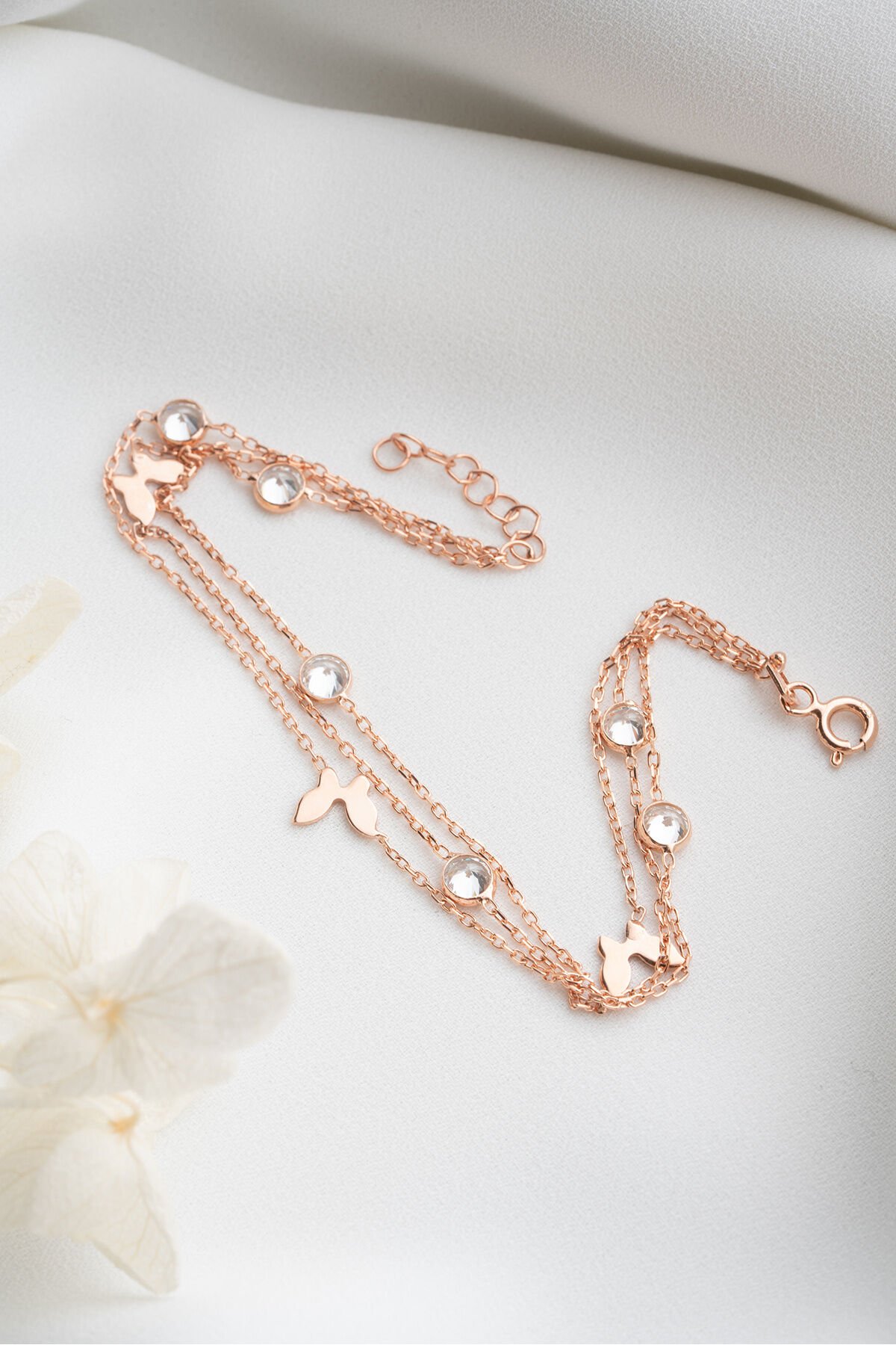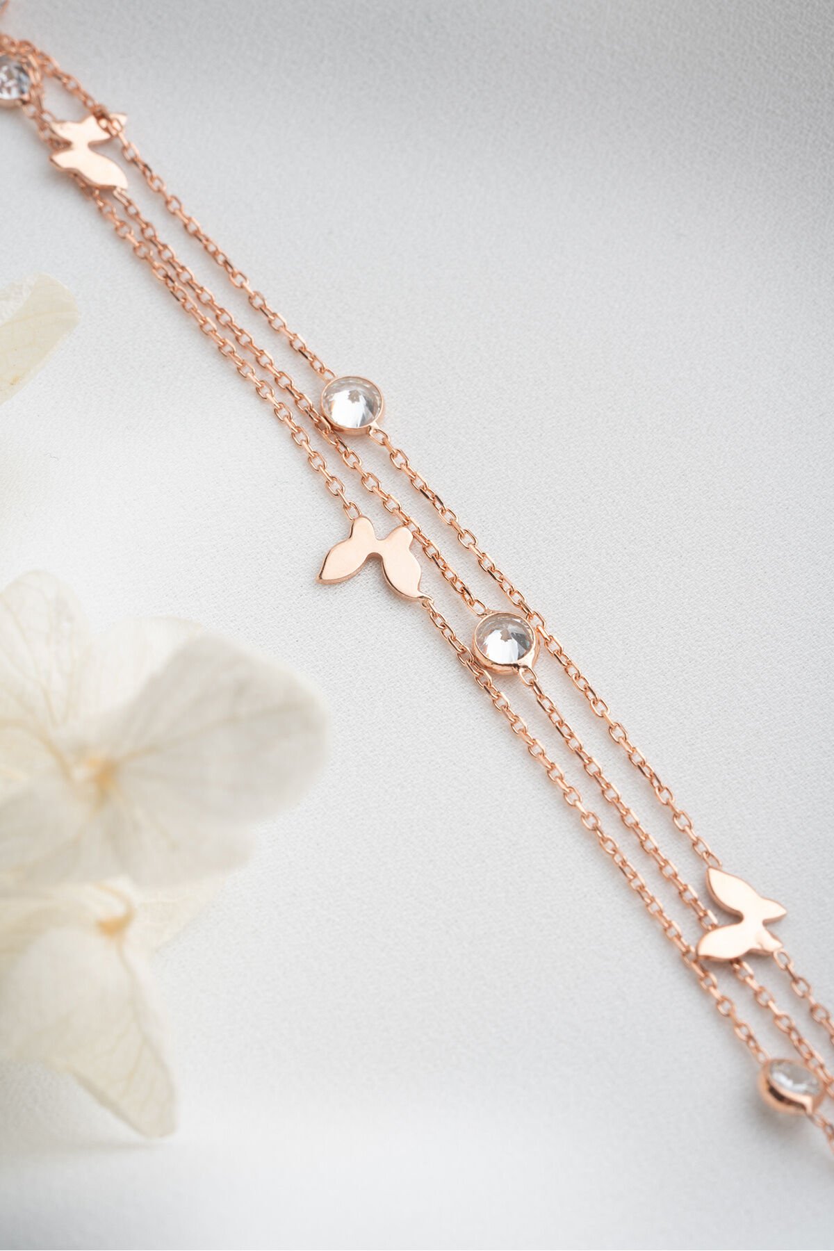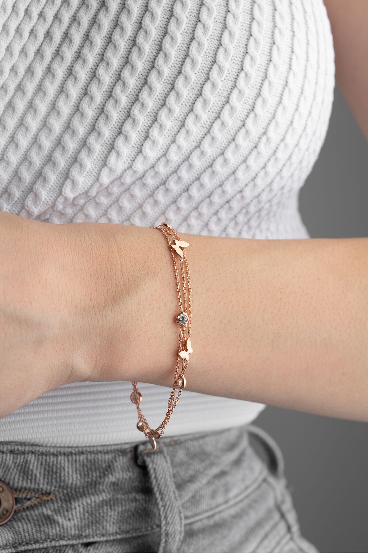 925 Ayar Gümüş Rose Kelebek Figürlü Trend Bileklik