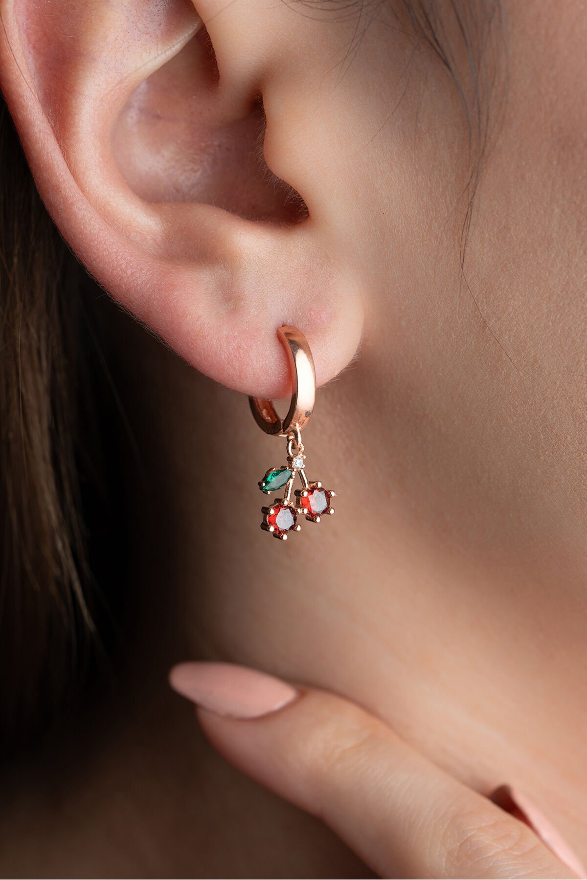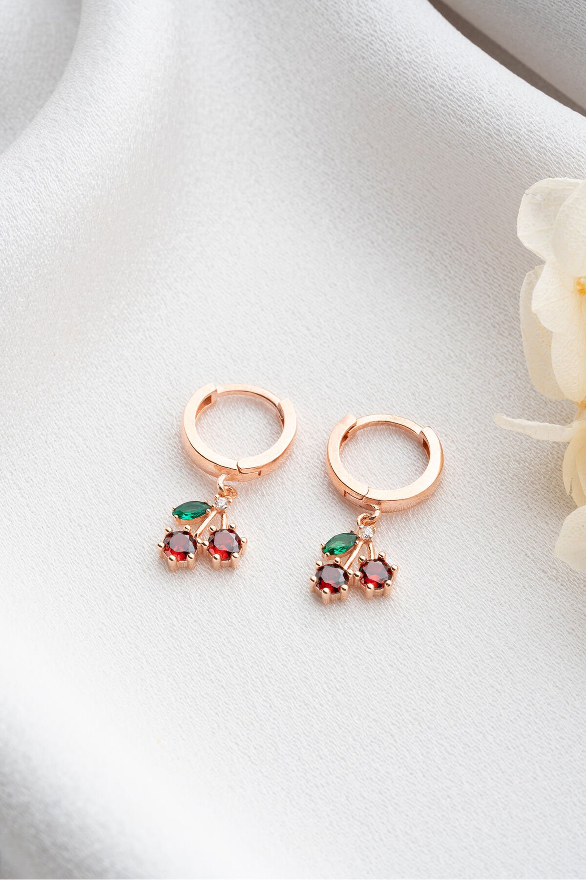 925 ayar gümüş malzeme ile üretilmiş, uzun ömürlü ve kaliteli bir aksesuar deneyimi sunar; Zirkon taş kullanımı sayesinde göz alıcı bir parlaklık ve estetik bir görünüm sağlar; Gümüş rose kiraz küpe, zarif tasarımı ile her türlü kıyafetle uyum sağlayarak şıklığınızı tamamlar;