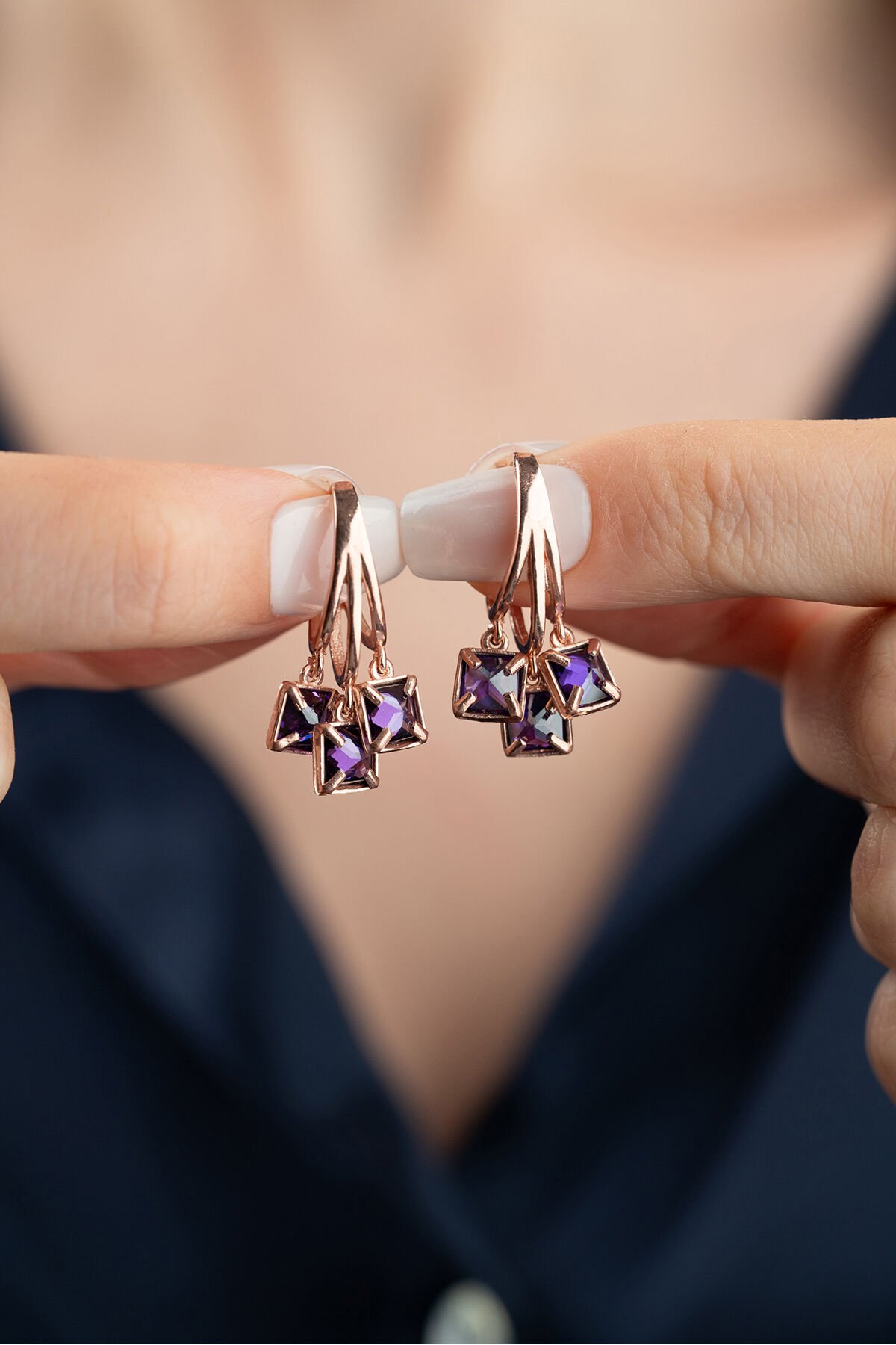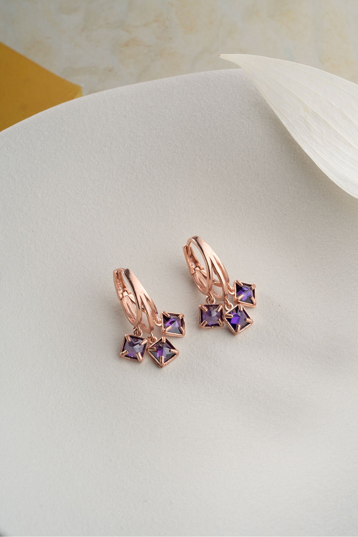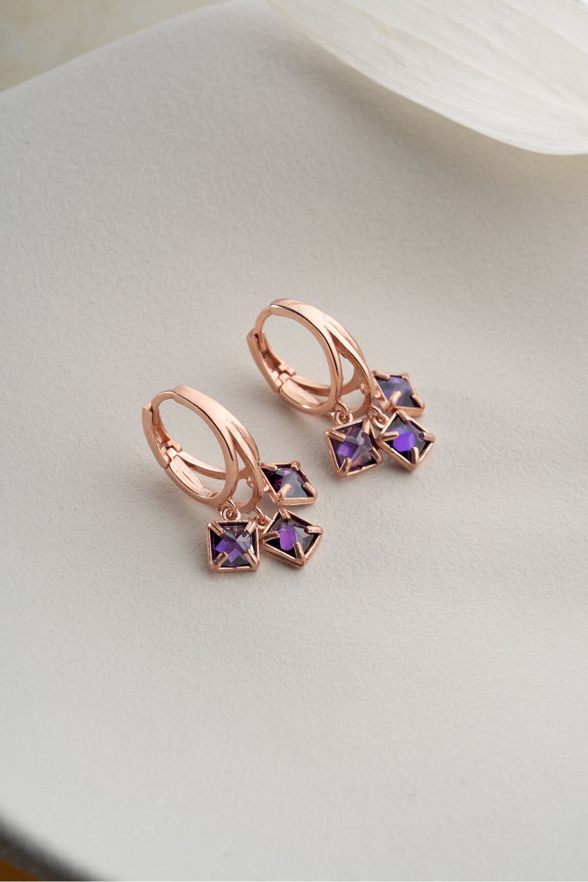 925 Ayar Gümüş Rose Mor Taşlı Küpe