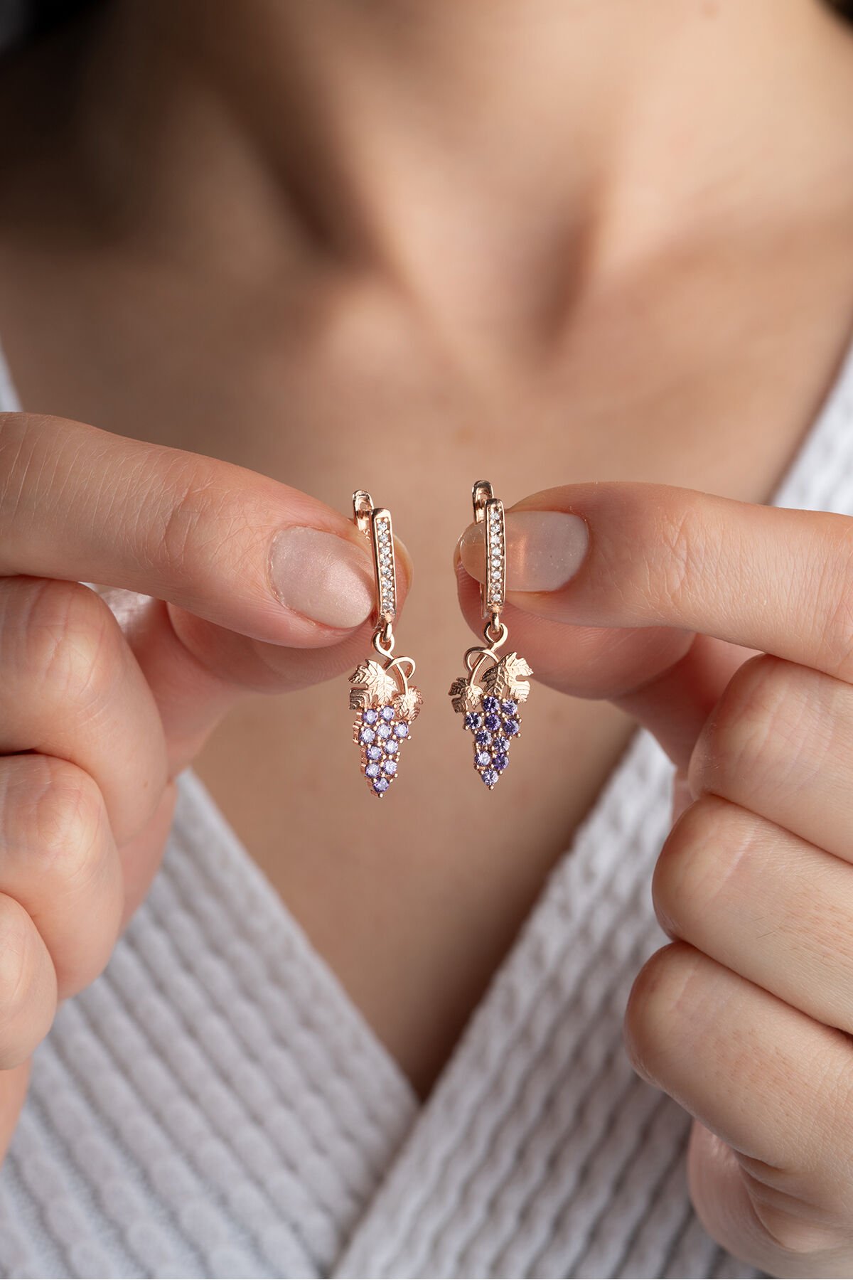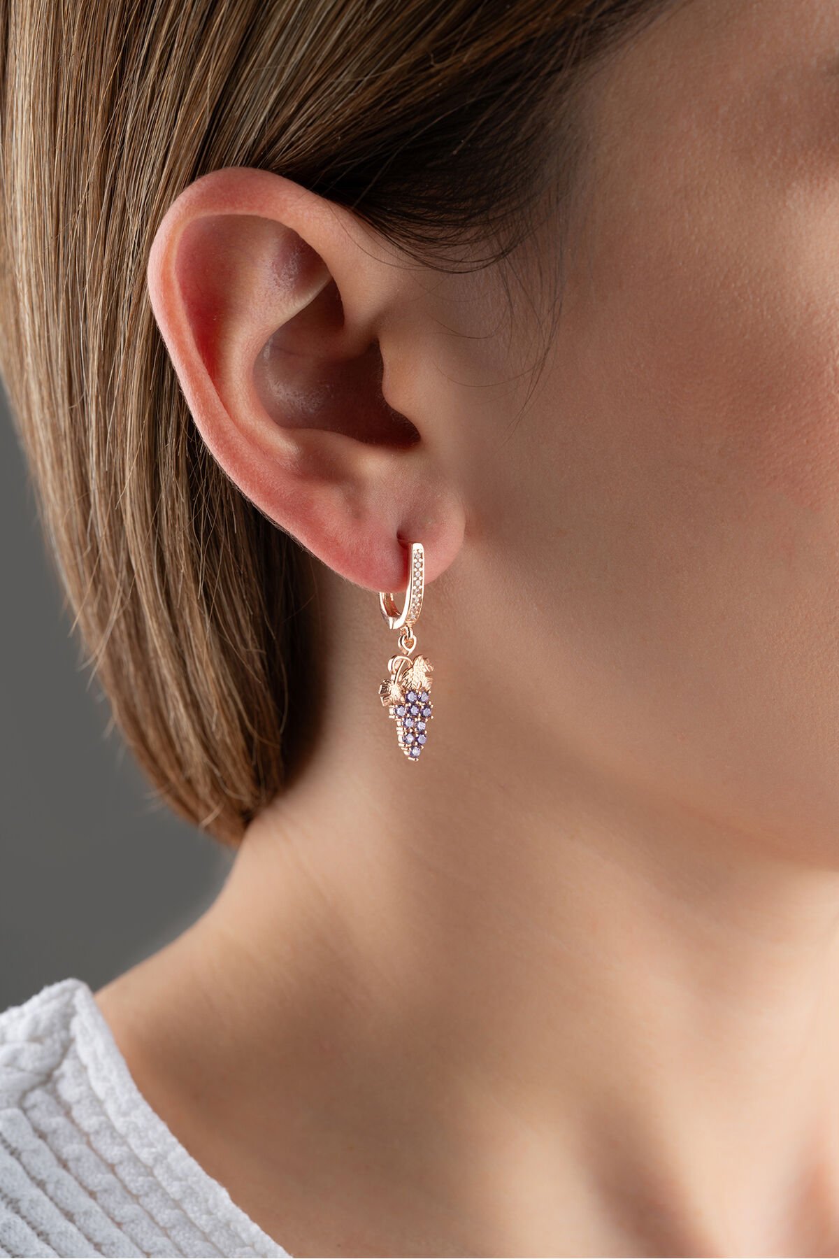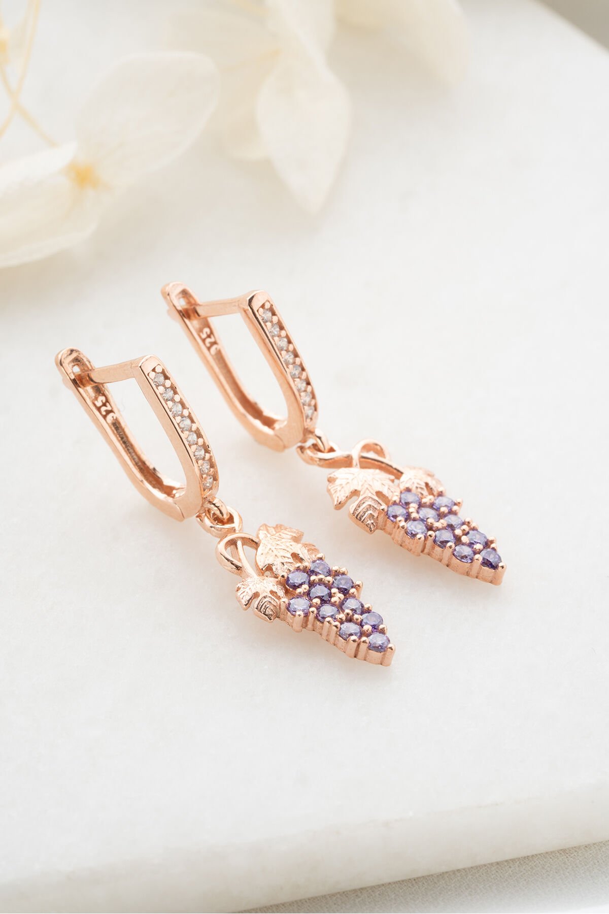 925 Ayar Gümüş Rose Sallantılı Üzüm Küpe