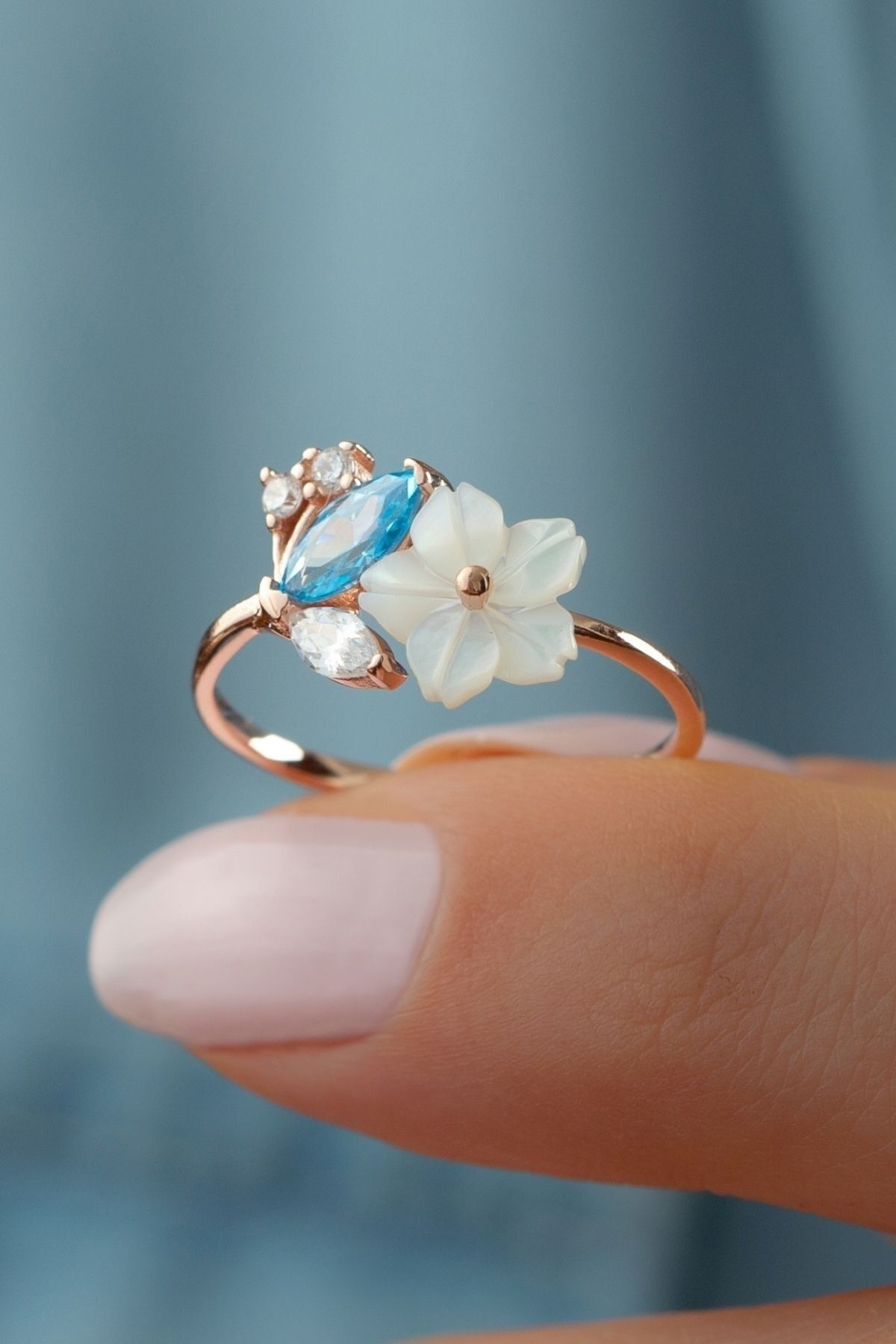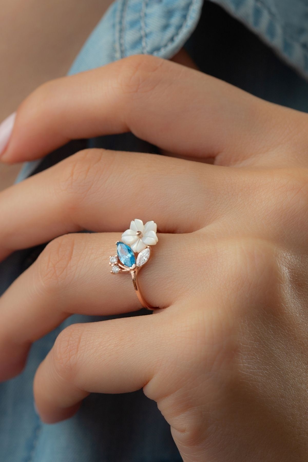 925 Ayar Gümüş Rose Sedefli Çiçek Yüzük