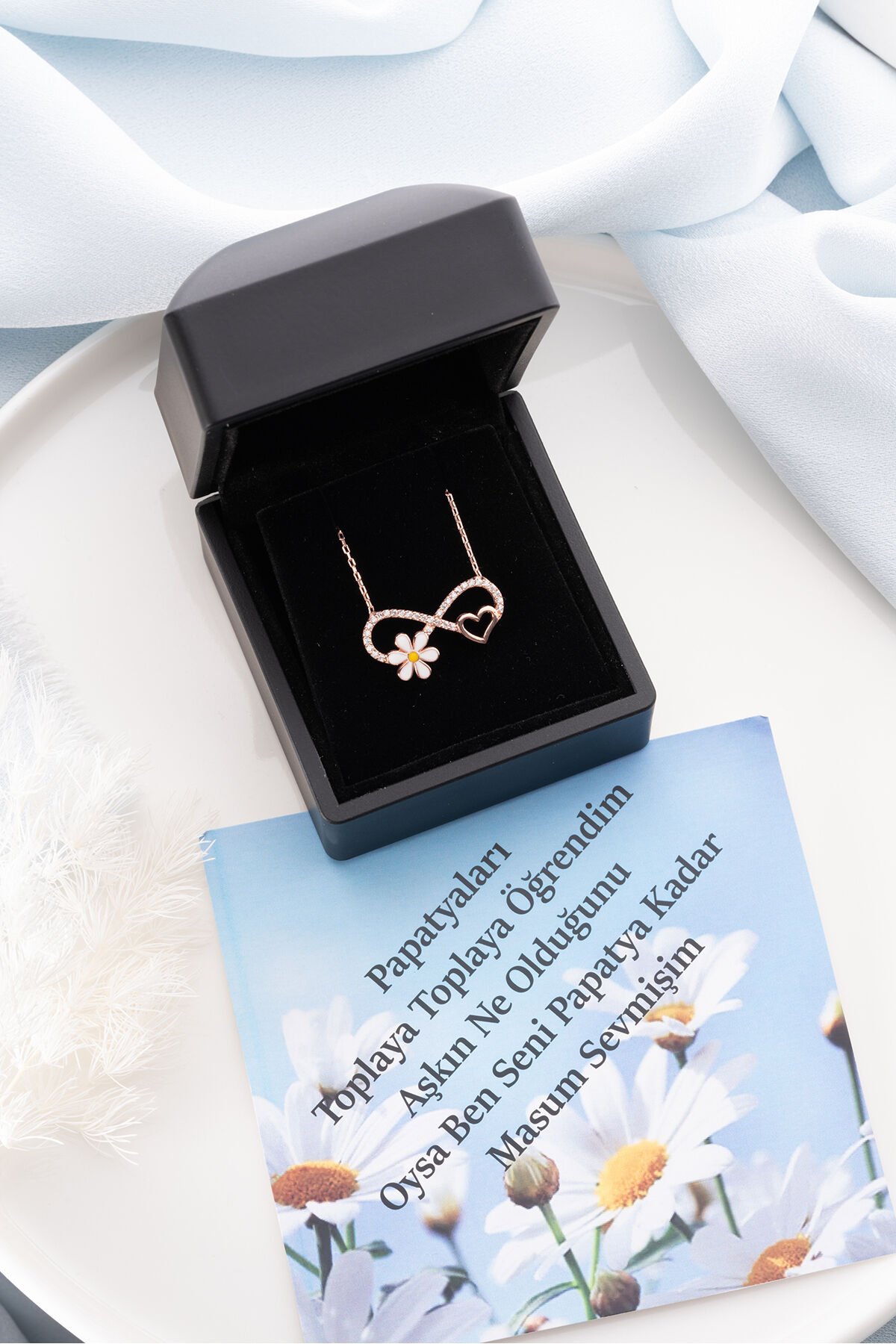 925 Ayar Gümüş Rose Sonsuzlu Papatya Kolye