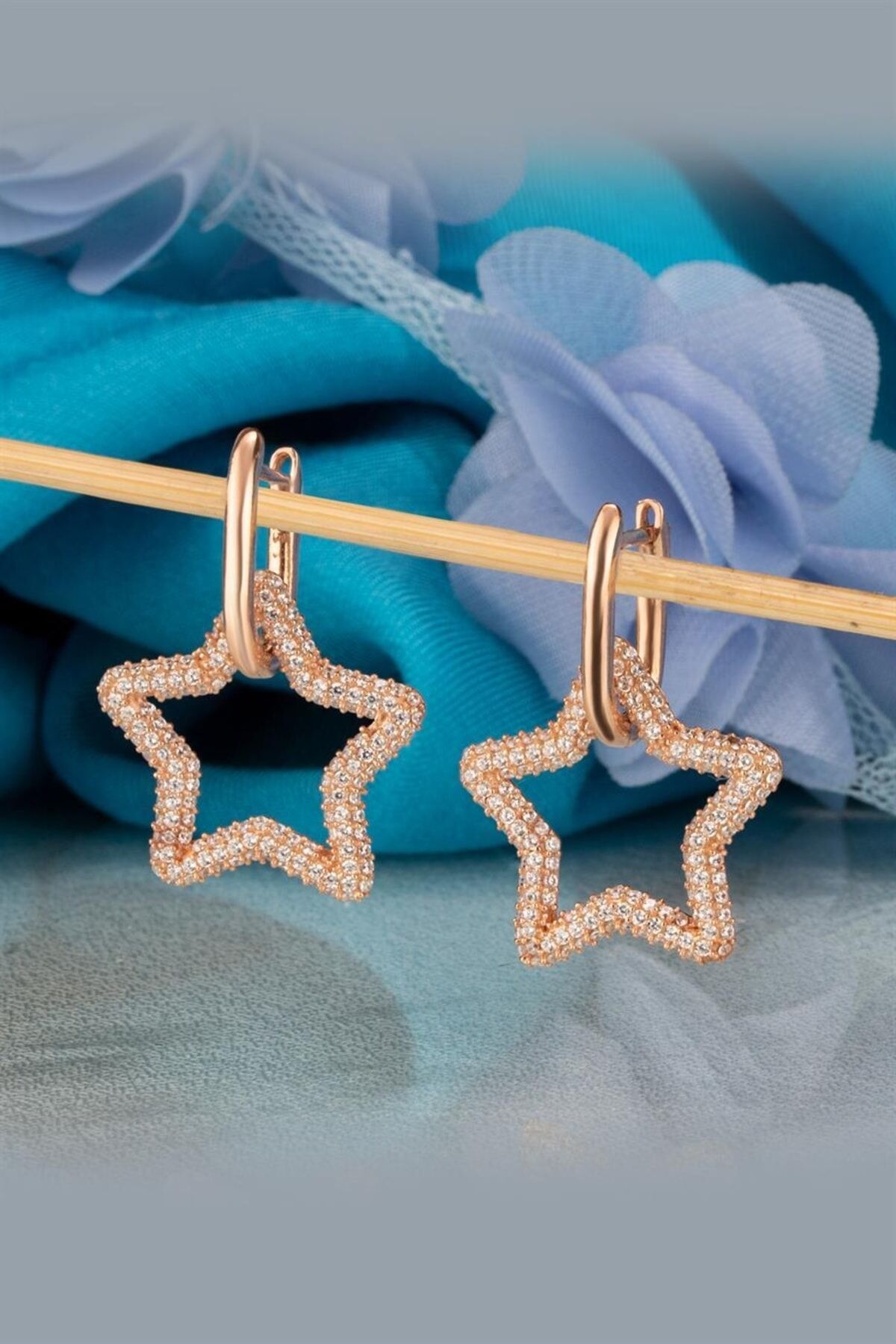 925 Ayar Gümüş Rose Taşlı Yıldız Küpe
