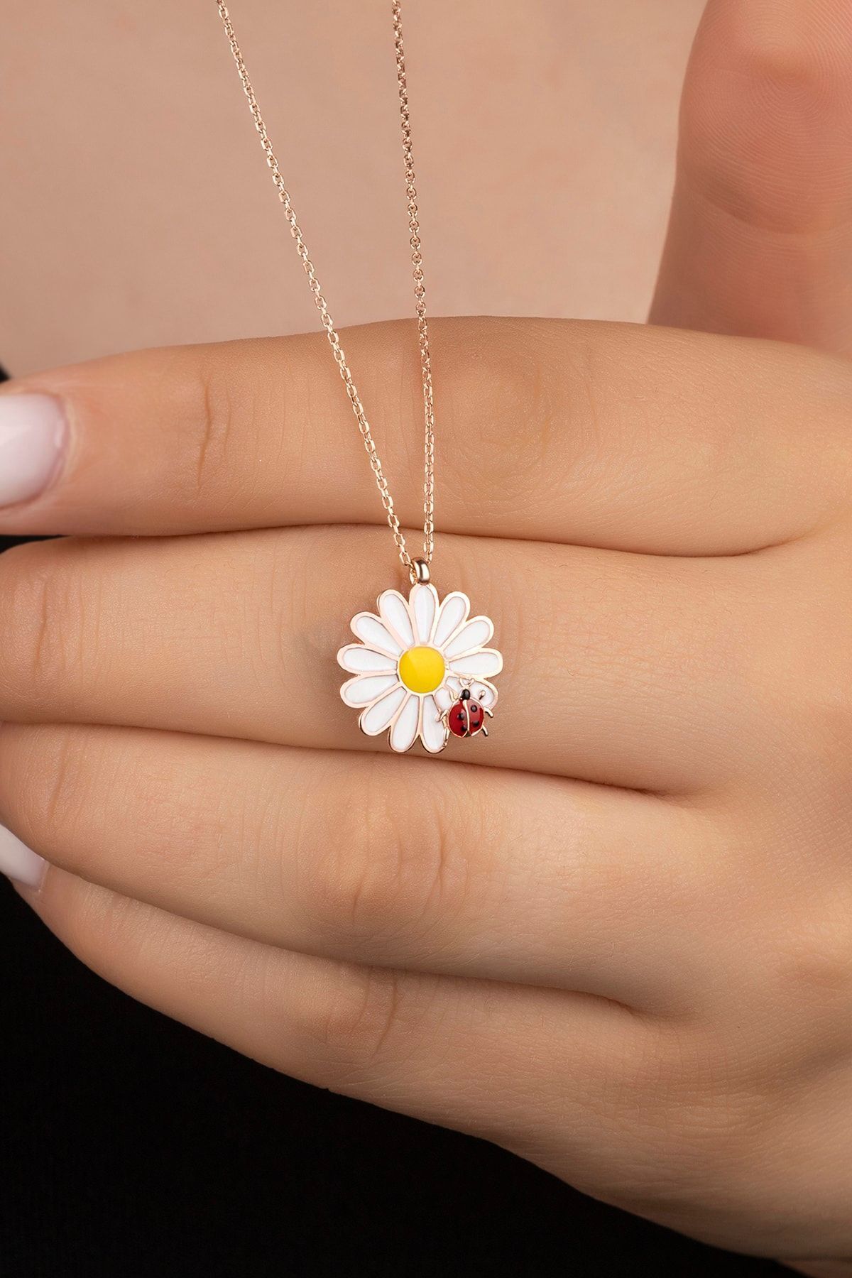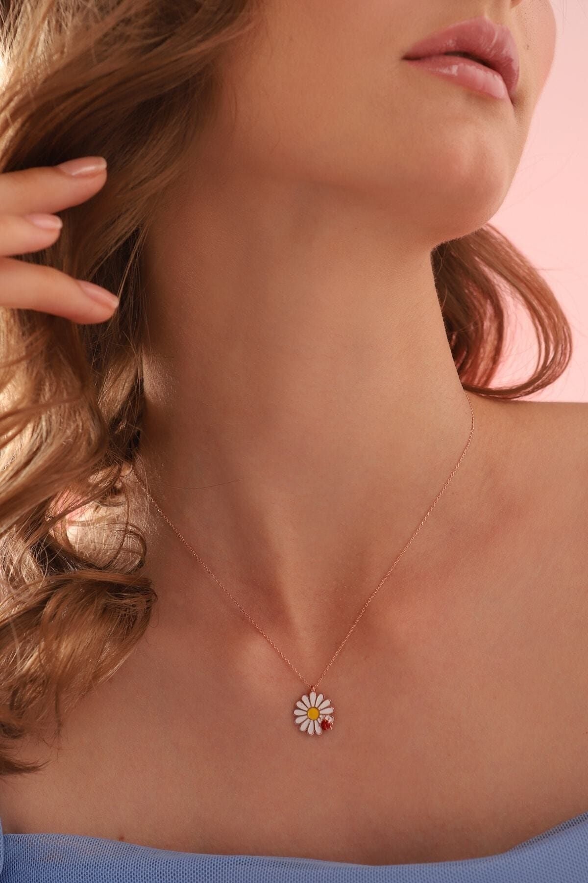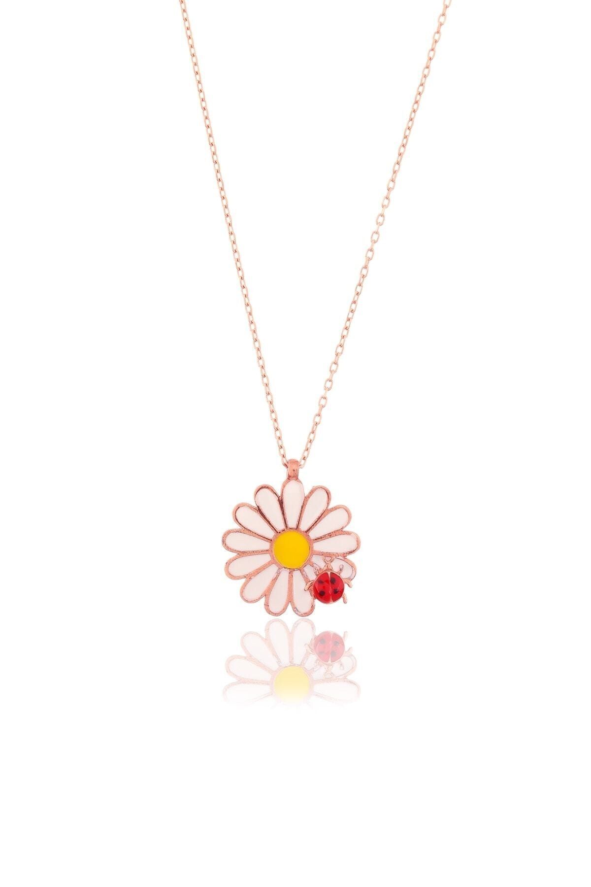 925 Ayar Gümüş Rose Uğur Böceği Papatya Kolye