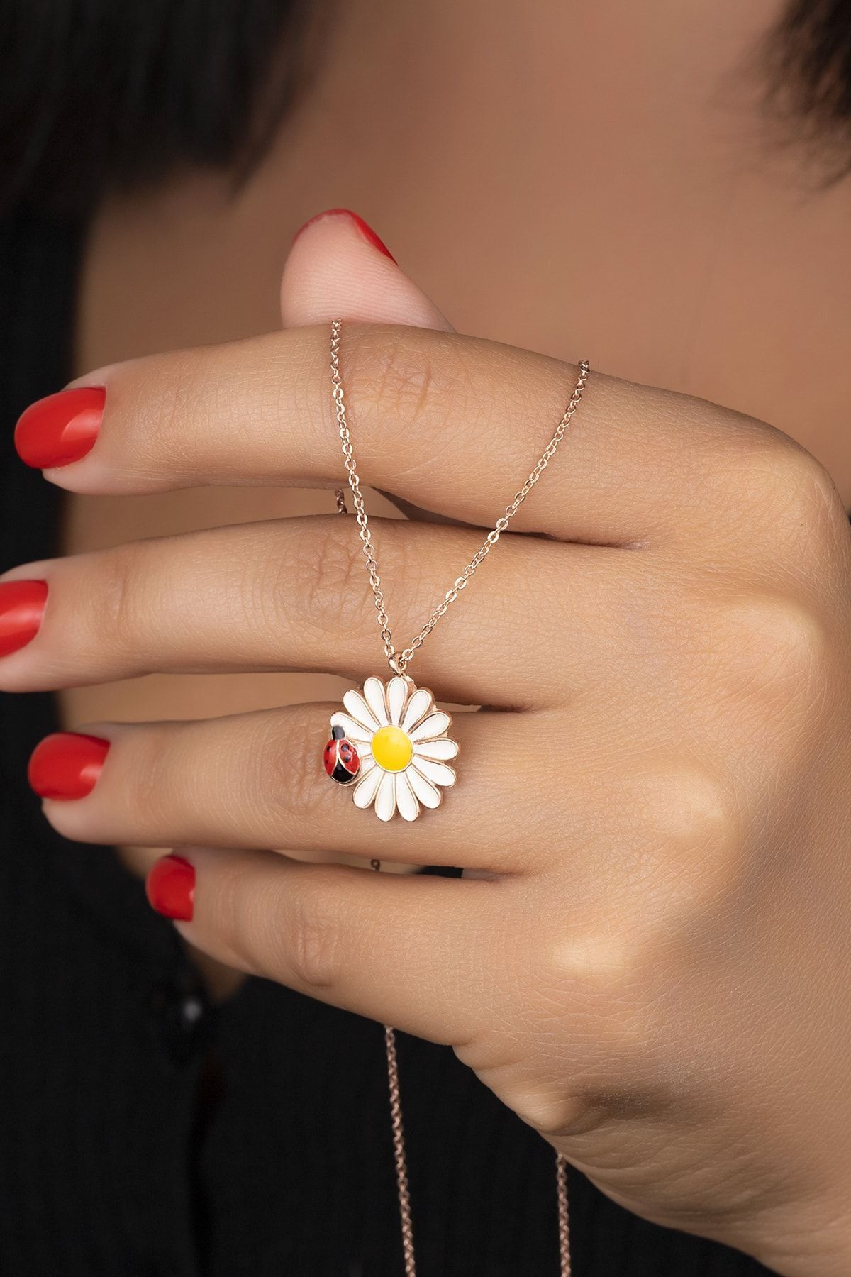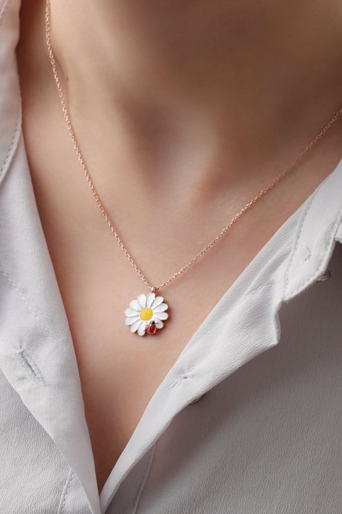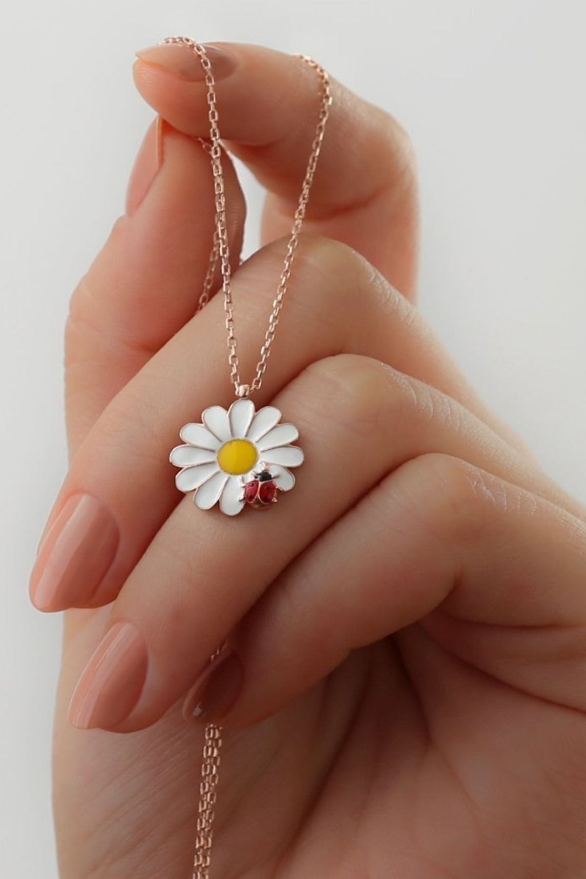 925 Ayar Gümüş Rose Uğur Böceği Papatya Kolye