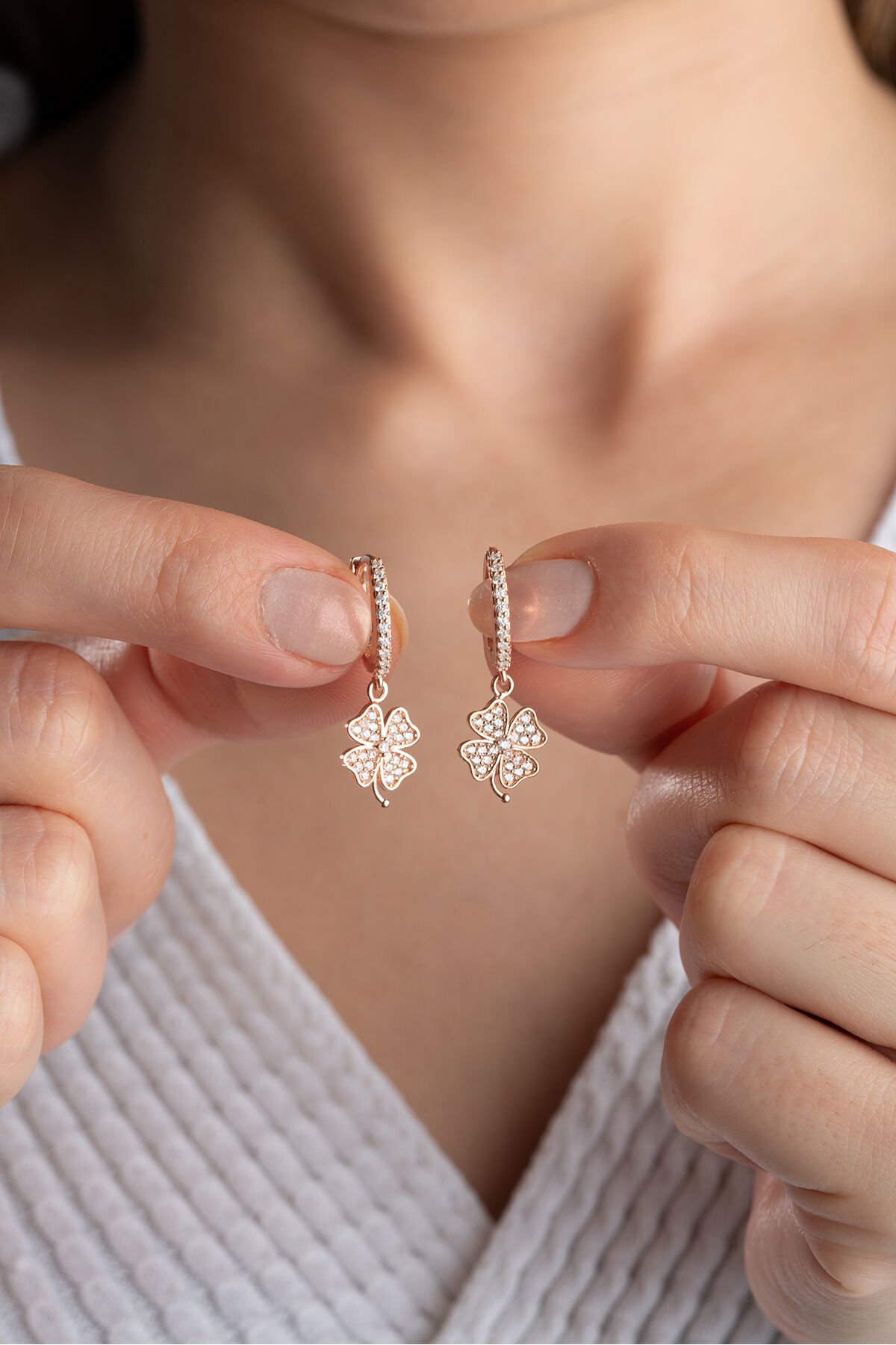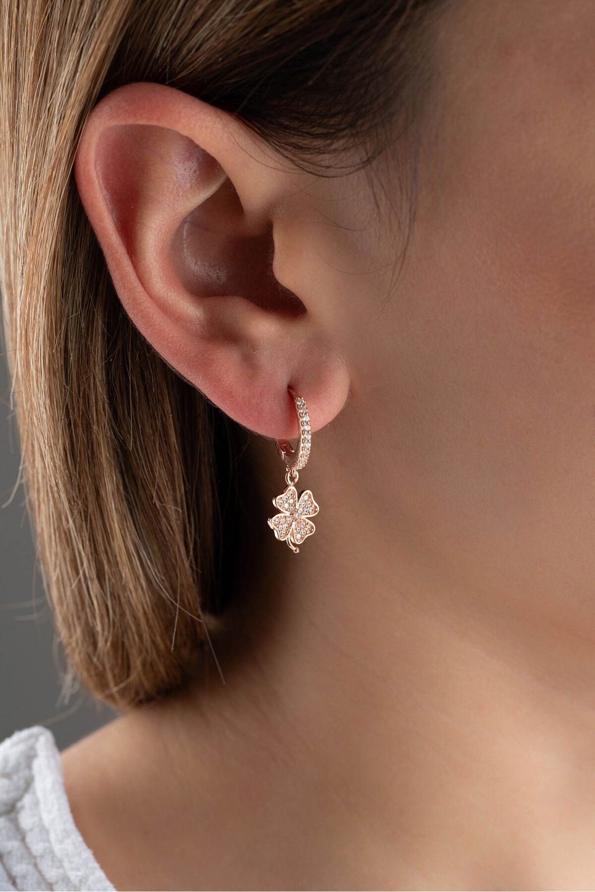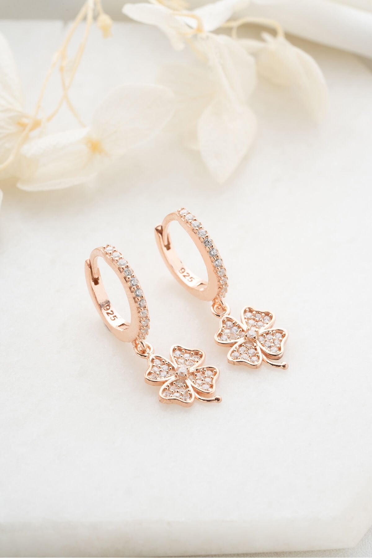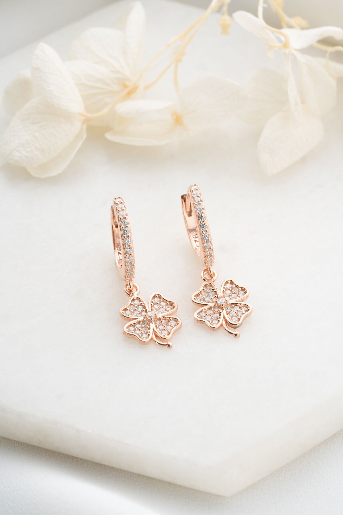 925 Ayar Gümüş Rose Yonca Küpe