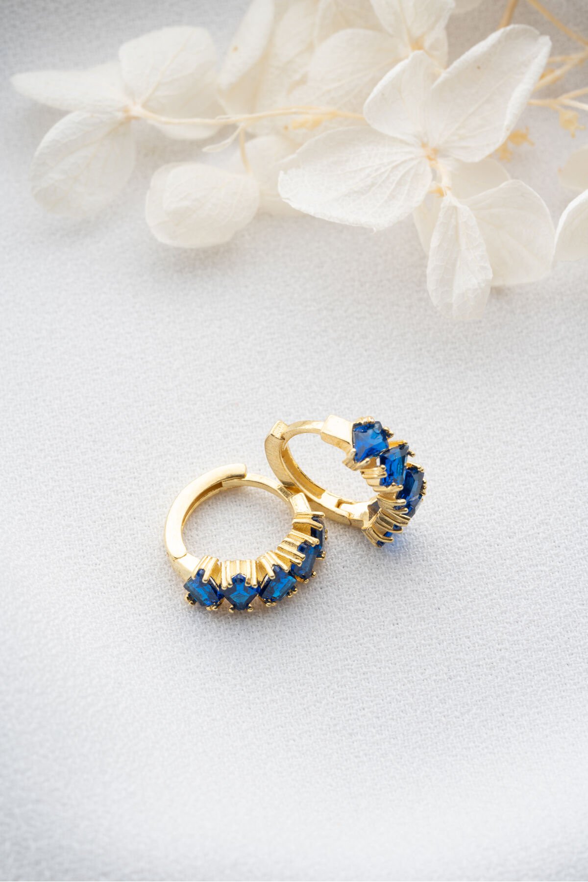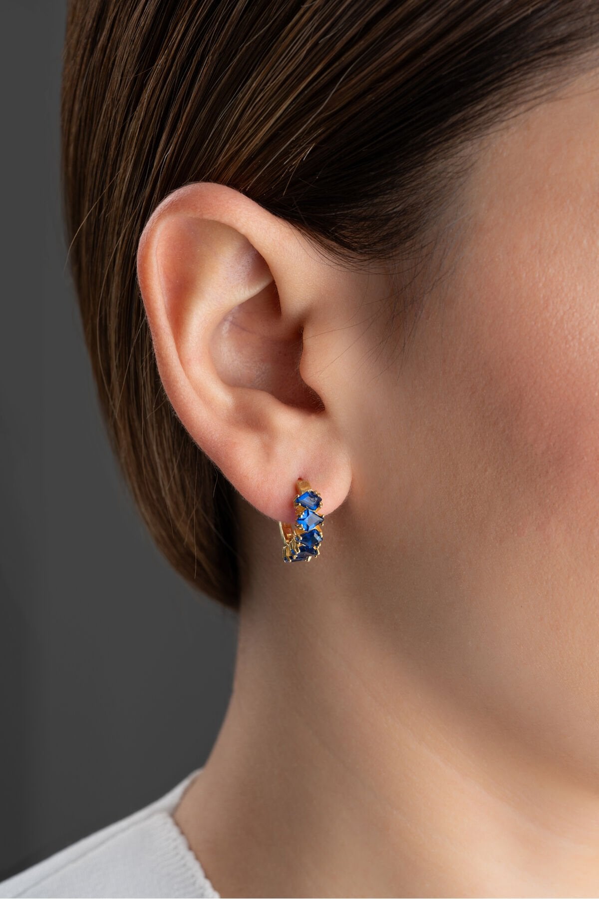 925 Ayar Gümüş Safir Baget Taşlı Halka Küpe