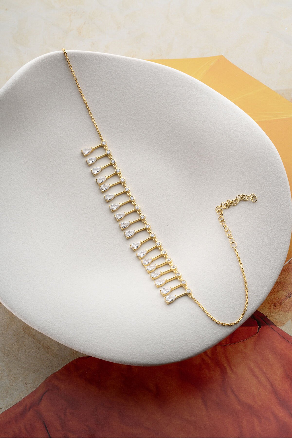 925 Ayar Gümüş Sallanan Damla Taşlı Halhal