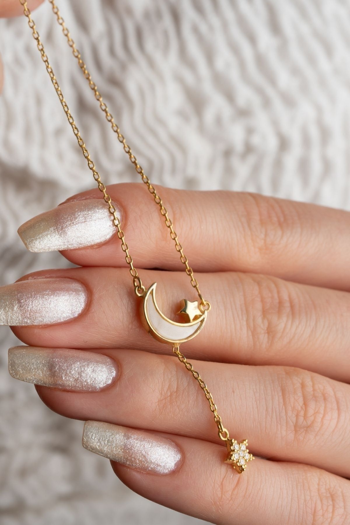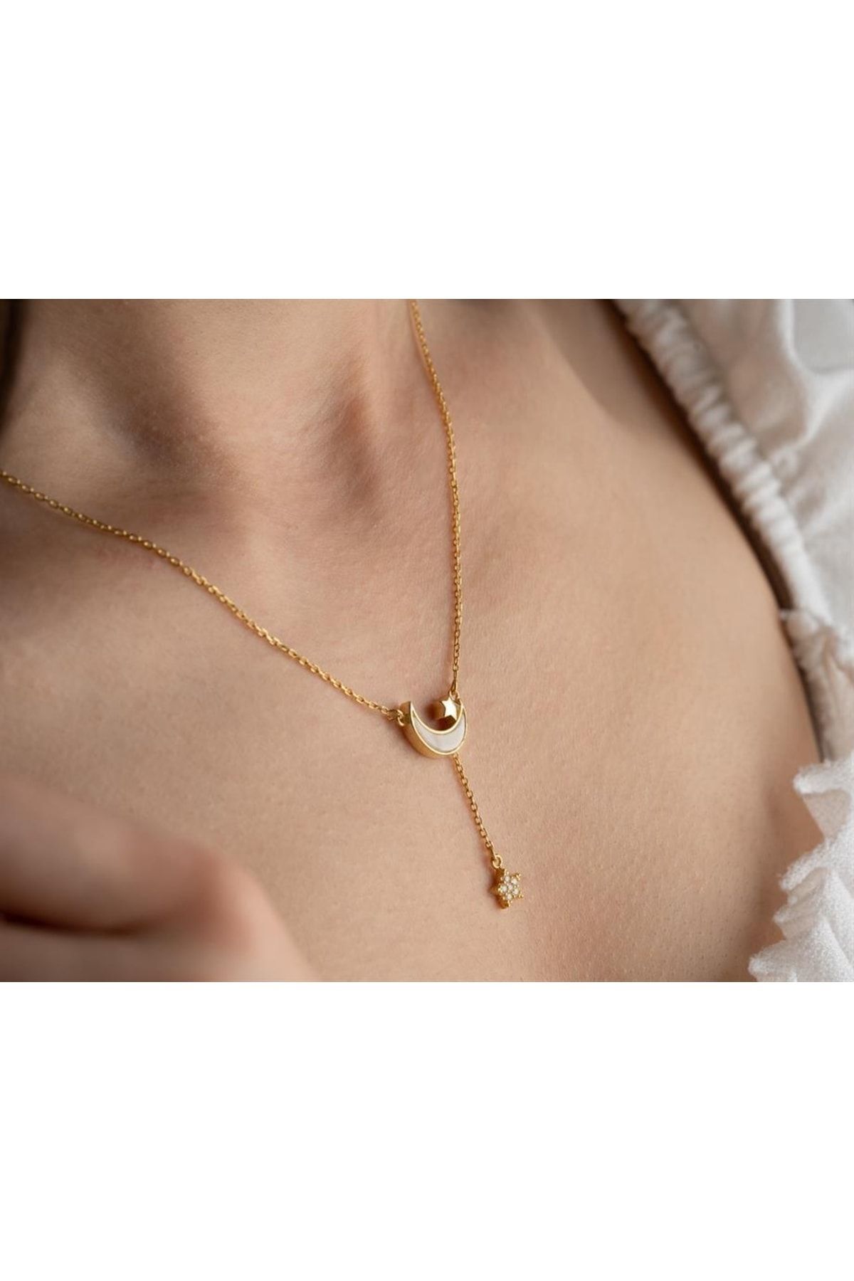 925 Ayar Gümüş Sallantılı Ay Yıldız Kolye