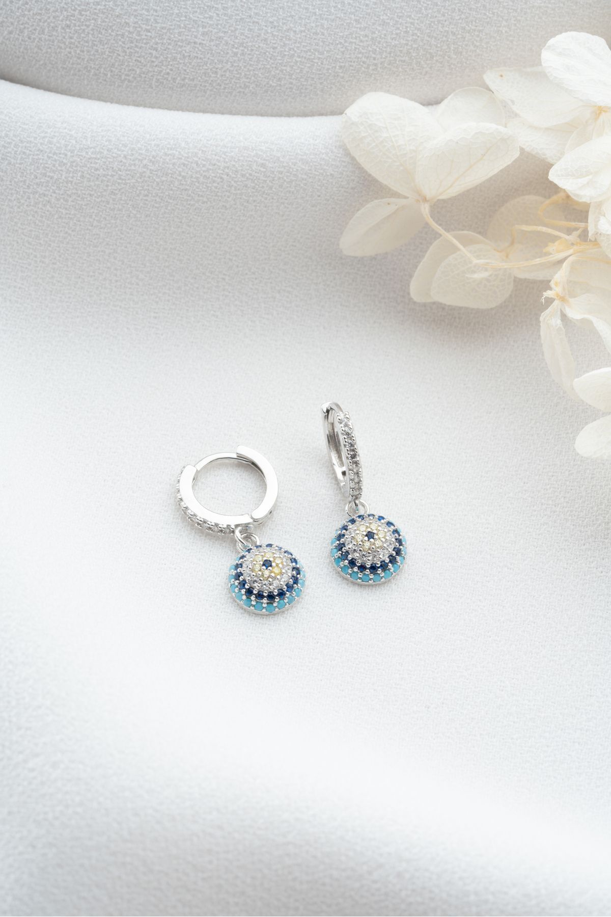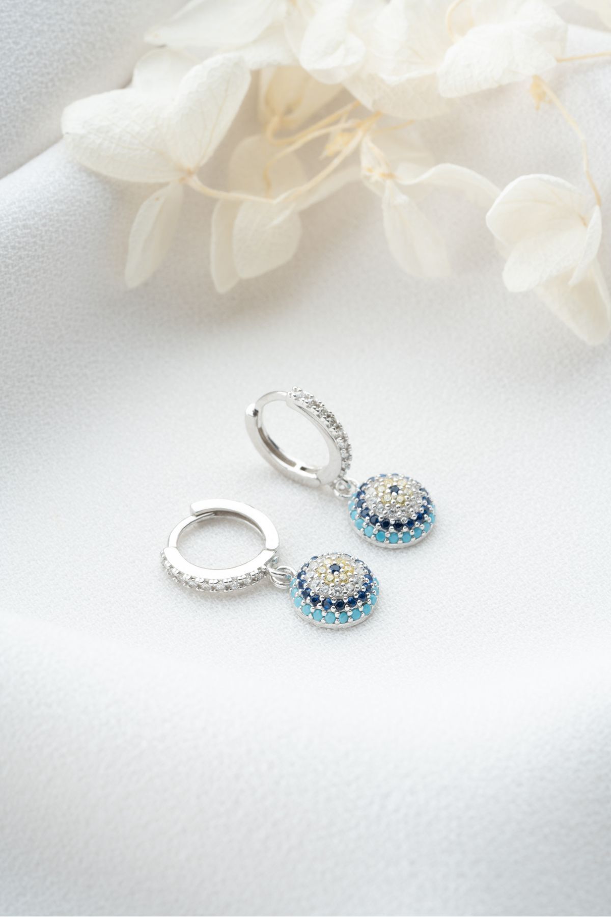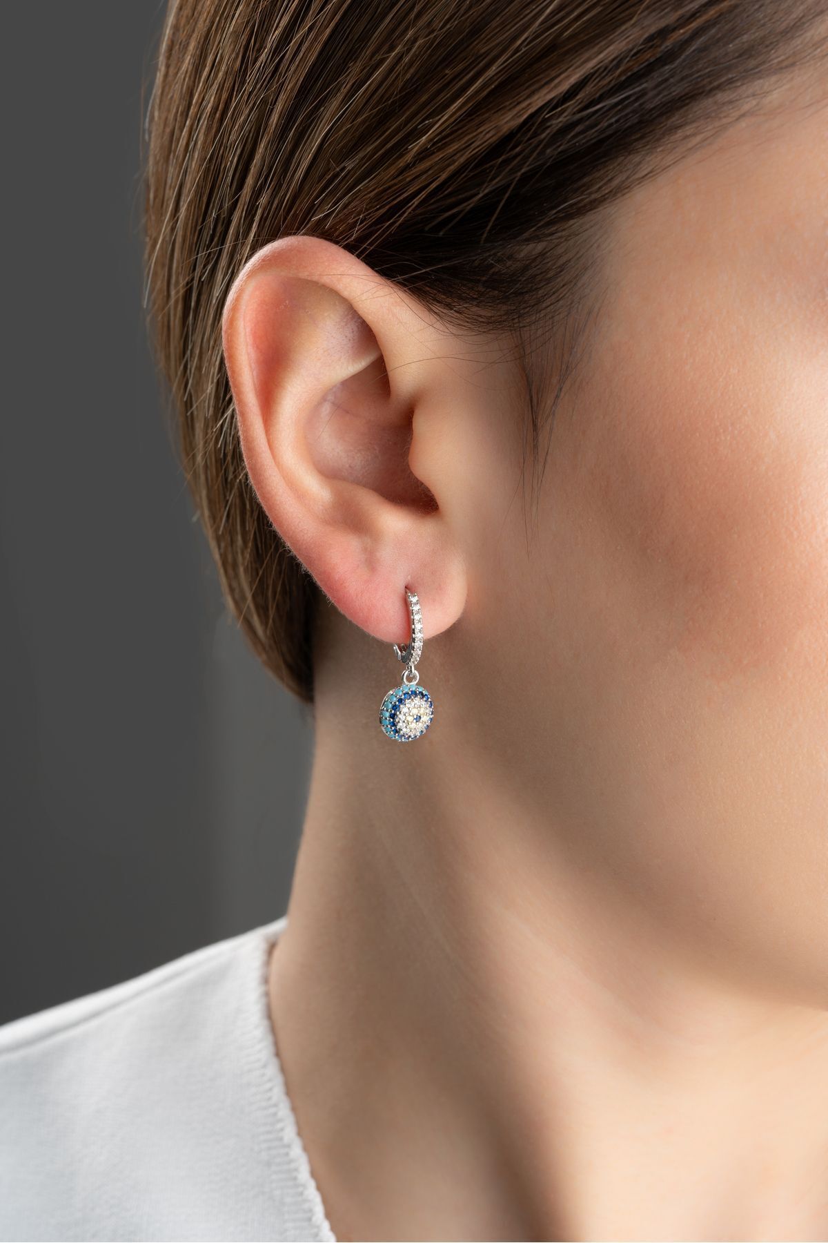 925 Ayar Gümüş Sallantılı Göz Nazar Gümüş Küpe