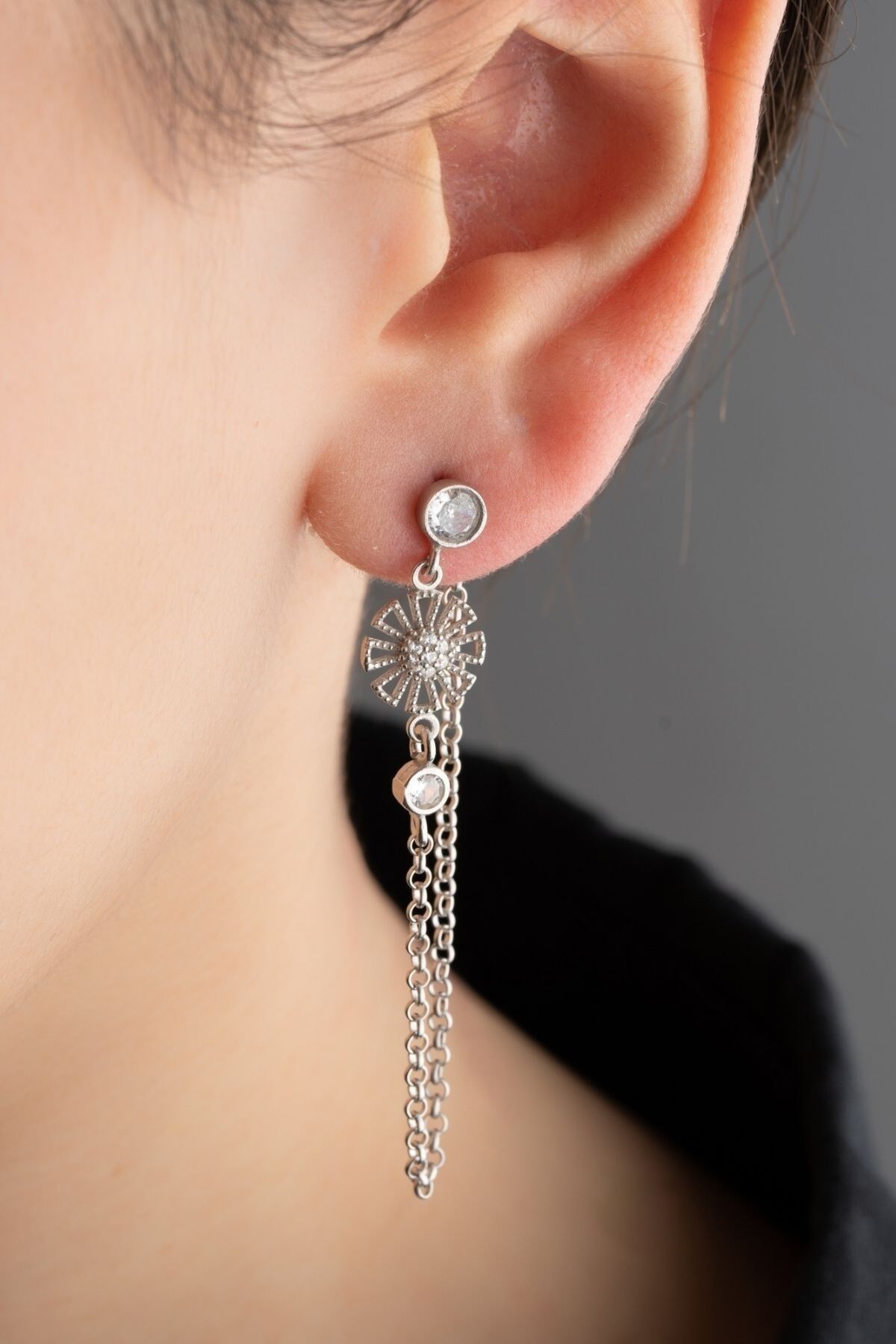 925 Ayar Gümüş Sallantılı Güneş Küpe