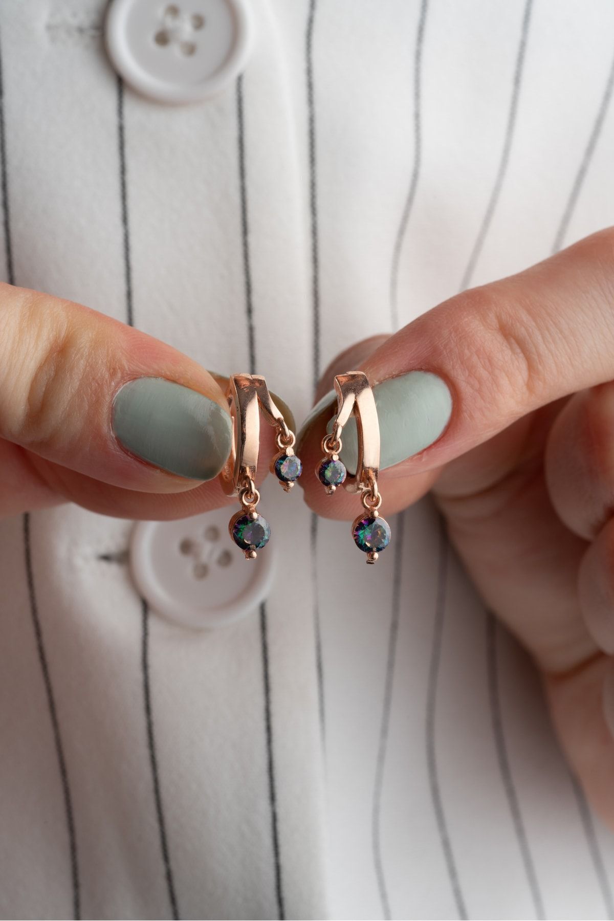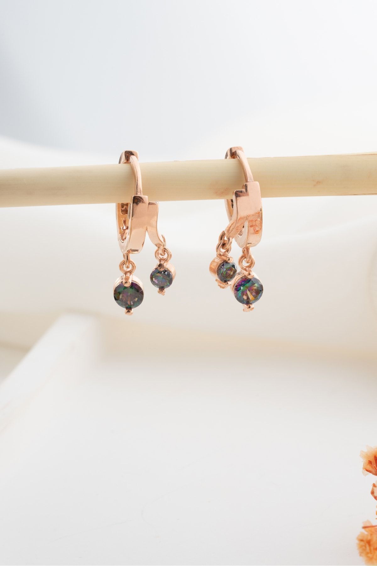 925 Ayar Gümüş Sallantılı Mistik Topaz Halka Küpe