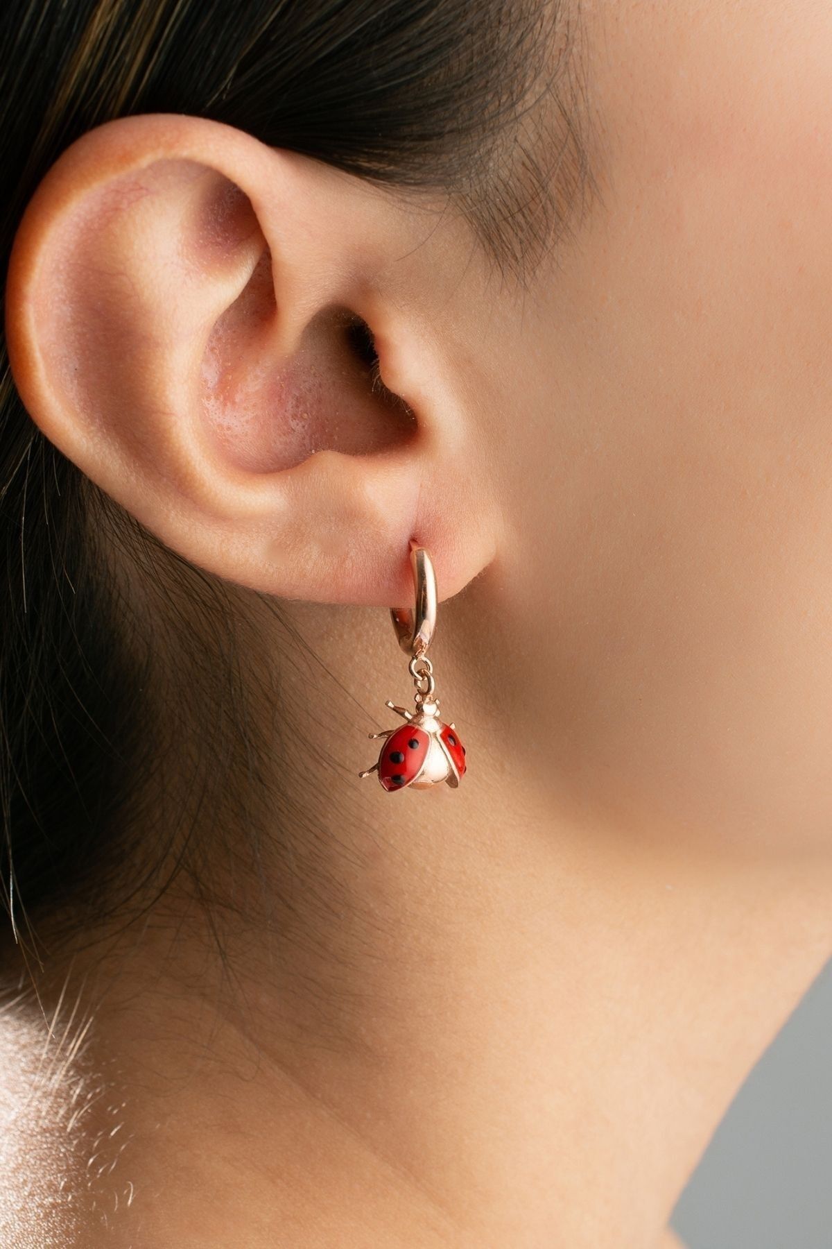 925 Ayar Gümüş Sallantılı Uğurböceği Çocuk Küpesi