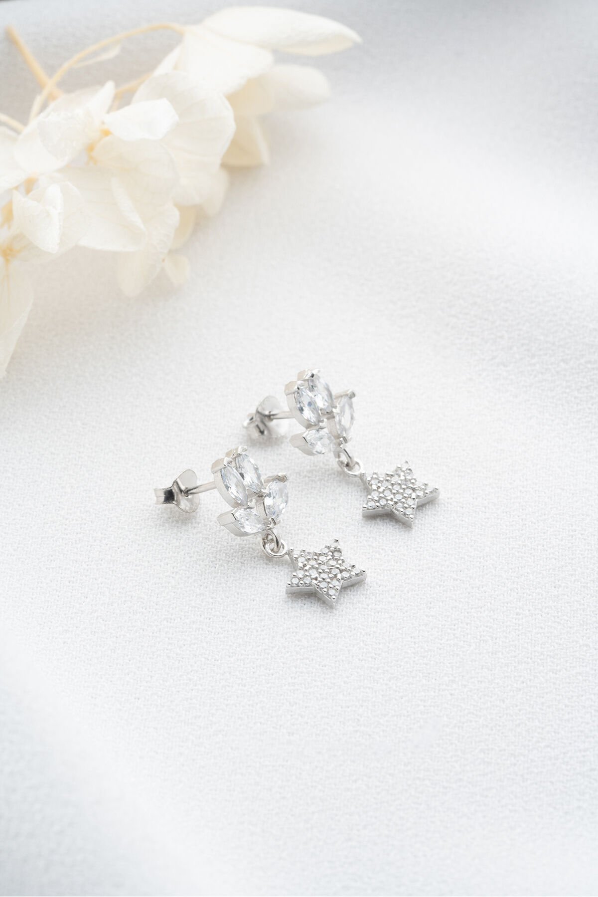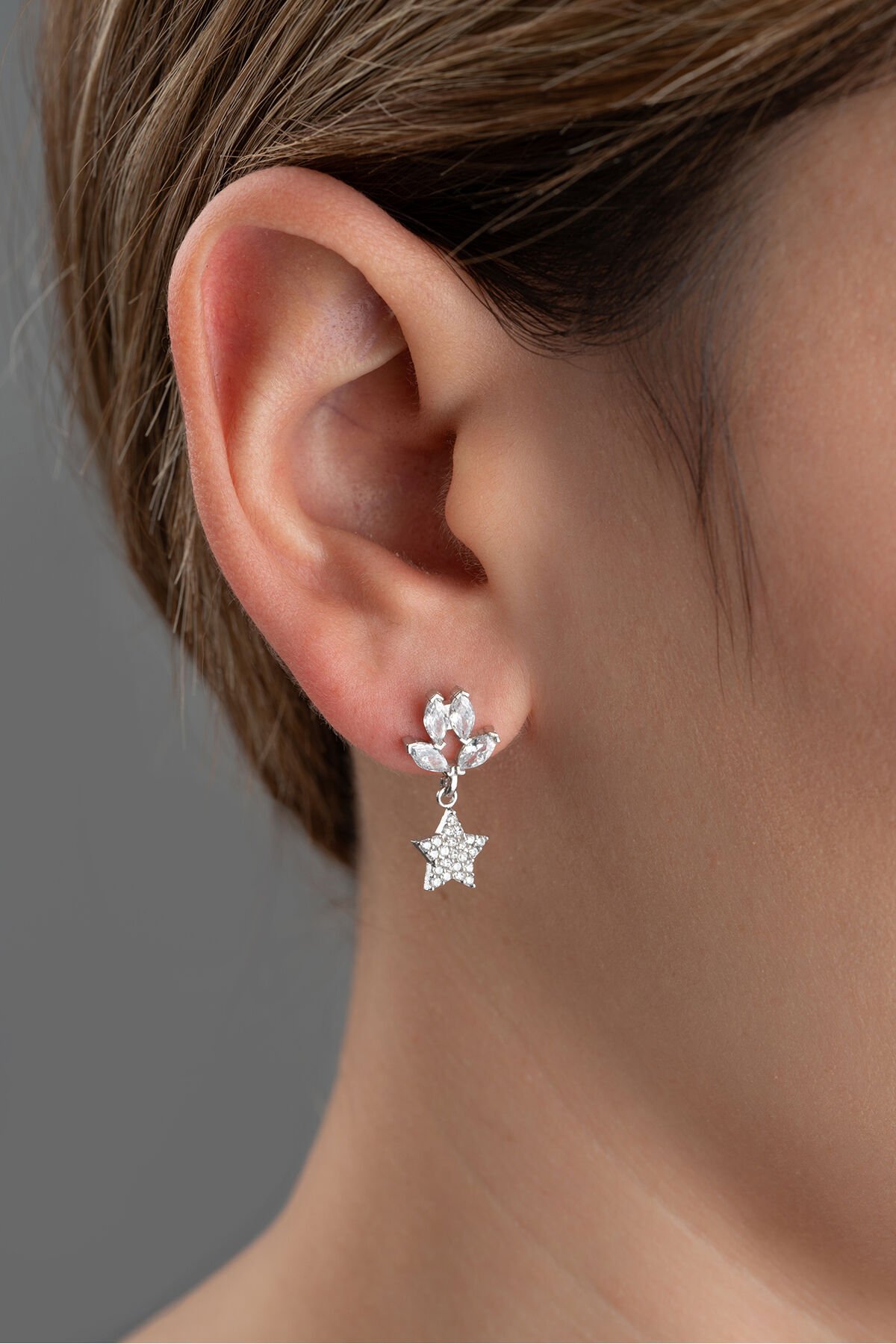 925 Ayar Gümüş Sallantılı Yıldız Küpe