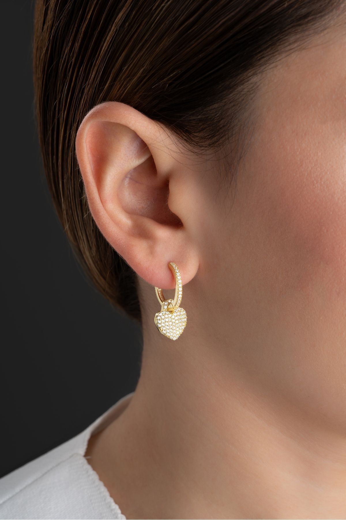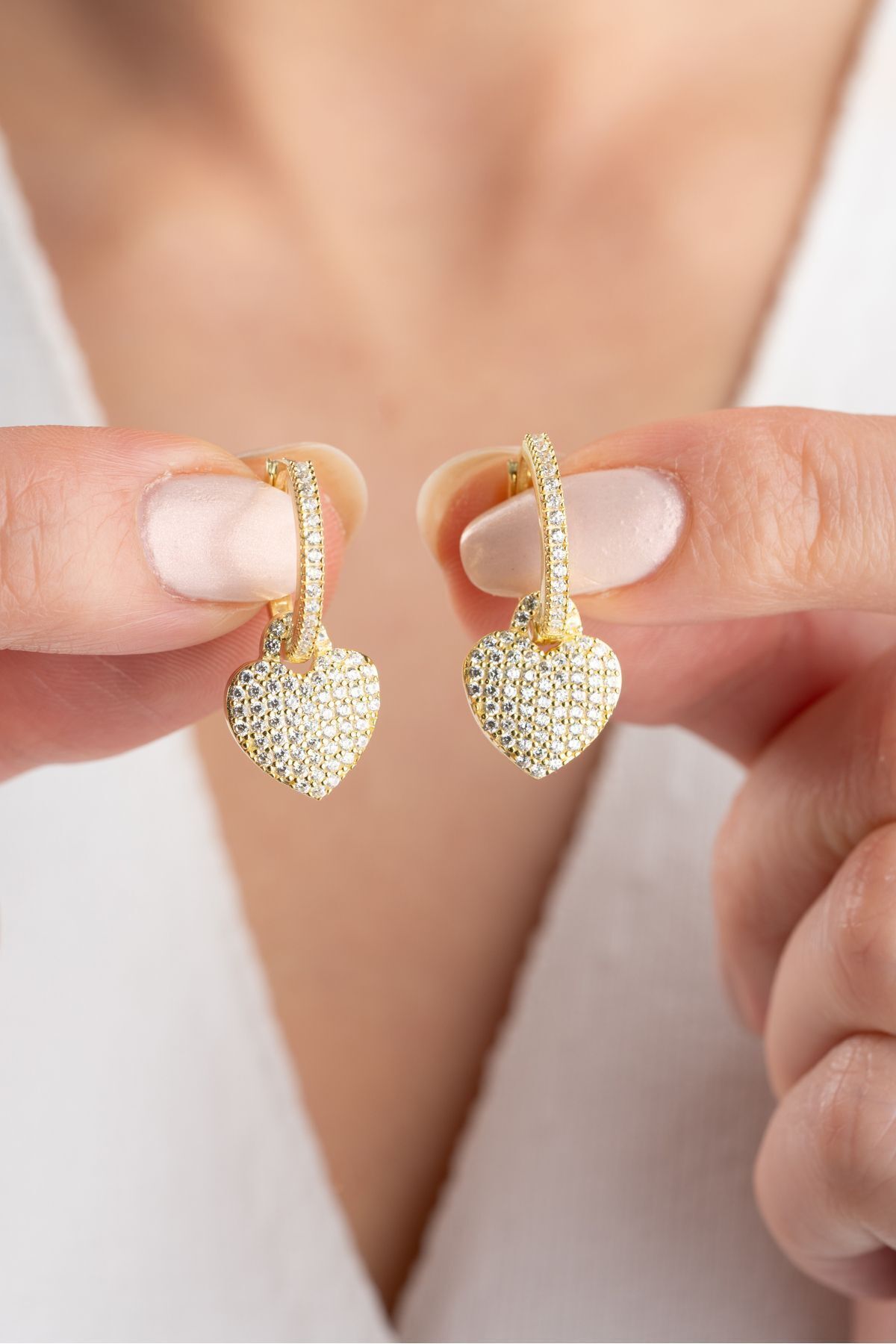 925 Ayar Gümüş Sallantılı Zirkon Taşlı Kalp Küpe