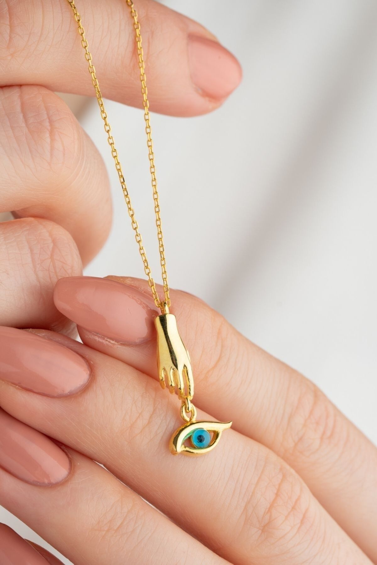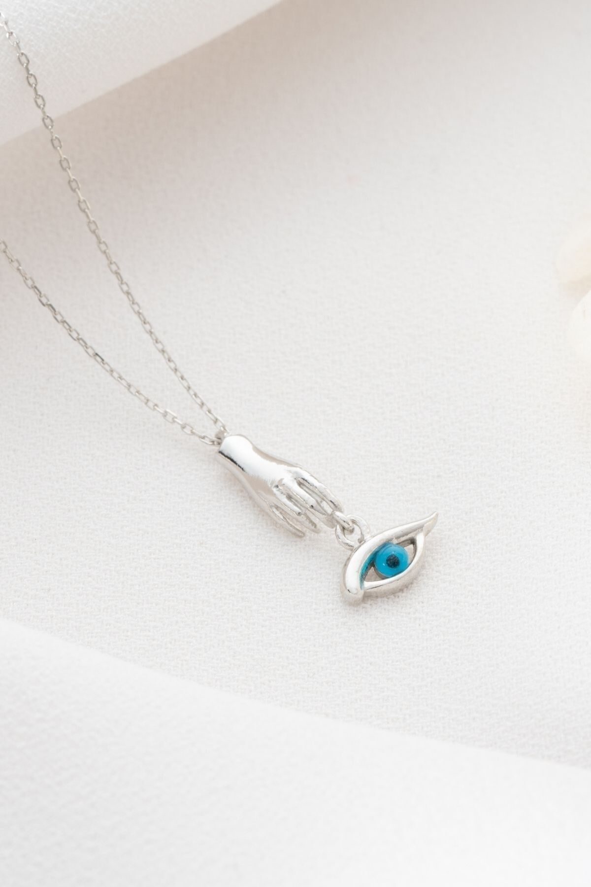 925 ayar gümüş malzeme kullanılarak üretilmiş, uzun ömürlü ve kaliteli bir aksesuar deneyimi sunar; Şans gözü tasarımı ile hem şıklığı hem de uğur sembolizmini bir arada barındırır, pozitif enerjiyi yanınızda taşımanızı sağlar; Gözün merkezindeki mavi taş, mavi rengin huzur ve sakinlik getirdiği inancıyla, her türlü kıyafetle uyum sağlayacak zarif bir detay ekler; Gümüş kolye, modern ve klasik tarzları harmanlayarak her yaş grubundan kullanıcıya hitap eder ve günlük kullanım için idealdir;
