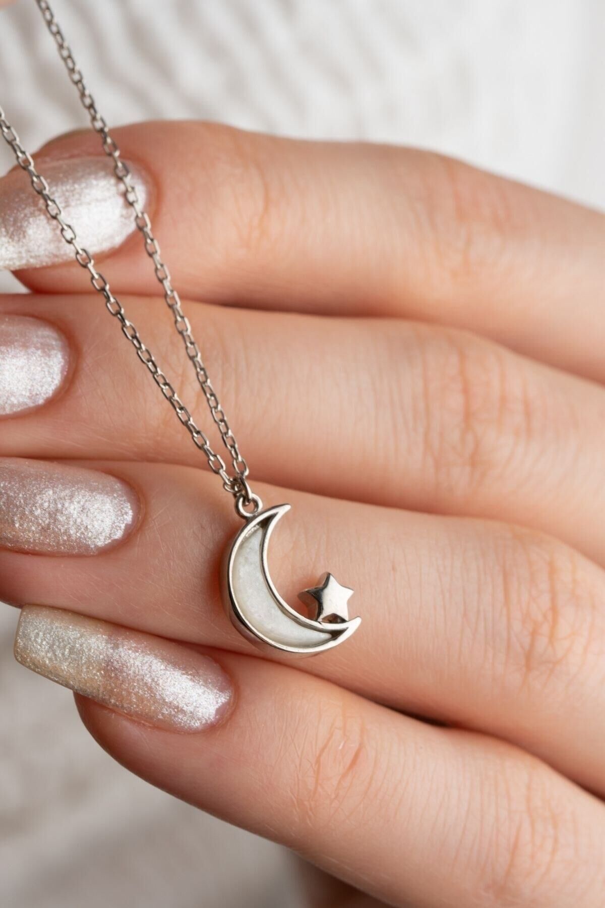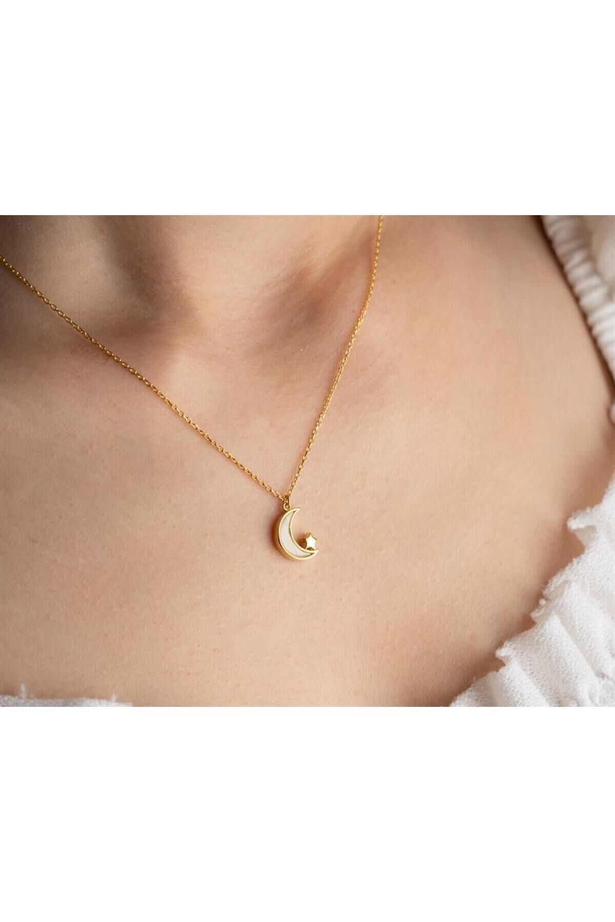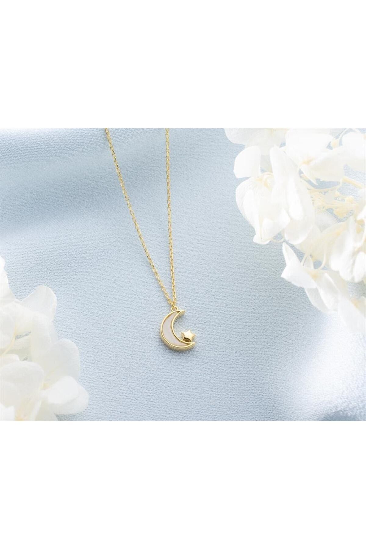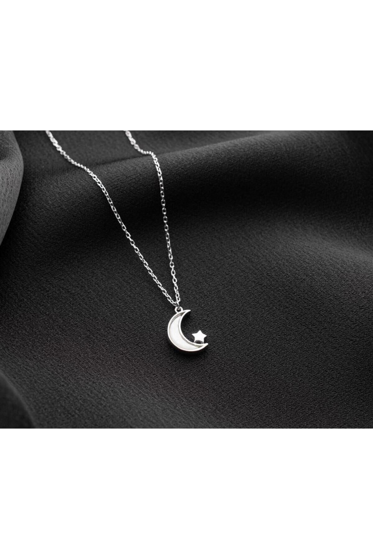 925 Ayar Gümüş Sedefli Ay Yıldız Kolye