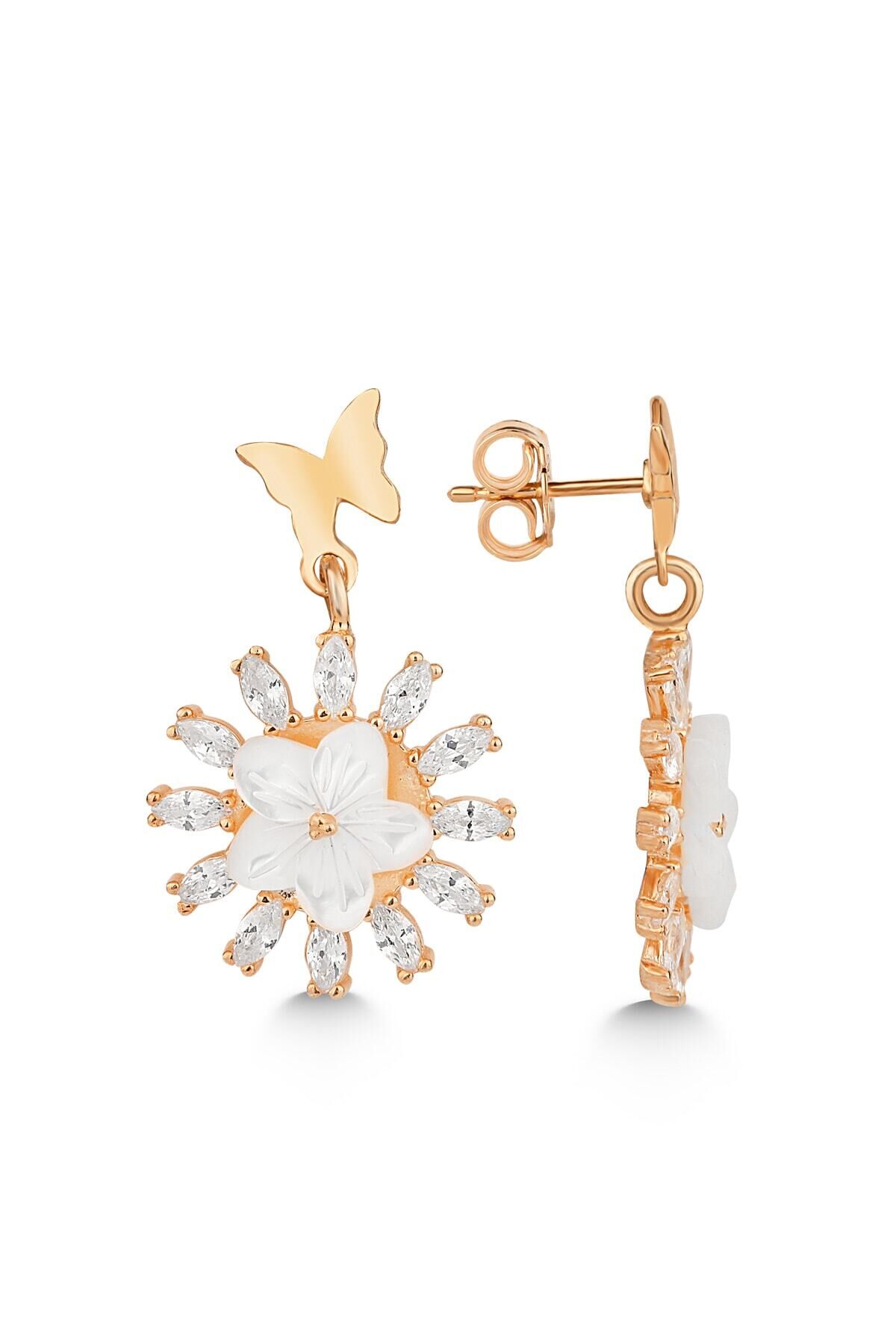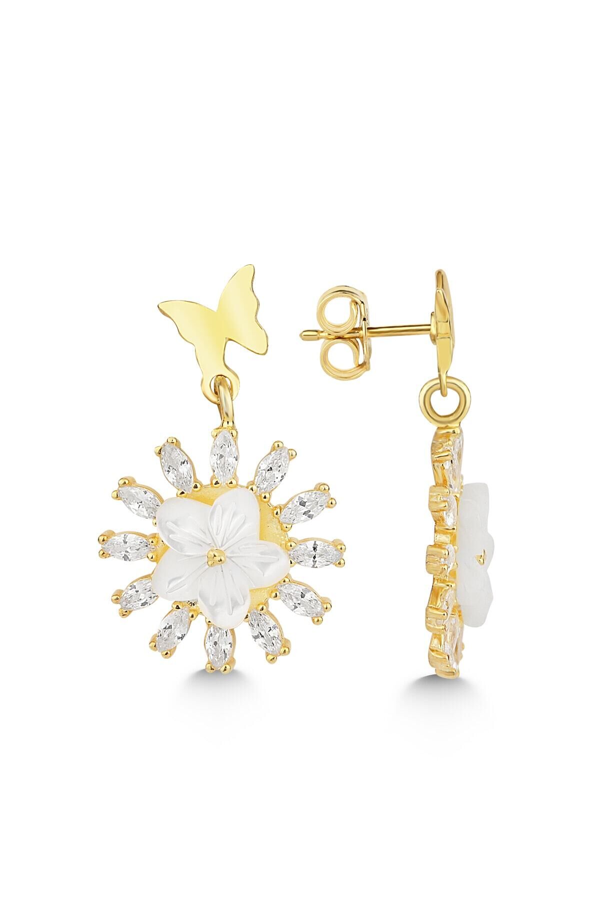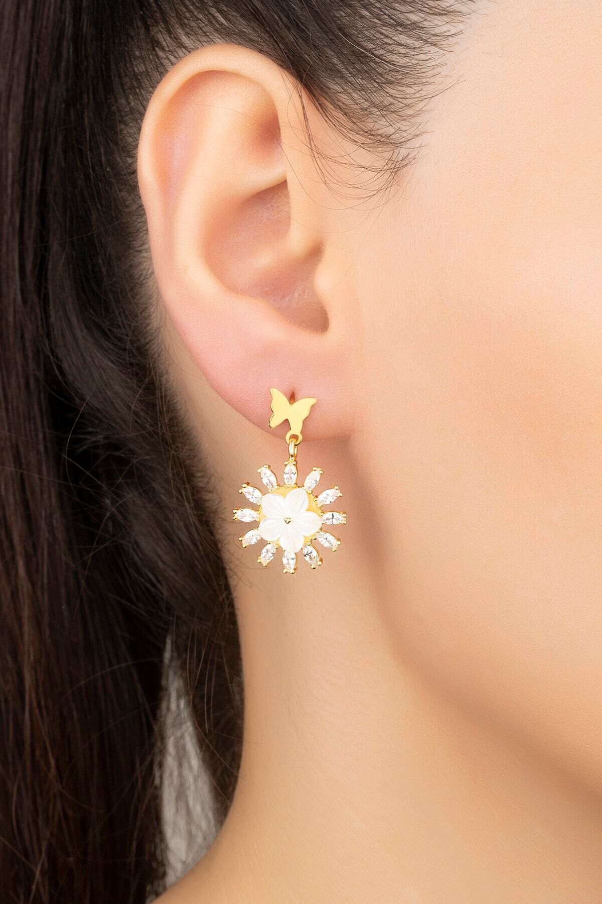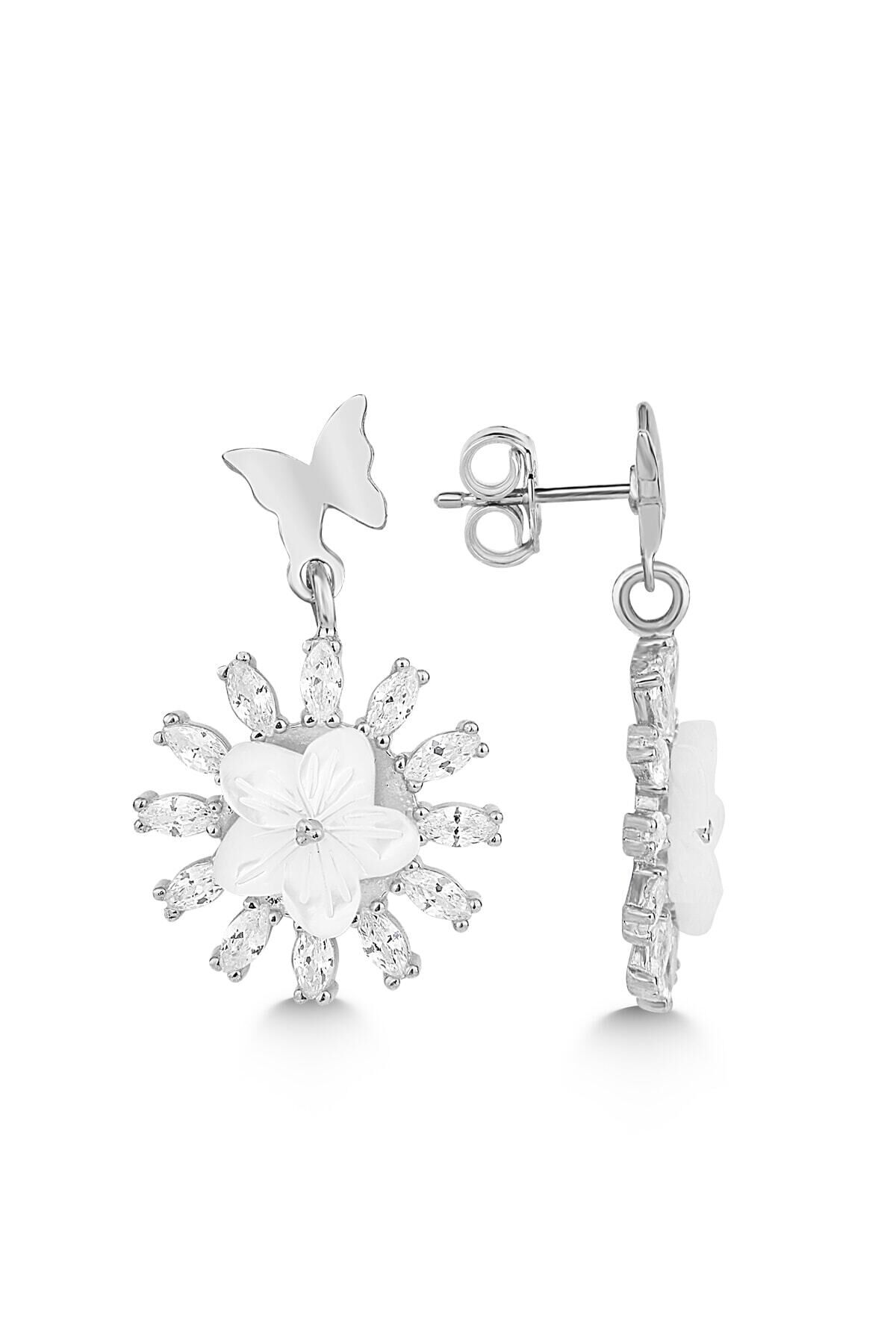 925 Ayar Gümüş Sedefli Beyaz Çiçek Küpe